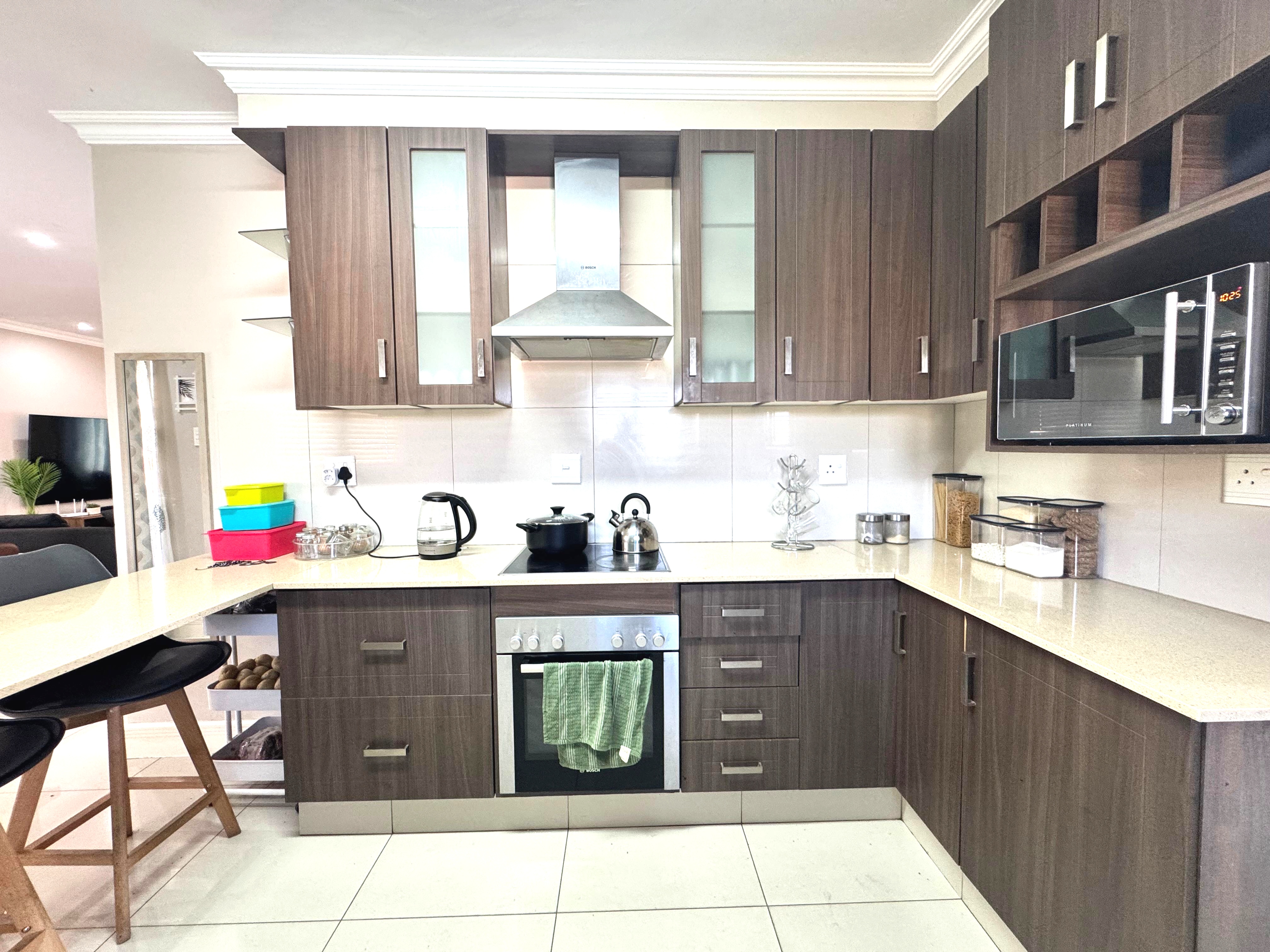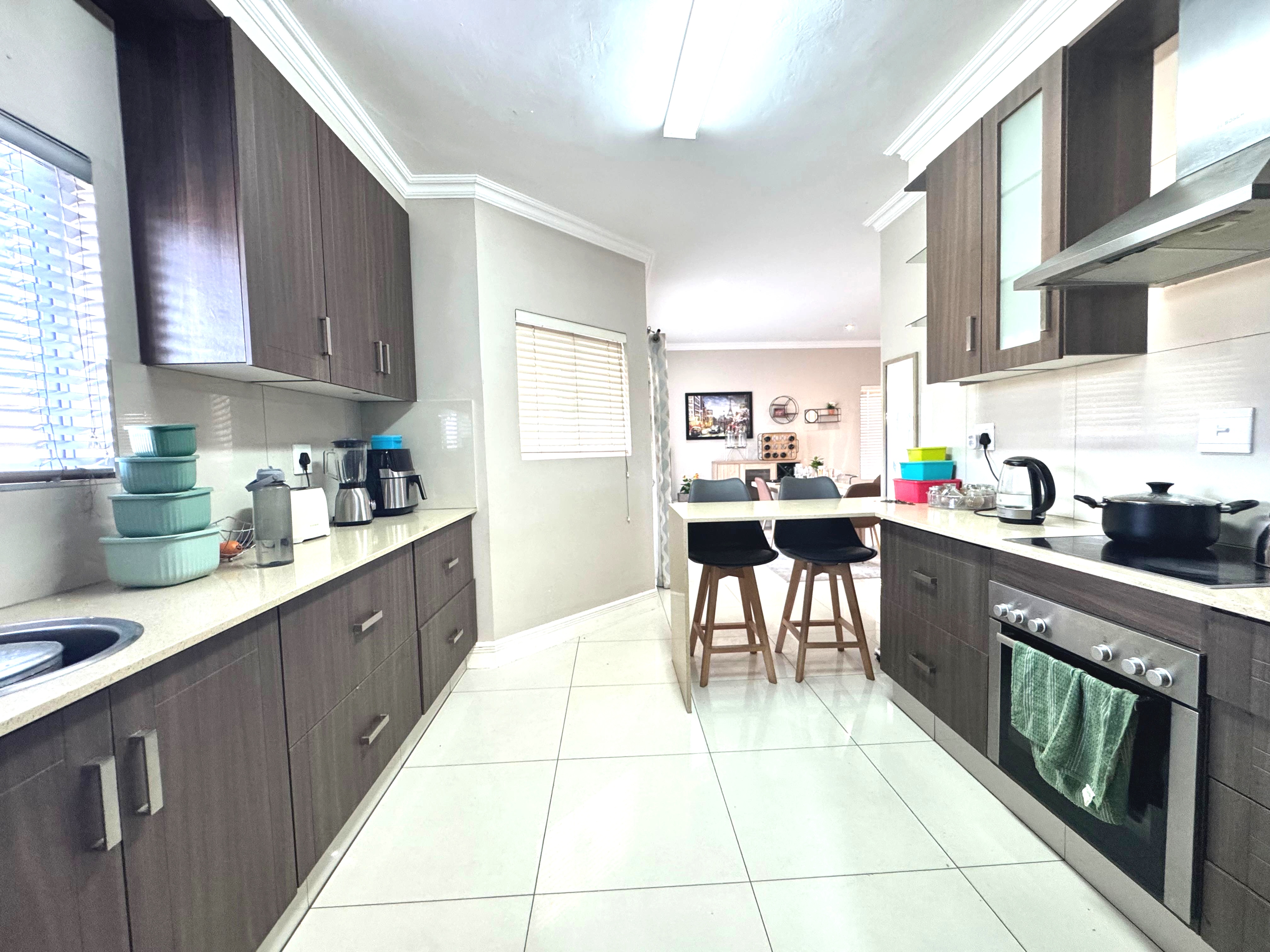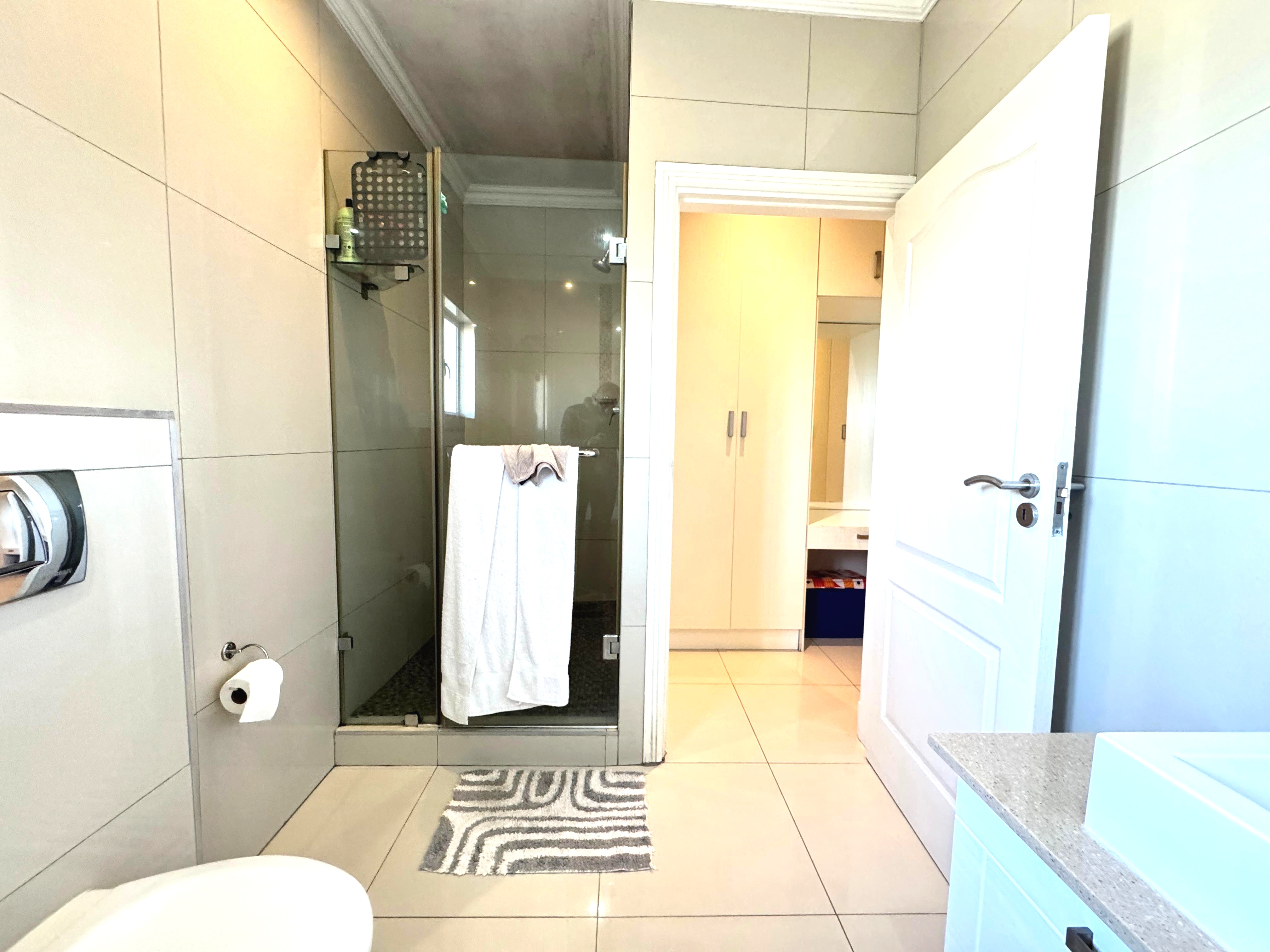 Discover luxury living in the sought-after Edgemount Estate. This beautifully designed home offers 3 spacious fitted bedrooms of which the main bedroom leads into a spacious balcony, 3 modern bathrooms, and a guest toilet. The gourmet kitchen with separate scullery flows seamlessly into the open-plan living and dining areas, extending onto a patio that overlook a private garden and courtyard – perfect for both entertaining and relaxation.
