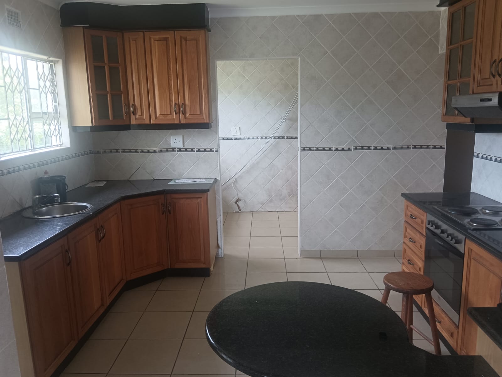 3 bedrooms , 2 bathrooms , main ensuite , large kitchen with scullery , dining room and separate sitting room.