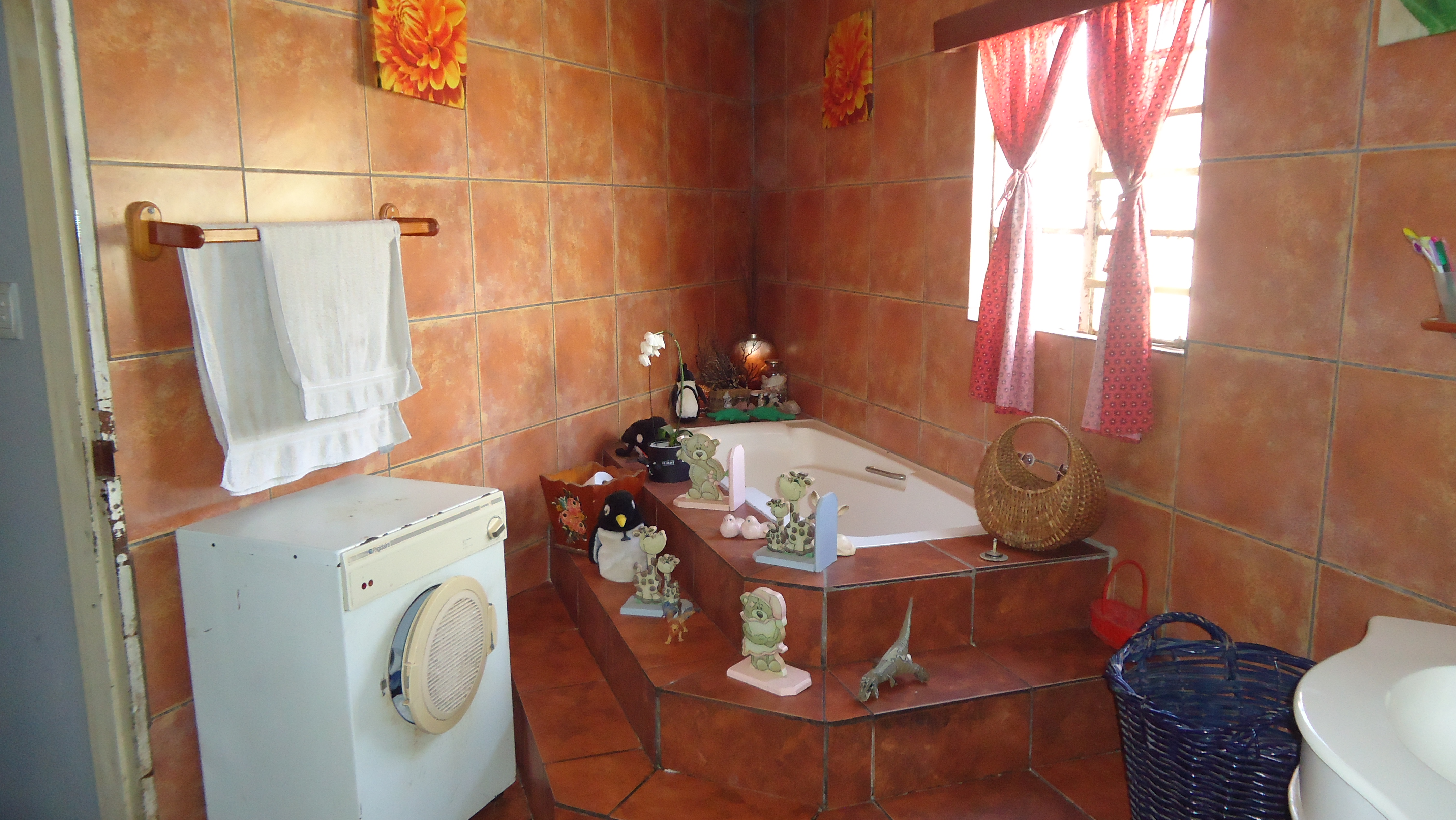 The communal bathroom is larger than average and features a corner bath.