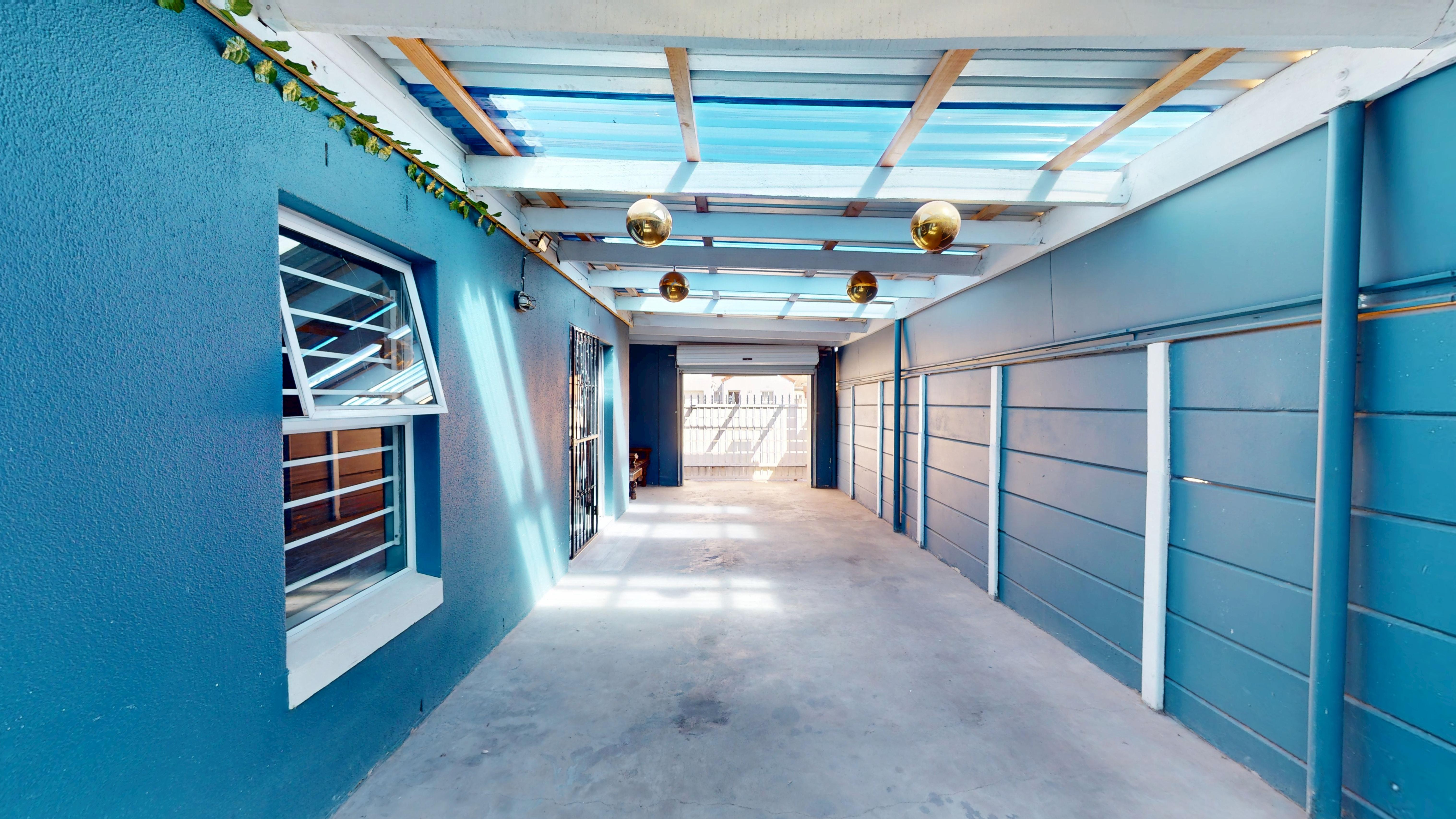 Paved closed undercover parking for a few vehicles