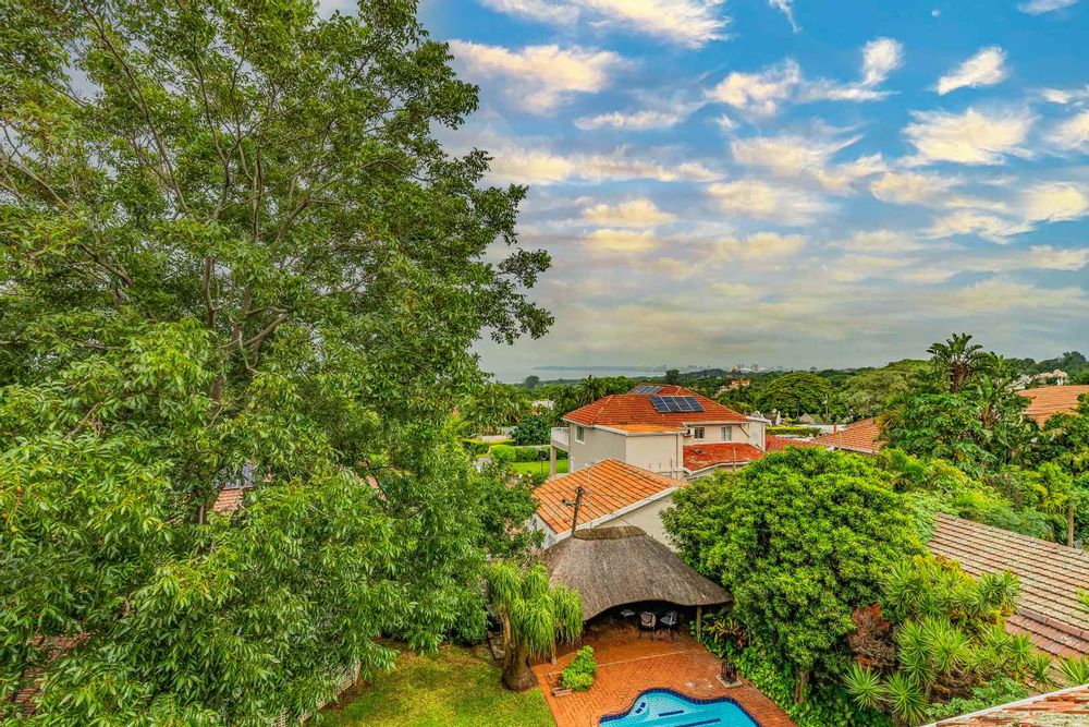 Outside, a sparkling swimming pool, a newly refurbished thatched gazebo, and a private, air-conditioned office with bathroom facilities await. A separate garden cottage, offering a modern one-bedroom suite with private courtyard, provides versatile living options. Enjoy the convenience of multiple parking spaces, fruitful pecan trees, and a fresh, updated aesthetic throughout. With Umhlanga and King Shaka International Airport just a short drive away, this property epitomizes refined living.