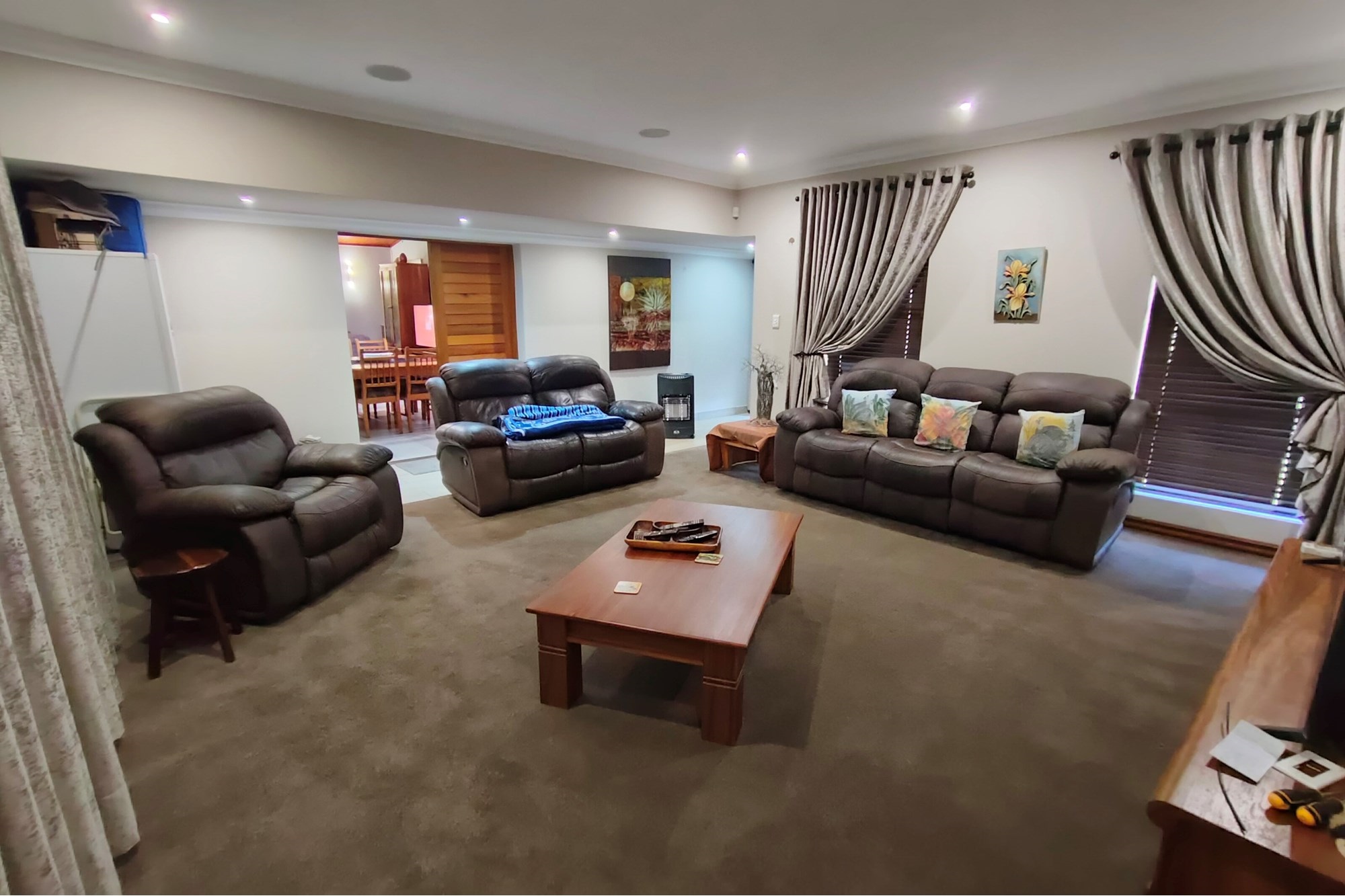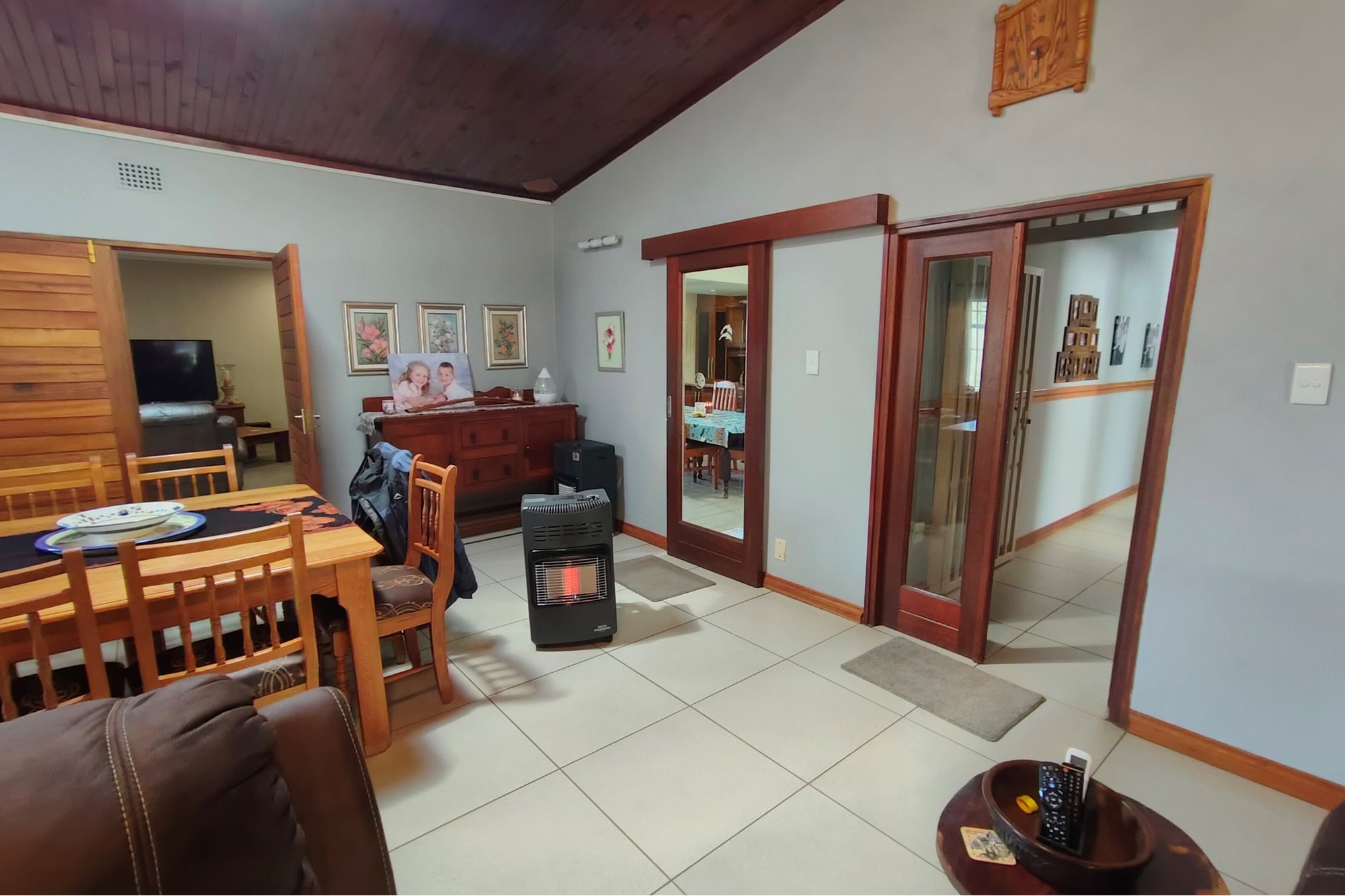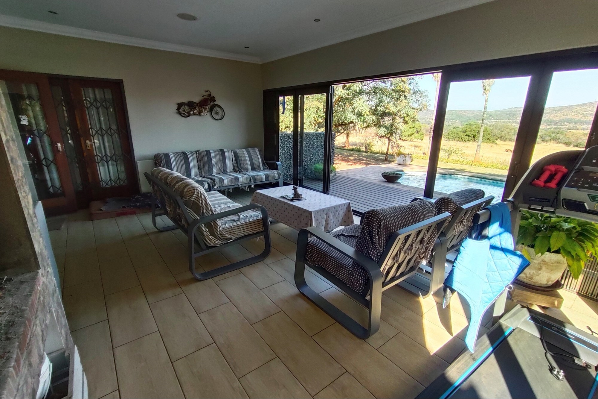Outdoors, indulge in the sparkling swimming pool, beautifully landscaped garden, and entertainment-ready terrace with a built-in braai. A water feature, irrigation system, and comprehensive security setup with an alarm system guarantee peace of mind, Borehole, Fence, Garden, Paving, Pets Allowed, Staff Quarters, Storage, 24 hour Security, Aircon, CCTV, Central Heating, Fire place, Satellite, Smoking Allowed, Driveway, Spa Pool, Special Doors, Water tanks, Sliding Doors, Tv Antenna, Feedlot for 80 Cattle and 1.5ha Arable land. Garden under sprinkler irrigation.