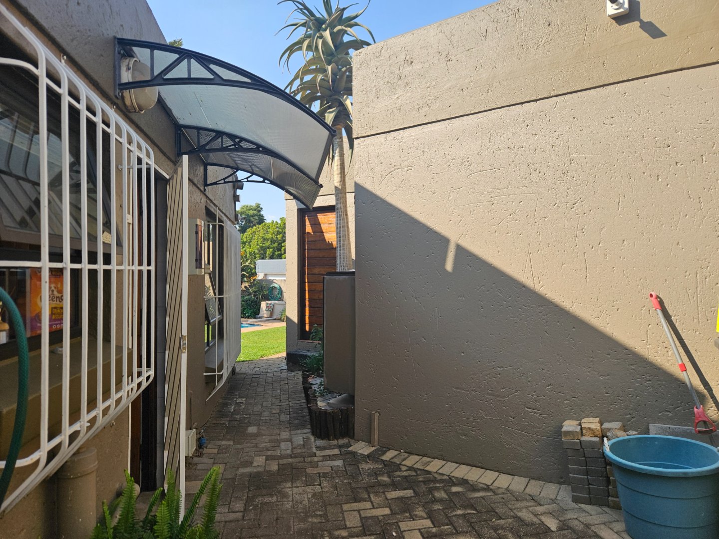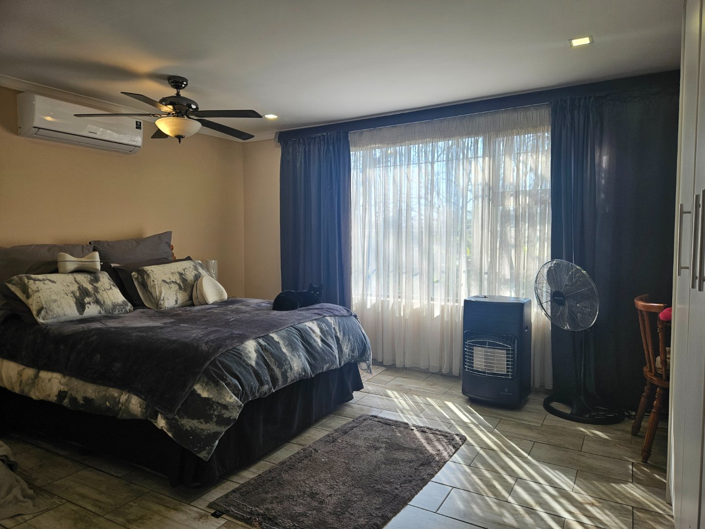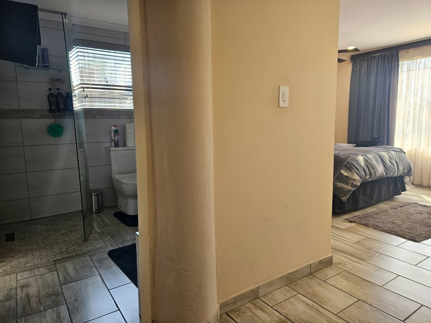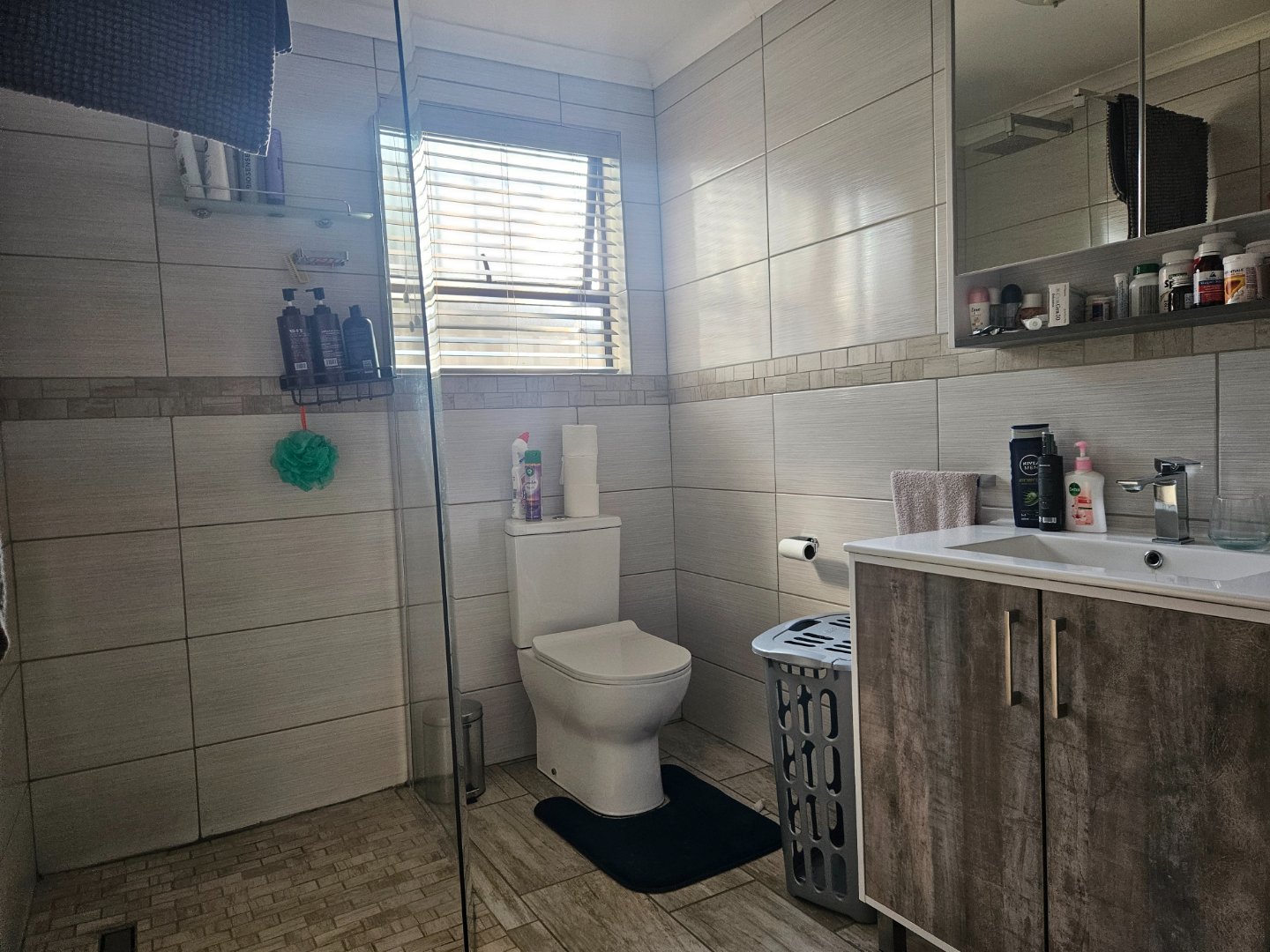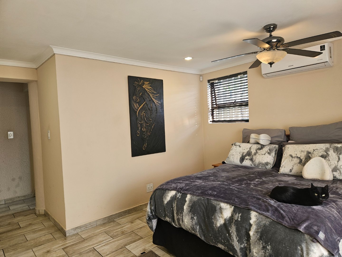 This beautifully maintained home offers 3 bedrooms and 2 bathrooms, including a main en-suite with a shower and a second bathroom with a bath and shower. All bedrooms feature ceiling fans with remote controls. There’s also a dedicated study, a braai room with a built-in braai, basin, granite tops, and unique stackable doors opening to the garden, plus a jacuzzi and pool in one.