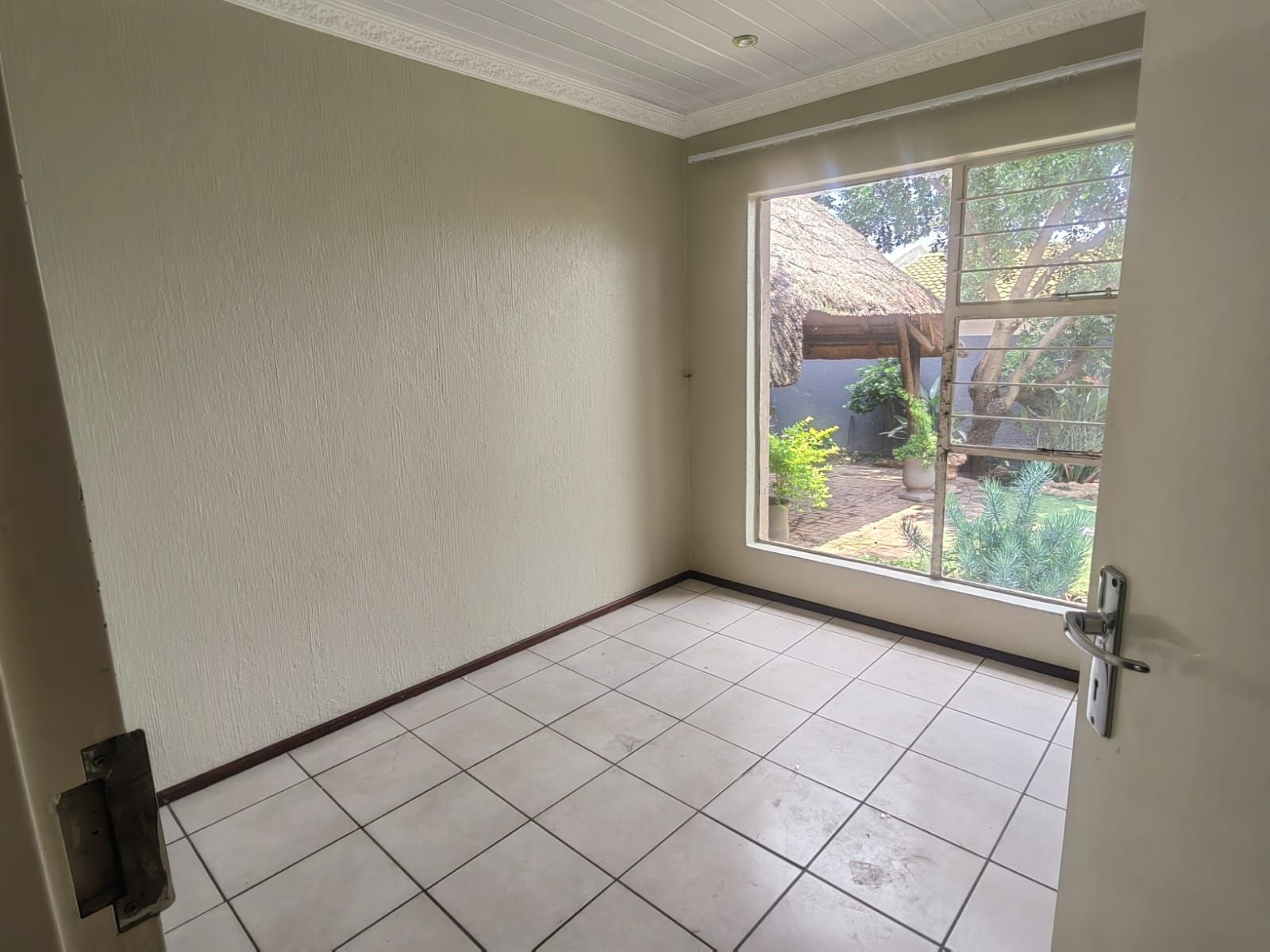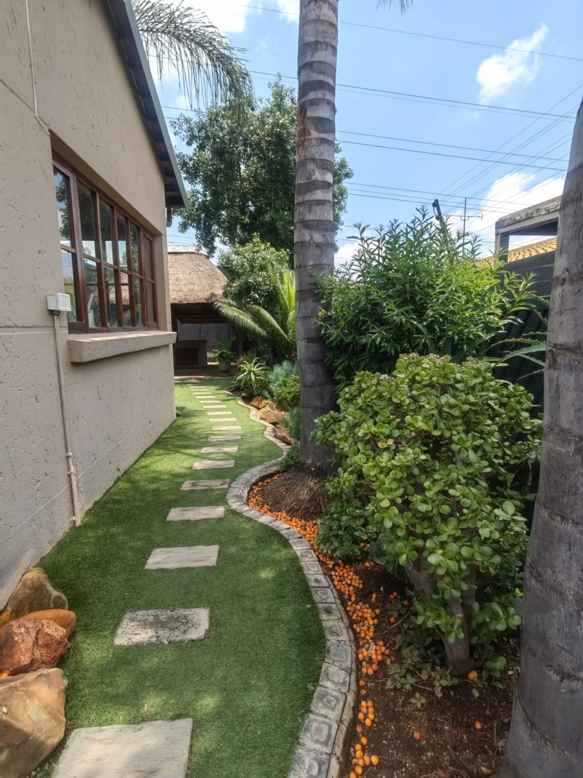 It comes with uncapped Wi-Fi and gardening services, ensuring a hassle-free lifestyle. The double garage provides secure parking, with space for an additional three vehicles. Extra features include a separate laundry room and an additional outside bedroom ideal for guests. Located in a secure, gated community, this standalone home is available immediately. Water and prepaid electricity apply at an estimated cost of around R1,000 per month.