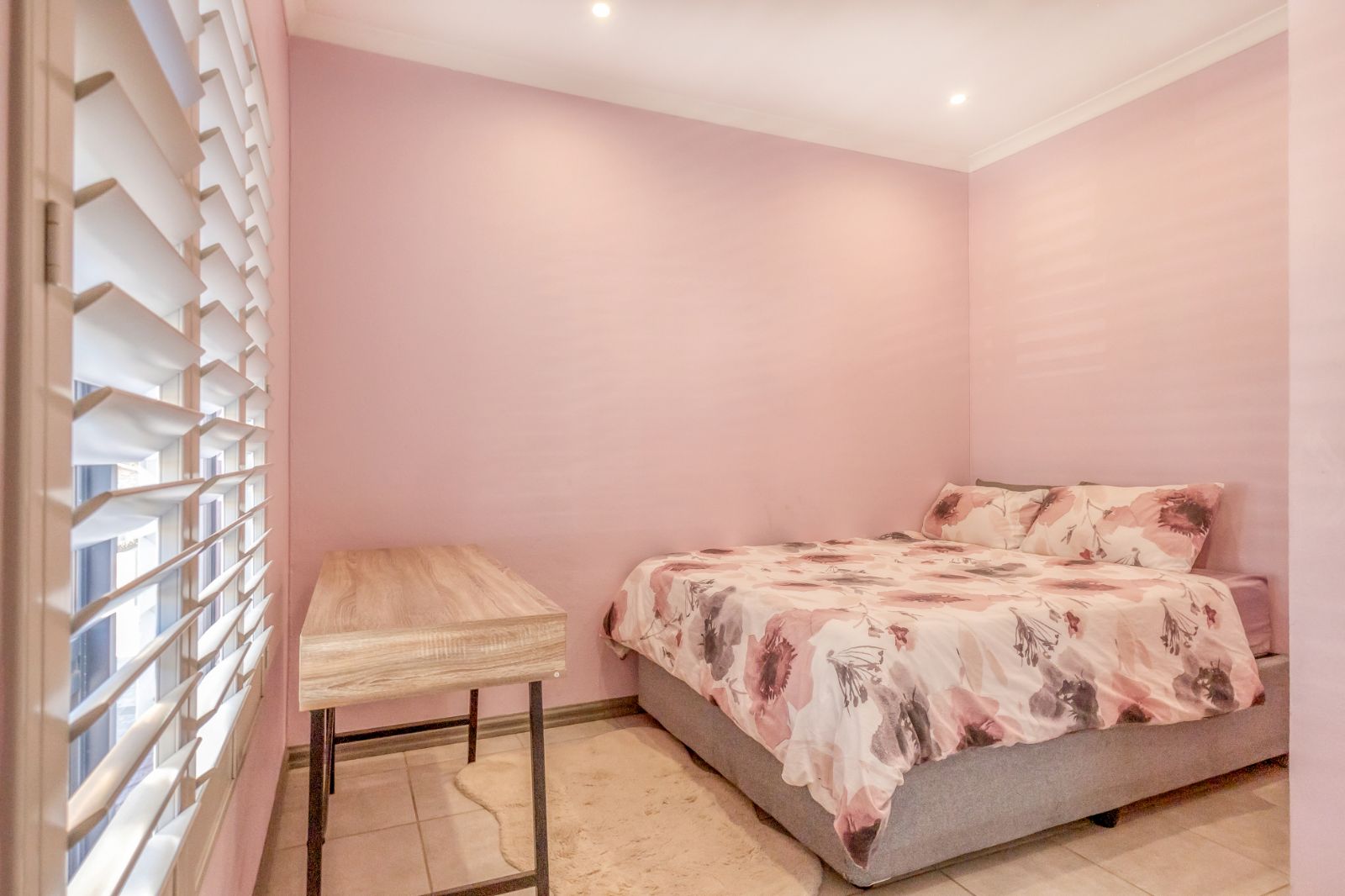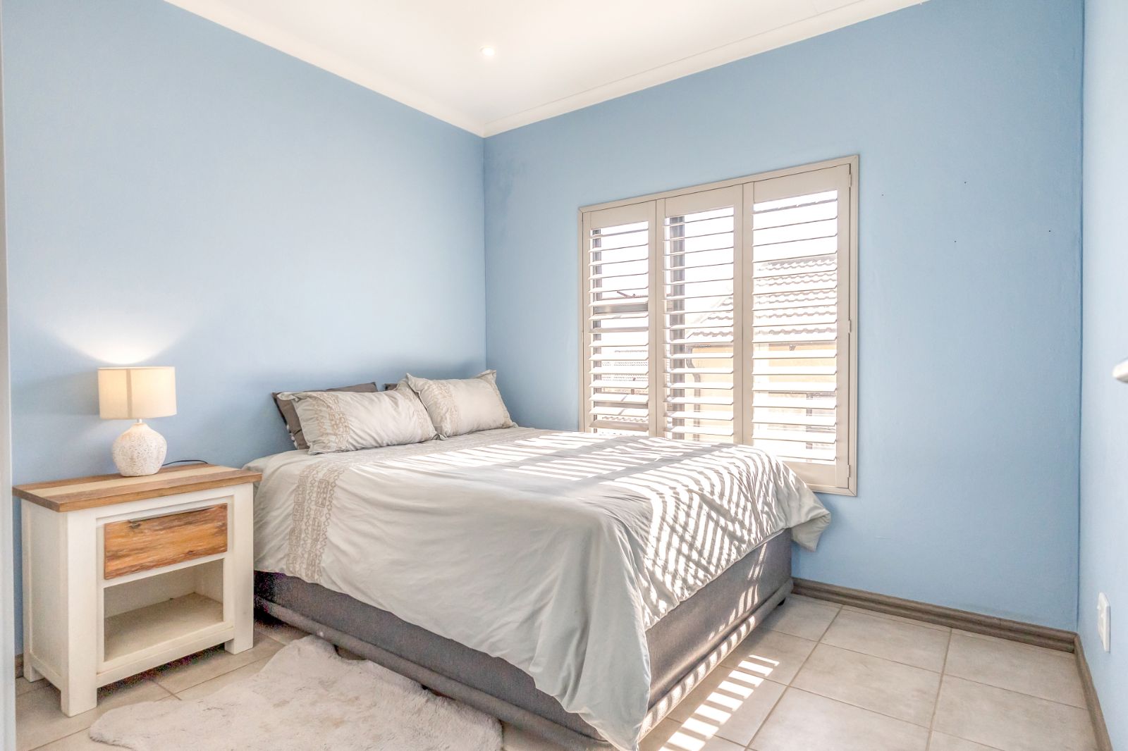 -Timeless plantation shutters throughout for added style, light control, and security.