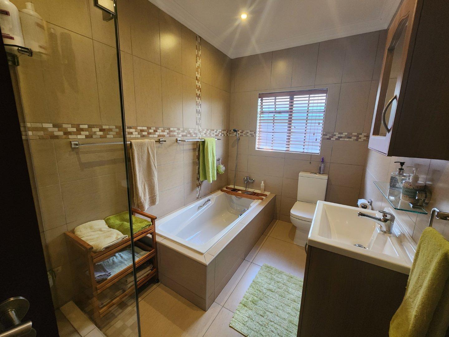 This home boasts high-quality laminated floors and carefully designed modern amenities, enhancing its refined elegance. Outside, the enchanting backyard provides a haven for relaxation and outdoor enjoyment. With a vegetable garden, an irrigated, landscaped garden, and a 2,500-liter JoJo tank, this property is both practical and serene. Additionally, the recently installed solar system with inverter and batteries ensures energy efficiency and sustainability, making this home an exceptional investment opportunity.