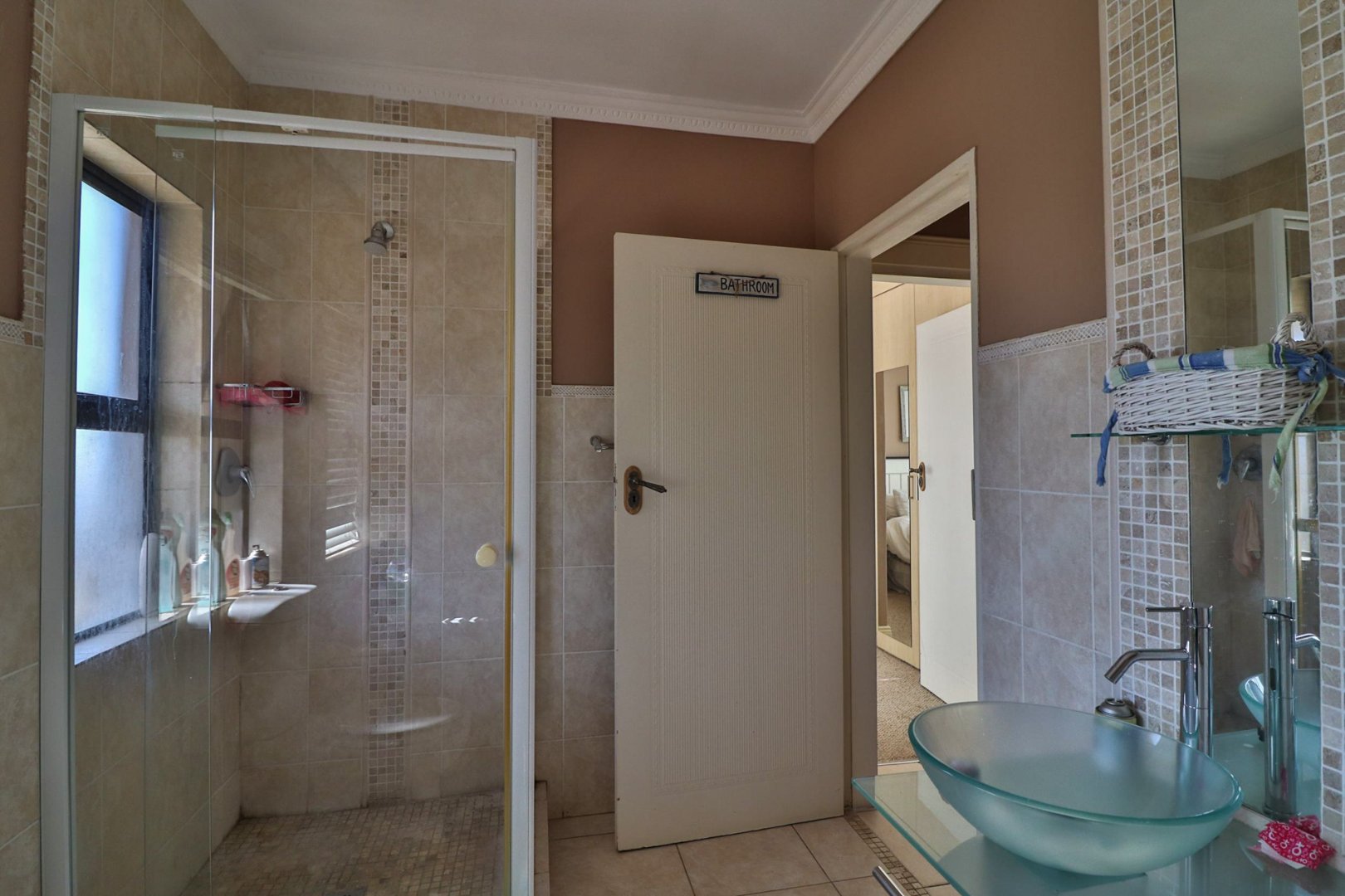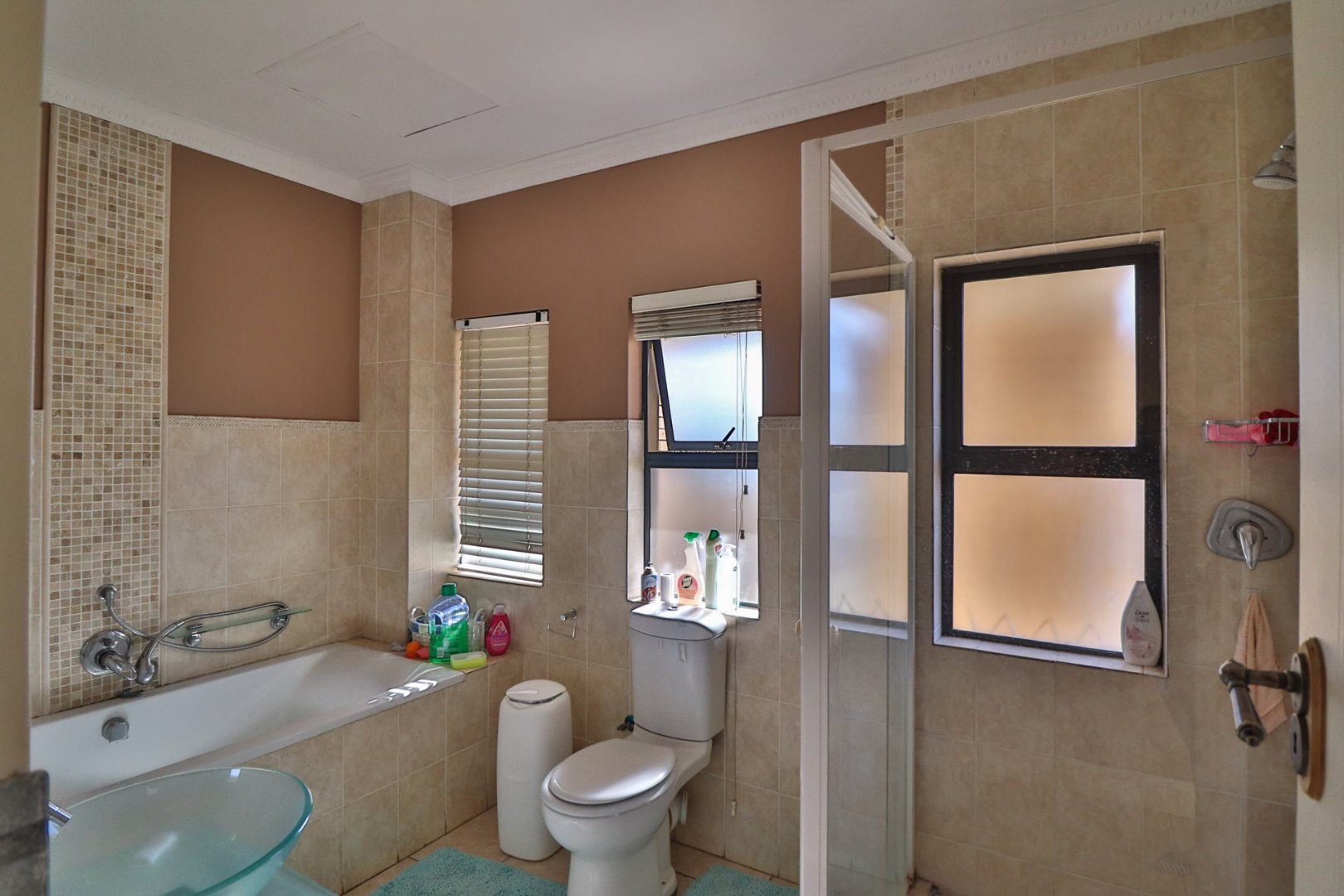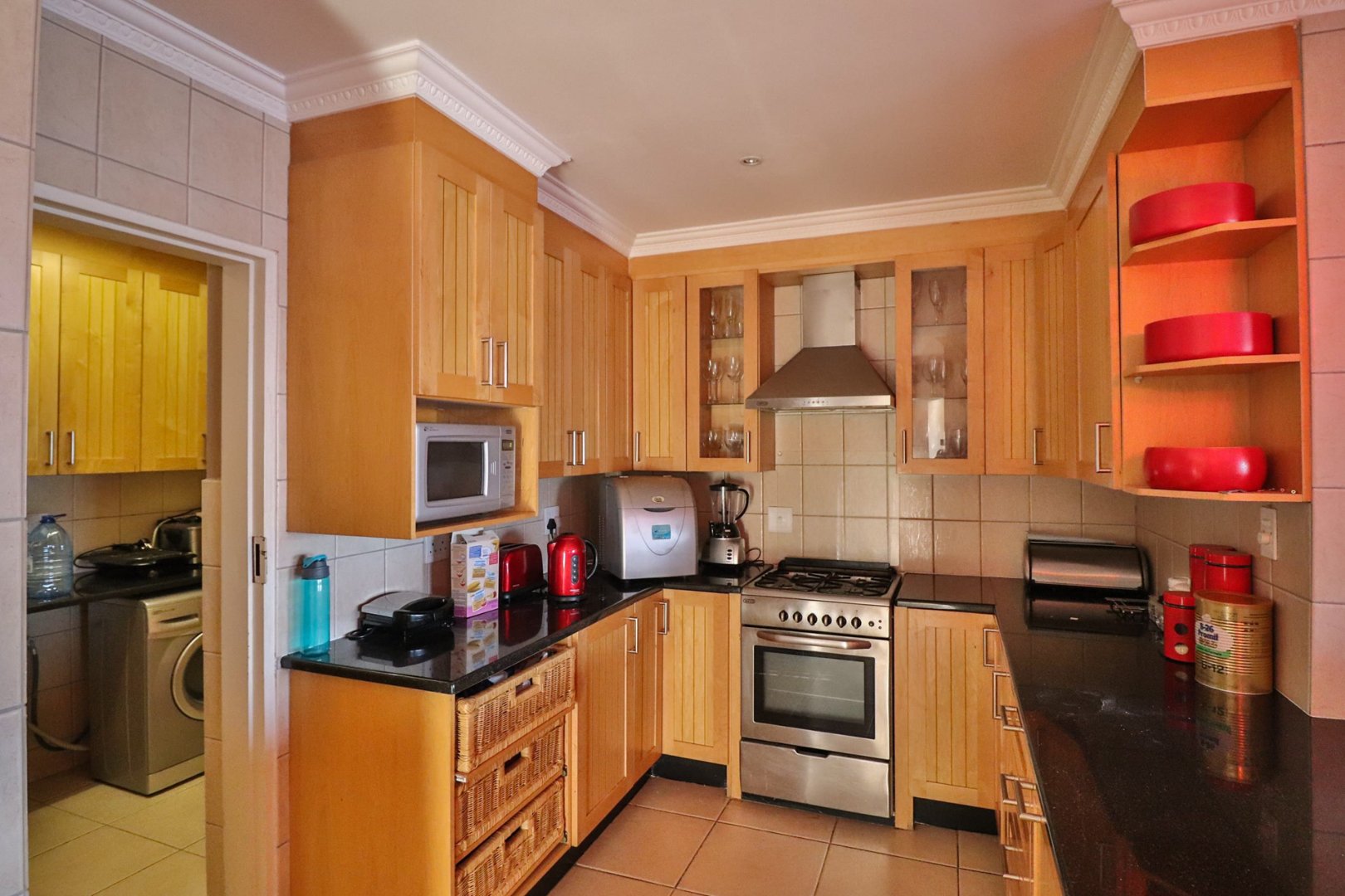 The Spacious open plan kitchen (Rustenburg granite tops) with lots of cupboards, Gas Stove & space for built-in Double Door Fridge & Microwave. The prep area or Breakfast nook seats 4 people & the scullery have space for 3 appliances (washing machine, tumble dryer & dishwasher) & a door leading to the washing lines.