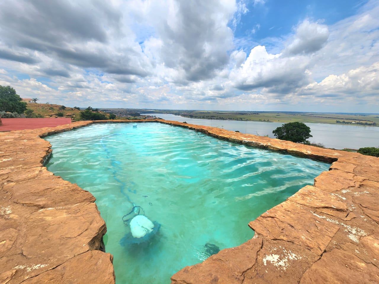 Enjoy outdoor living at its finest with a pool that looks over the dam, a cozy fire-pit, an outdoor built-in braai, and an indoor fireplace for those cozy winter days. There is also an outside guest bathroom conveniently located near the pool. With a double garage and ample parking space on the driveway, this home is perfect for both relaxation and entertaining, offering a perfect blend of indoor and outdoor living spaces.