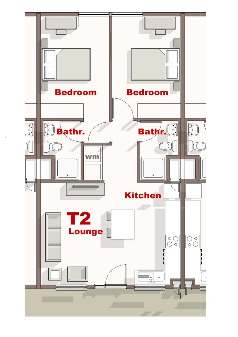 The complex has cleaning and laundry services on-site and access to fibre internet.