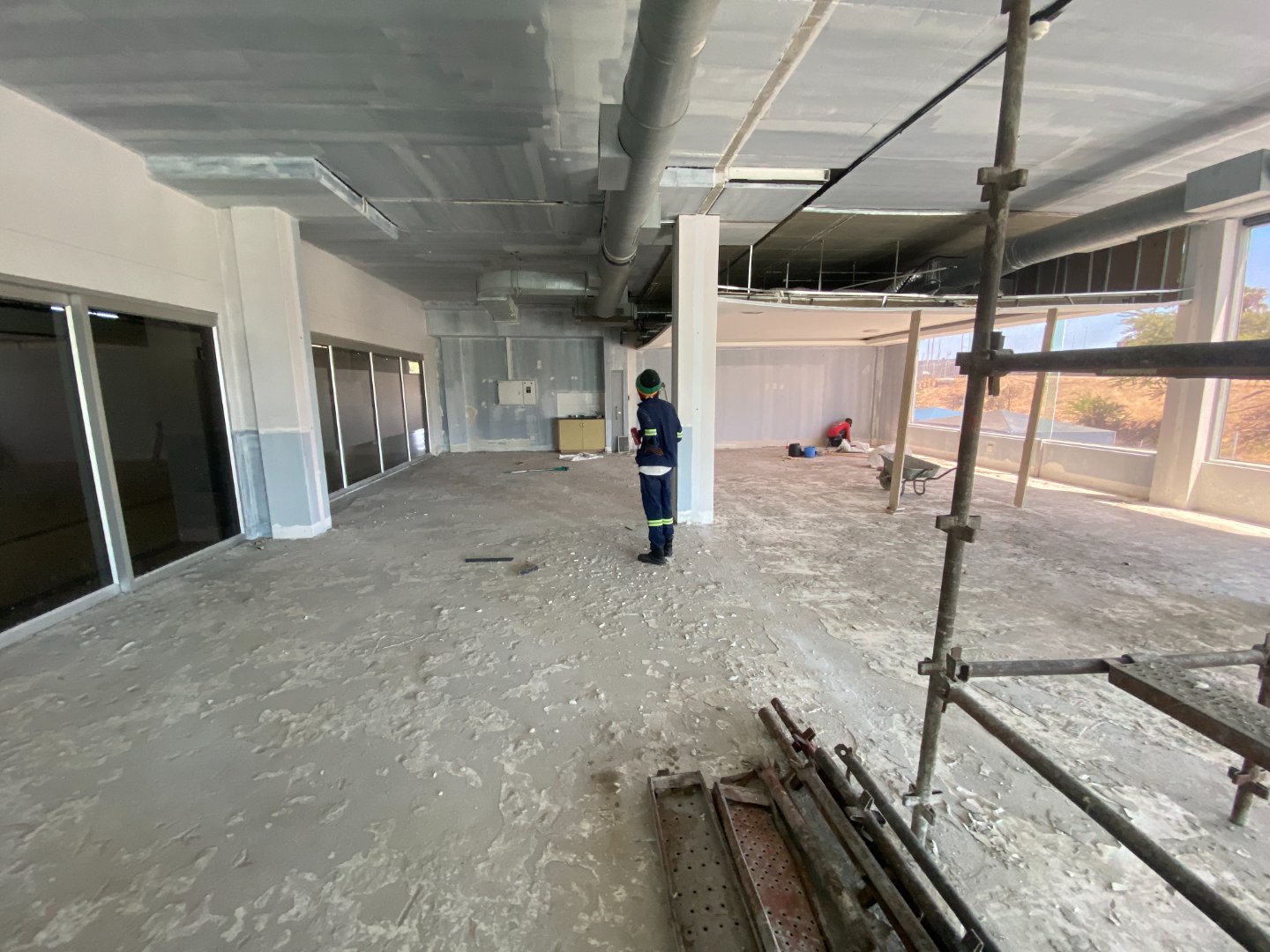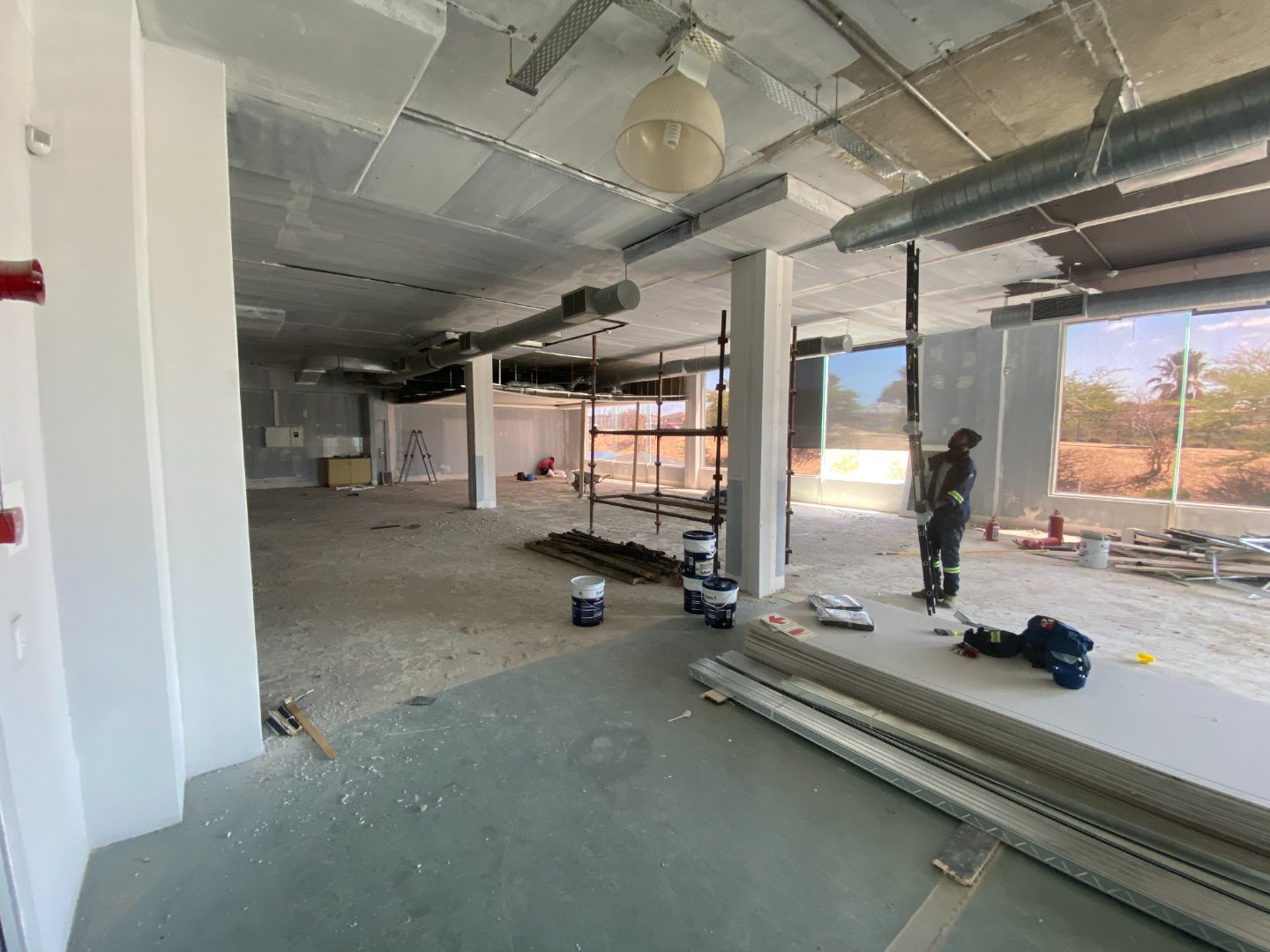 The office benefits from excellent natural light, with large glass windows offering open views towards Cape Town. Water points are already in place, allowing for the installation of kitchenettes as needed. The flexible layout makes the space suitable for a wide range of professional, creative, or administrative users.