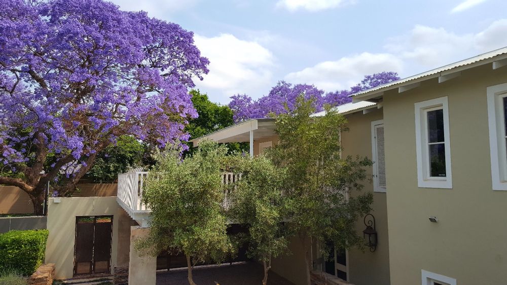 Sophisticated, clean lines with natural tones, organic textures and fine finishes create a style that is chic - modern, classy and very beautiful. This exquisite penthouse is fully furnished, well-equipped, spacious with a large balcony/patio taking in the views over the main house's beautifully landscaped garden and the purple Jacaranda-lined streets. The penthouse has excellent security in place & the price includes electricity, water, DSTV, Netflix, Wi-Fi, solar & one covered garage.