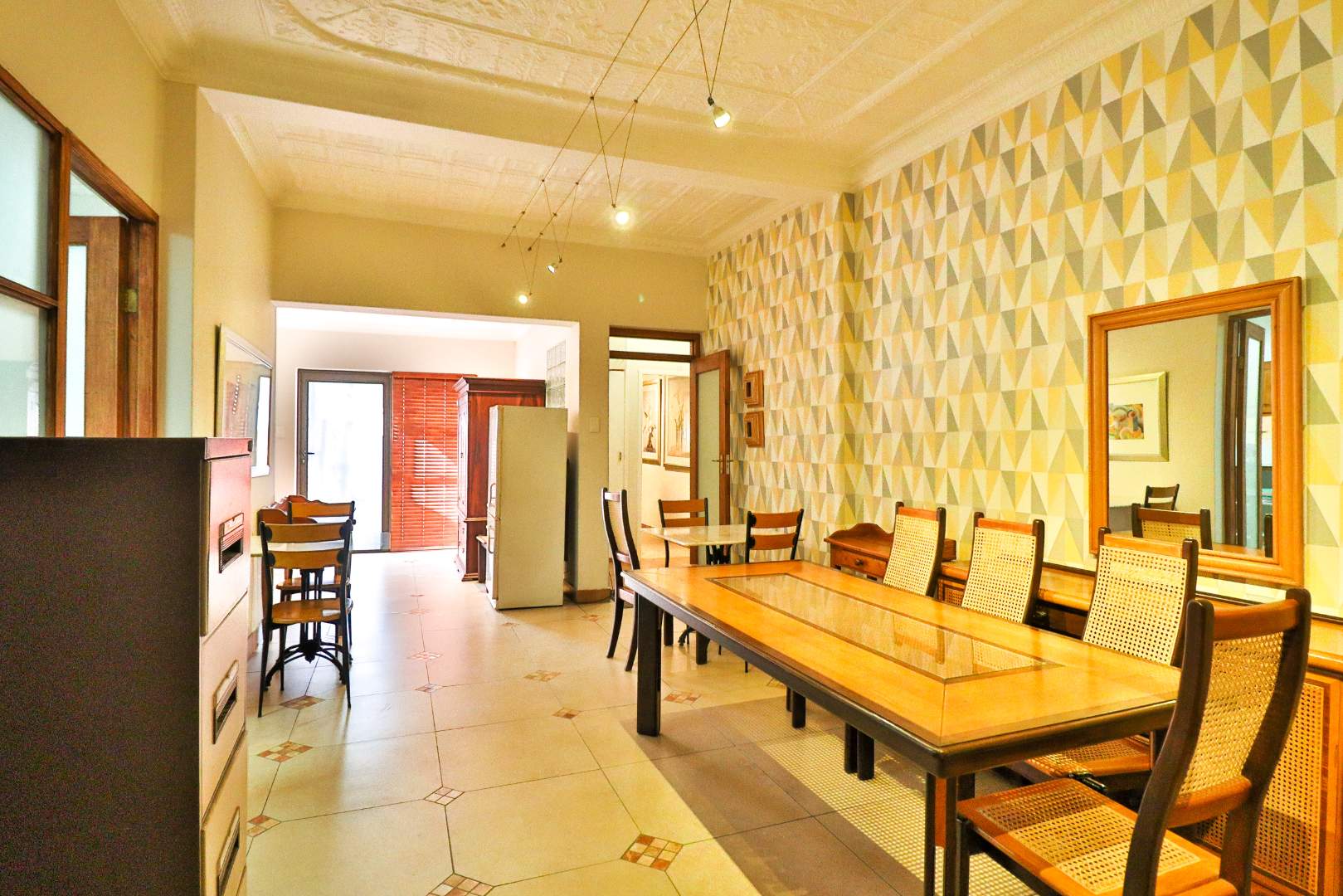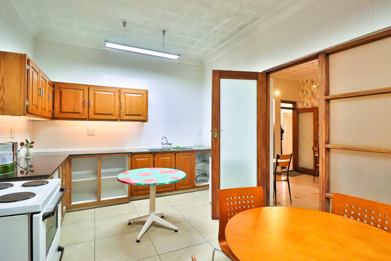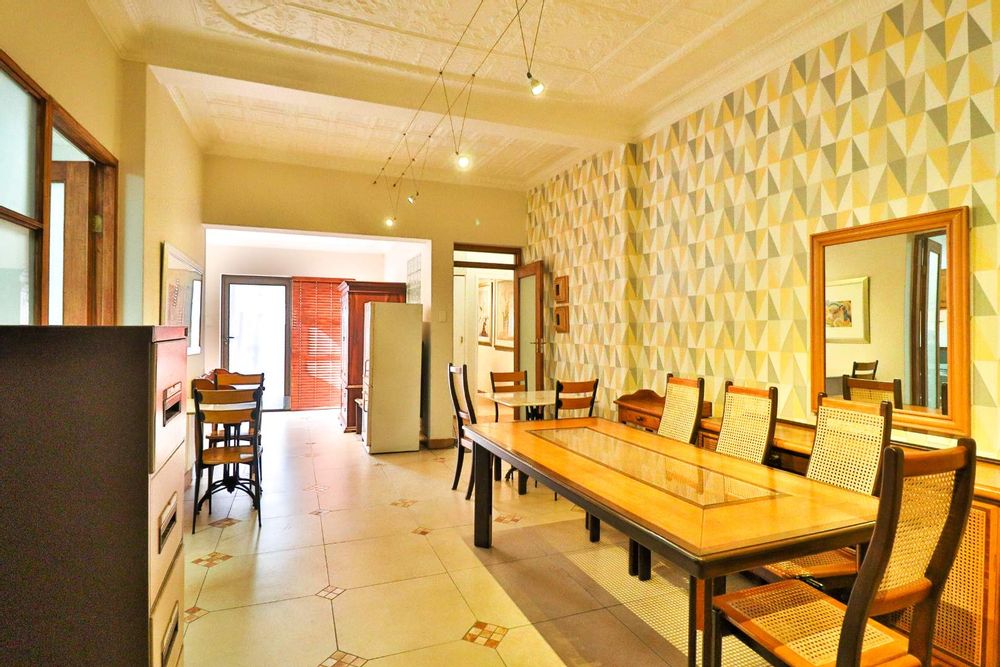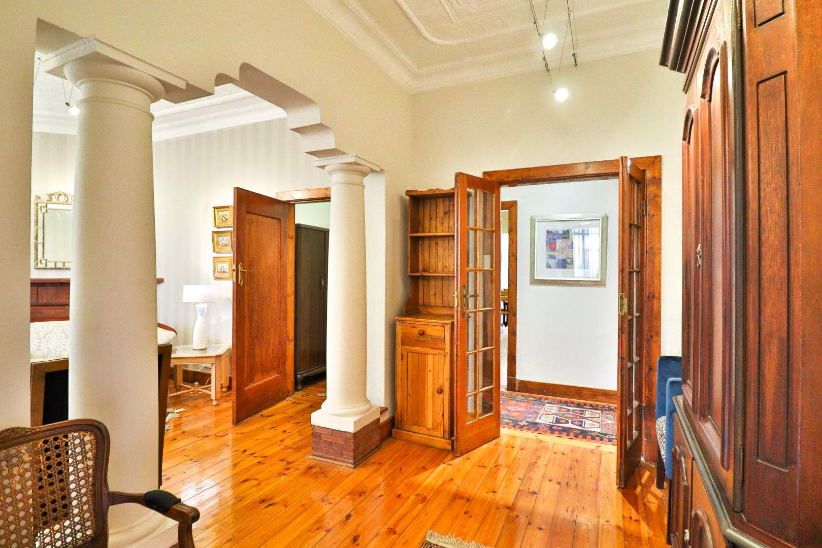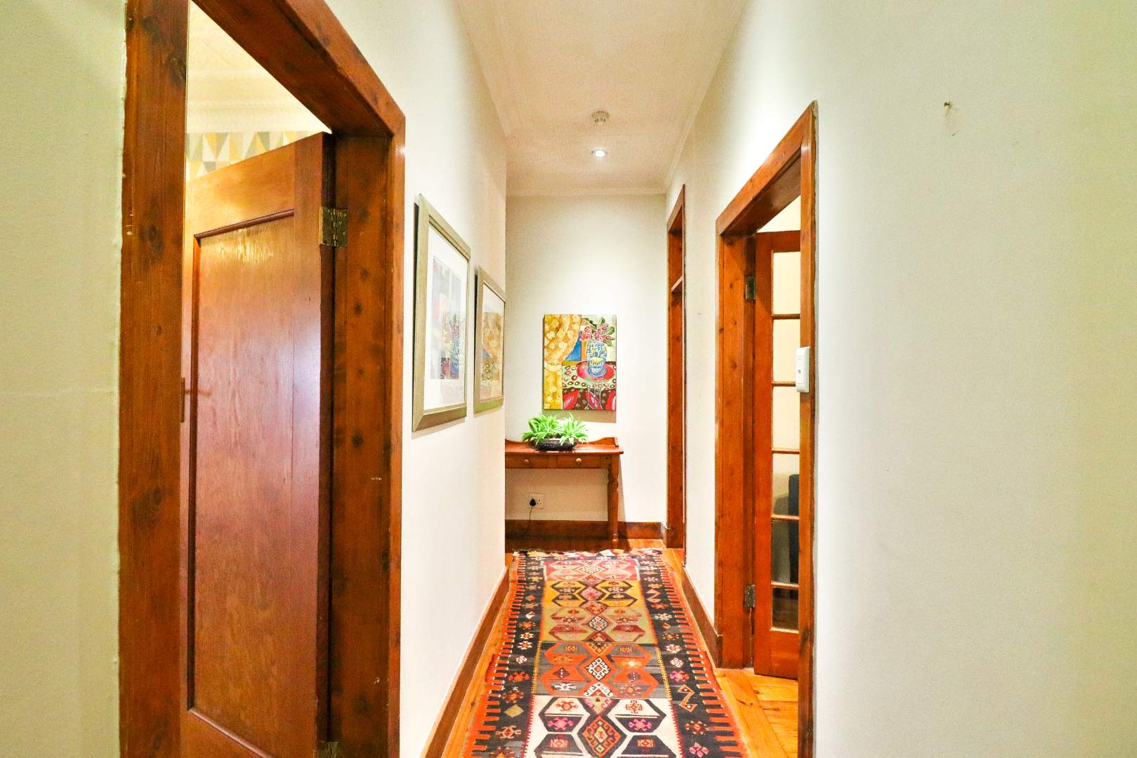 The house itself has been totally upgraded, with oregon pine floors and doors that have been beautifully restored. The pressed steel ceilings compliment the finishings. Modern lighting has been used with down lighters in bulk heads at the bay windows.
