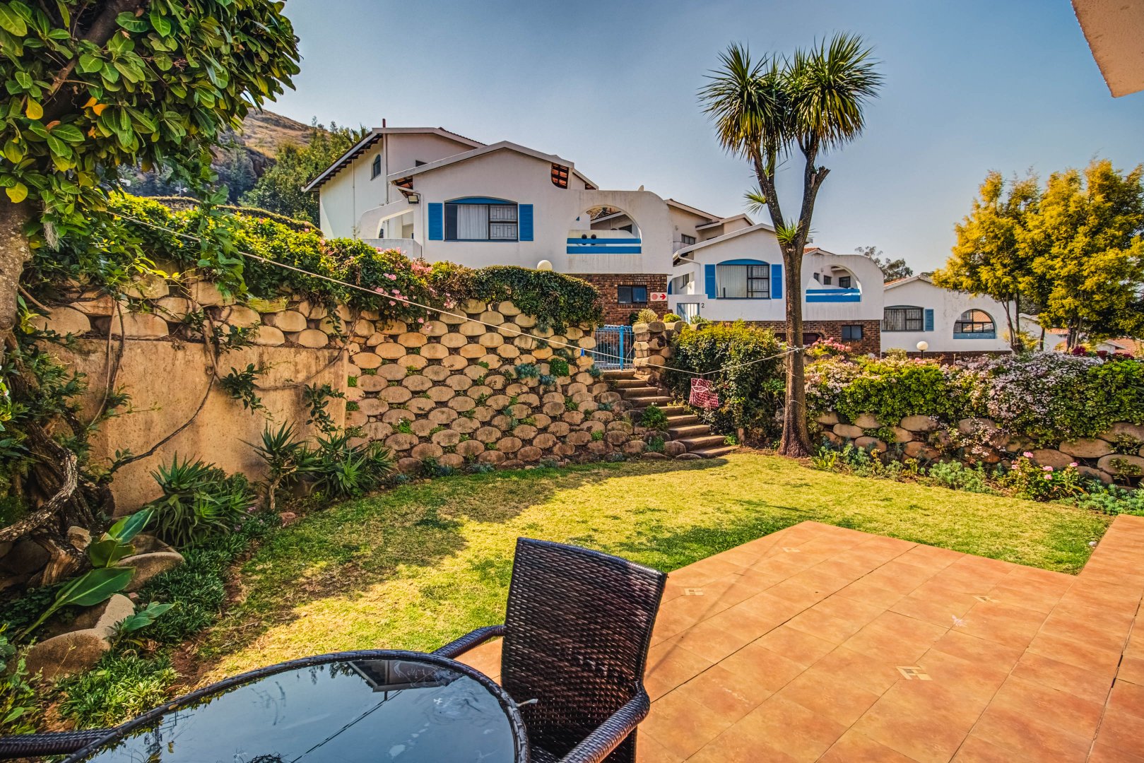 Upstairs, you'll find three well-sized bedrooms and 2.5 bathrooms, including a main en-suite. Enjoy outdoor living with your own garden, built-in braai area, and access to a communal pool – perfect for entertaining or relaxing with family. Additional highlights include a double garage, staff accommodation, and excellent security.