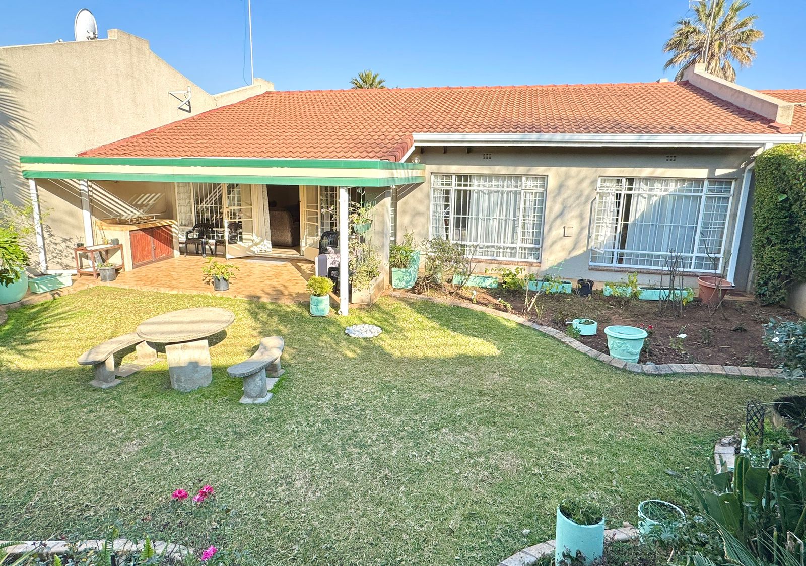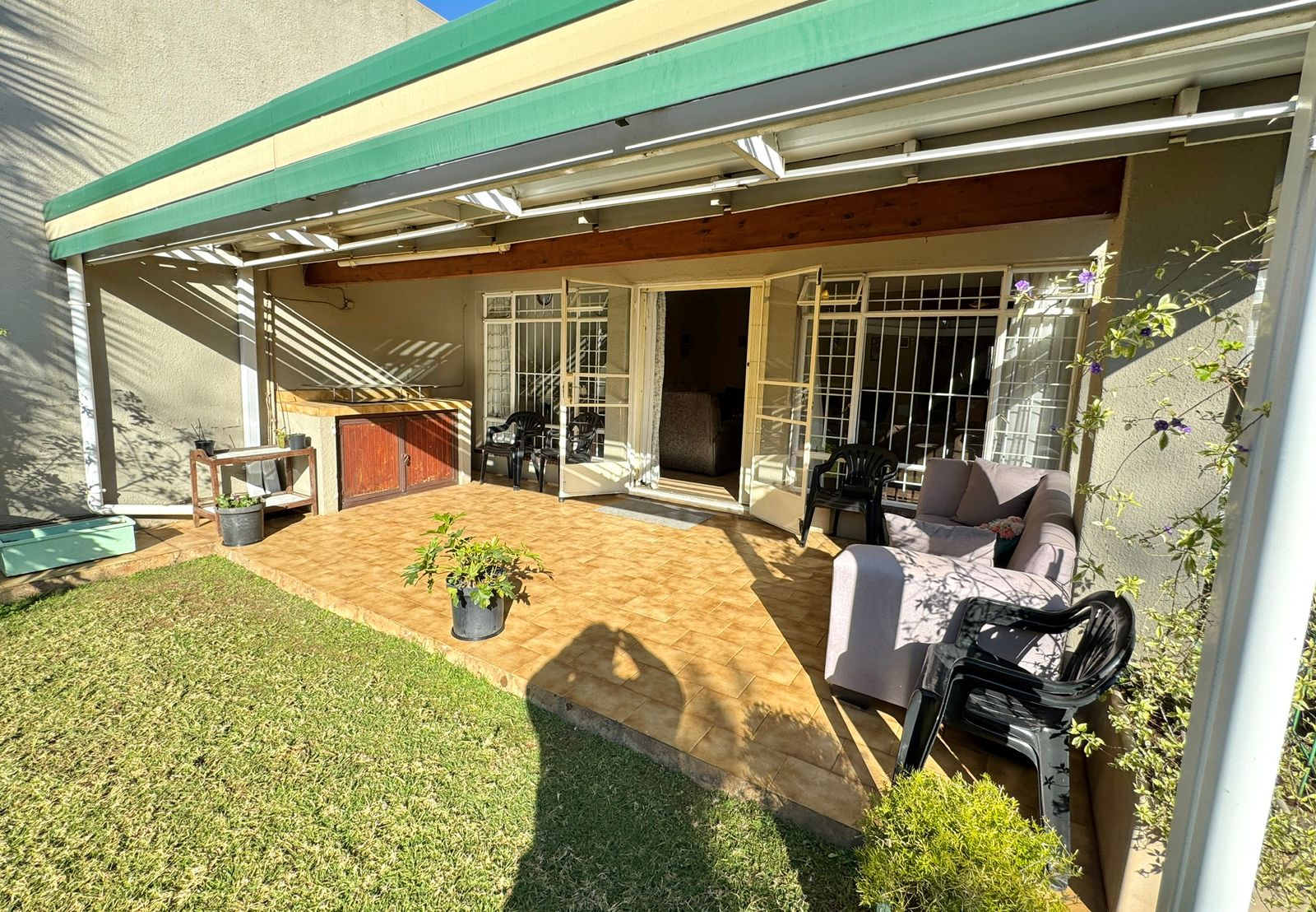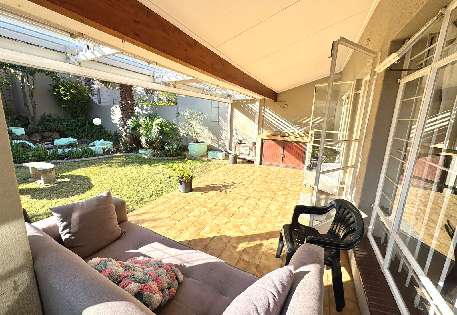 Where Comfort Meets Style – Your Dream Townhouse Awaits! Welcome to this beautifully maintained 3-bedroom, 2-bathroom townhouse with a private flatlet/maid’s quarters and full bathroom, perfectly blending comfort, space, and timeless charm. Nestled in a small, secure complex, this home is ideal for families, professionals, or investors seeking modern convenience and a touch of elegance. 🌟 Prime Location Situated close to Eastgate, Bedford Centre, and other top shopping destinations. Easy freeway access makes commuting to Johannesburg, East Rand business hubs, or OR Tambo International Airport quick and effortless. Top-rated schools are nearby. 🌟 Spacious Living Areas A welcoming entrance hall leads into the home. Expansive open-plan lounge and dining area flows through glass doors onto a massive covered patio. Patio features a built-in braai and can be enclosed with stack-away glass doors, creating a year-round entertainment space. Peaceful garden with a lawn and cascading water feature – perfect for family relaxation. 🌟 Modern Kitchen & Extras Contemporary white cabinetry with ample storage. Large pantry with potential to convert into a laundry or guest loo. A glass door leads to the back courtyard with washing lines. From here, access the flatlet/maid’s quarters with full en-suite bathroom – ideal as a helper’s room, guest suite, teen pad, or work-from-home office. 🌟 Bedrooms & Bathrooms Three spacious bedrooms with built-in cupboards. The main bedroom offers luxury with a lounge/study nook, vanity area, and beautiful garden views. Two modern bathrooms: A family bathroom in the passage. A stylish en-suite bathroom in the main bedroom. 🌟 Parking & Security Single lock-up garage with direct access into the home. Double covered carport behind lock-up gates. Secure pedestrian entrance. Excellent security: electric fencing, motorized gate, and complex perimeter protection. ✨ Why You’ll Love It This home offers versatile living with the added benefit of a flatlet, blending indoor comfort with outdoor serenity. Whether it’s your first home, a family upgrade, or a smart investment, it promises lasting value in a prime location. 📞 Don’t miss this opportunity – contact us today to arrange your private viewing!