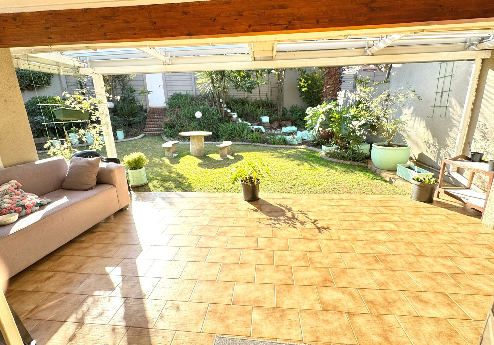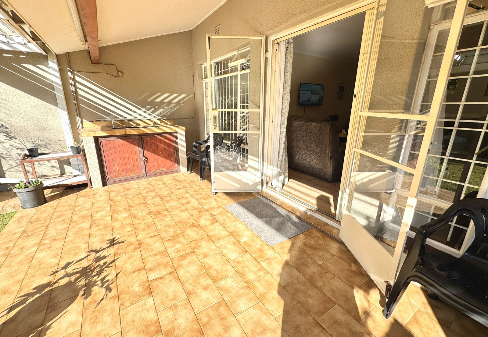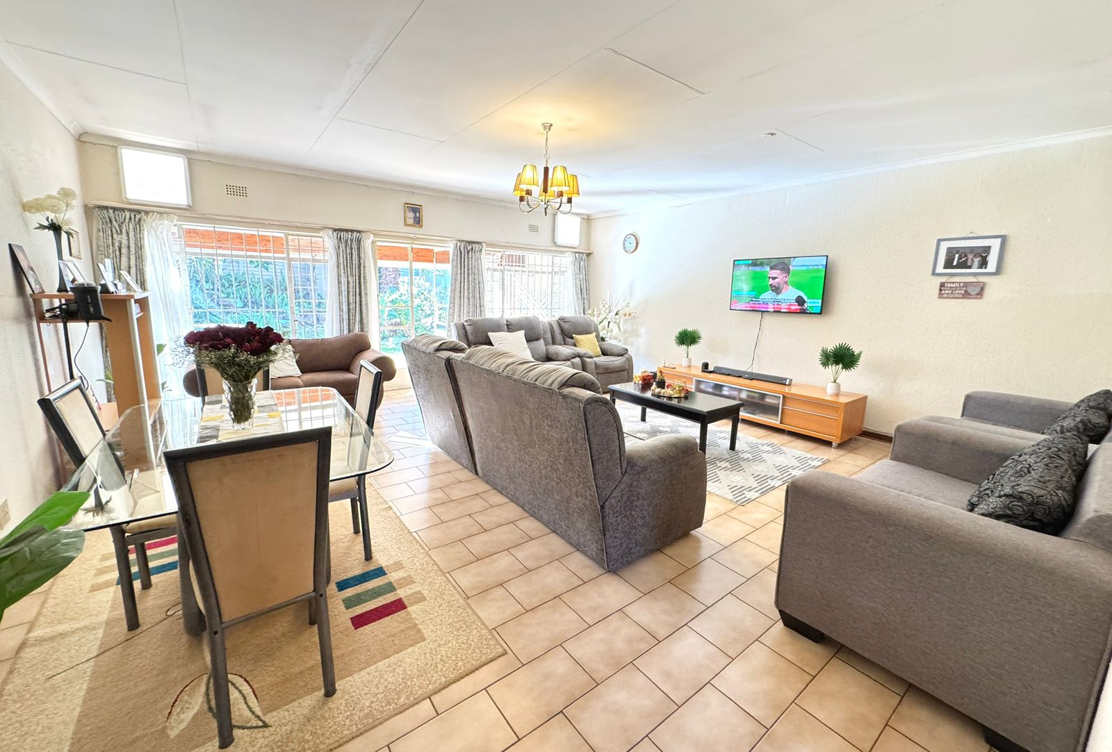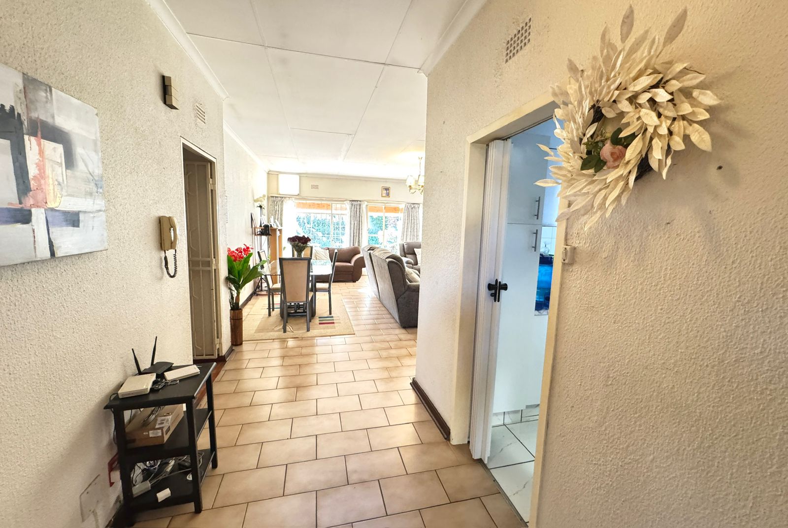 Where Comfort Meets Style – Your Dream Townhouse Awaits! Welcome to this beautifully maintained 3-bedroom, 2-bathroom townhouse with a private flatlet/maid’s quarters and full bathroom, perfectly blending comfort, space, and timeless charm. Nestled in a small, secure complex, this home is ideal for families, professionals, or investors seeking modern convenience and a touch of elegance. 🌟 Prime Location Situated close to Eastgate, Bedford Centre, and other top shopping destinations. Easy freeway access makes commuting to Johannesburg, East Rand business hubs, or OR Tambo International Airport quick and effortless. Top-rated schools are nearby. 🌟 Spacious Living Areas A welcoming entrance hall leads into the home. Expansive open-plan lounge and dining area flows through glass doors onto a massive covered patio. Patio features a built-in braai and can be enclosed with stack-away glass doors, creating a year-round entertainment space. Peaceful garden with a lawn and cascading water feature – perfect for family relaxation. 🌟 Modern Kitchen & Extras Contemporary white cabinetry with ample storage. Large pantry with potential to convert into a laundry or guest loo. A glass door leads to the back courtyard with washing lines. From here, access the flatlet/maid’s quarters with full en-suite bathroom – ideal as a helper’s room, guest suite, teen pad, or work-from-home office. 🌟 Bedrooms & Bathrooms Three spacious bedrooms with built-in cupboards. The main bedroom offers luxury with a lounge/study nook, vanity area, and beautiful garden views. Two modern bathrooms: A family bathroom in the passage. A stylish en-suite bathroom in the main bedroom. 🌟 Parking & Security Single lock-up garage with direct access into the home. Double covered carport behind lock-up gates. Secure pedestrian entrance. Excellent security: electric fencing, motorized gate, and complex perimeter protection. ✨ Why You’ll Love It This home offers versatile living with the added benefit of a flatlet, blending indoor comfort with outdoor serenity. Whether it’s your first home, a family upgrade, or a smart investment, it promises lasting value in a prime location. 📞 Don’t miss this opportunity – contact us today to arrange your private viewing!
