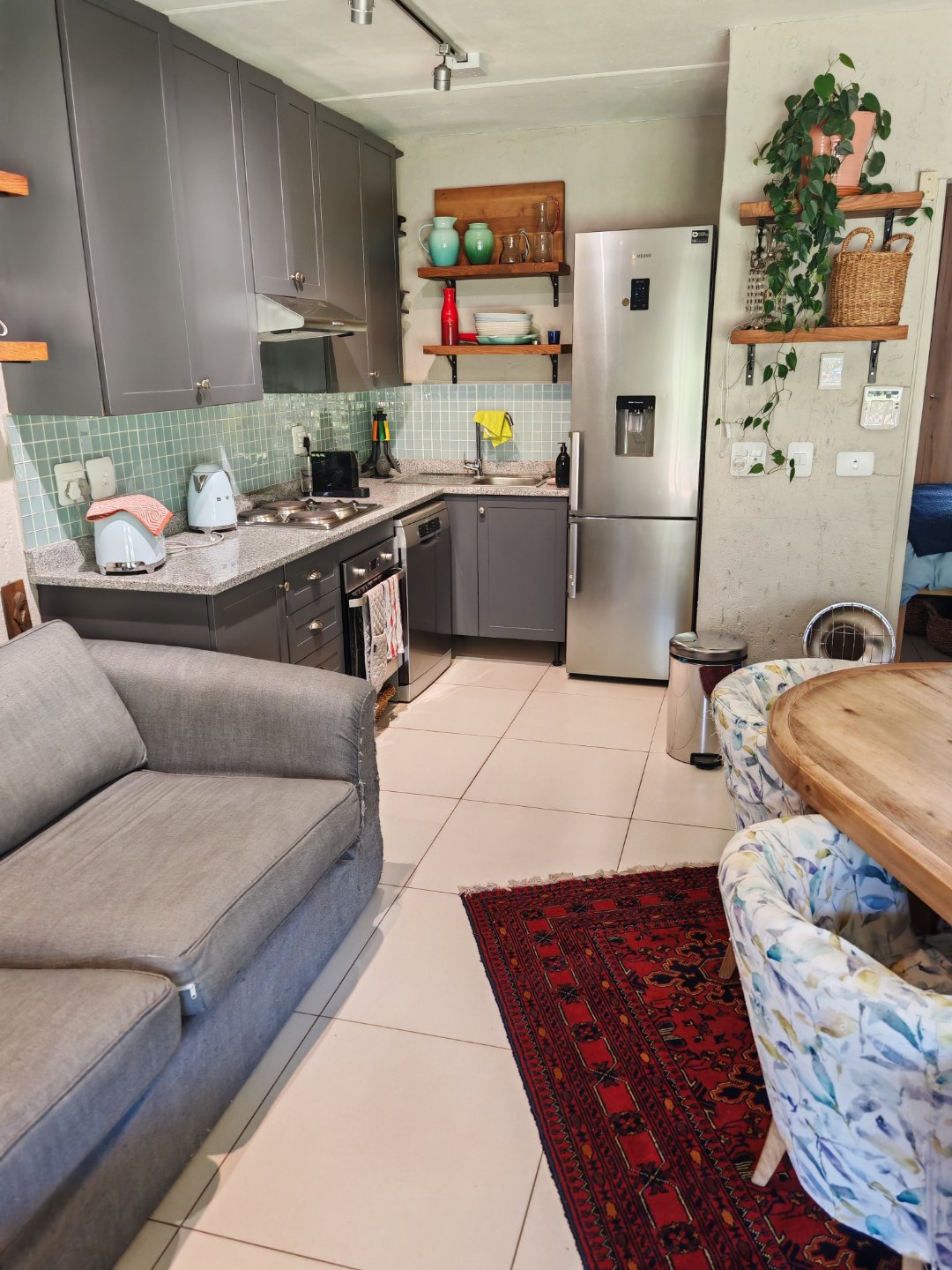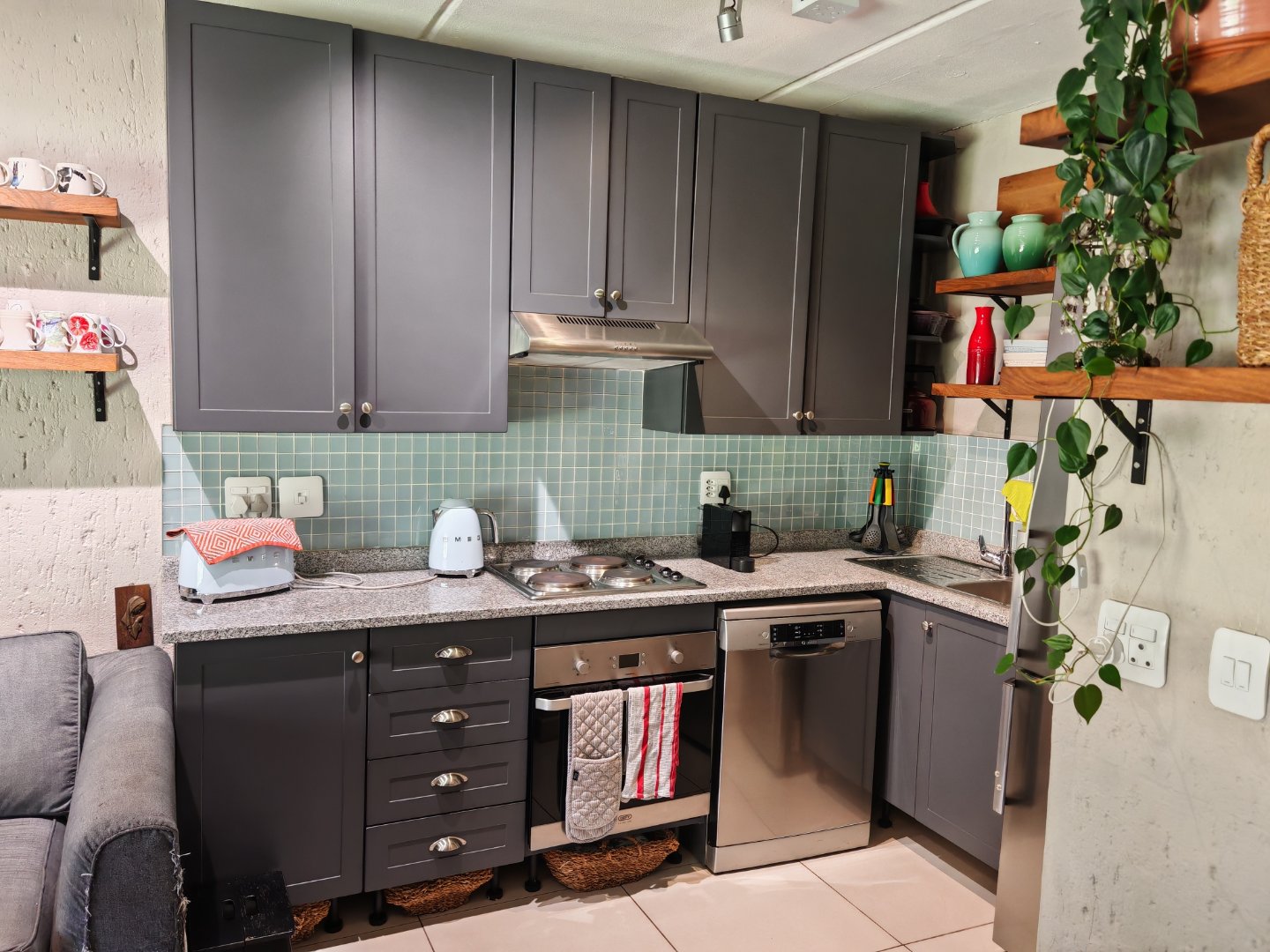 Open -Plan Living Area: Lounge, Dining room and Kitchen with Granite tops and space for Dishwasher.