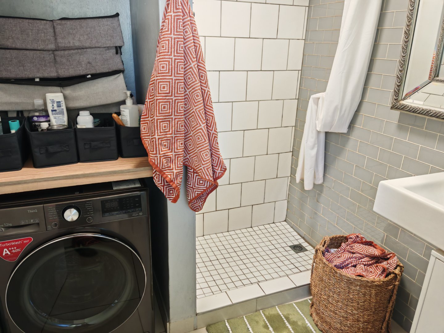Bedroom: Ensuite bathroom with shower and space for washing machine.