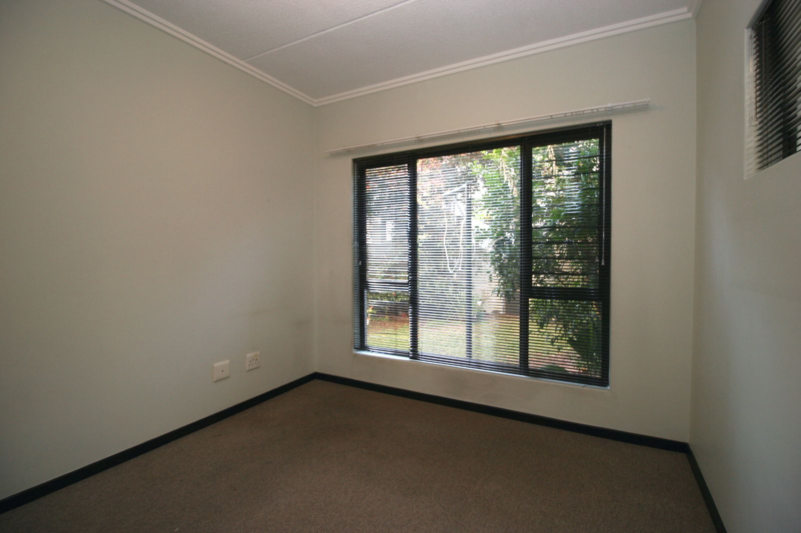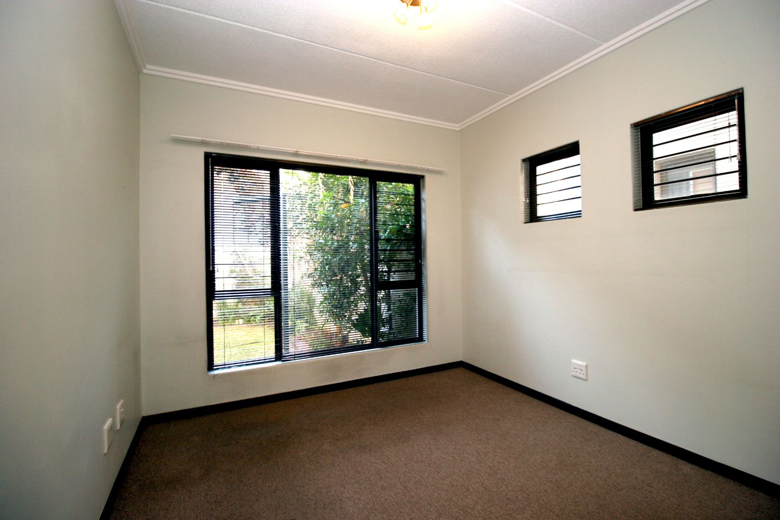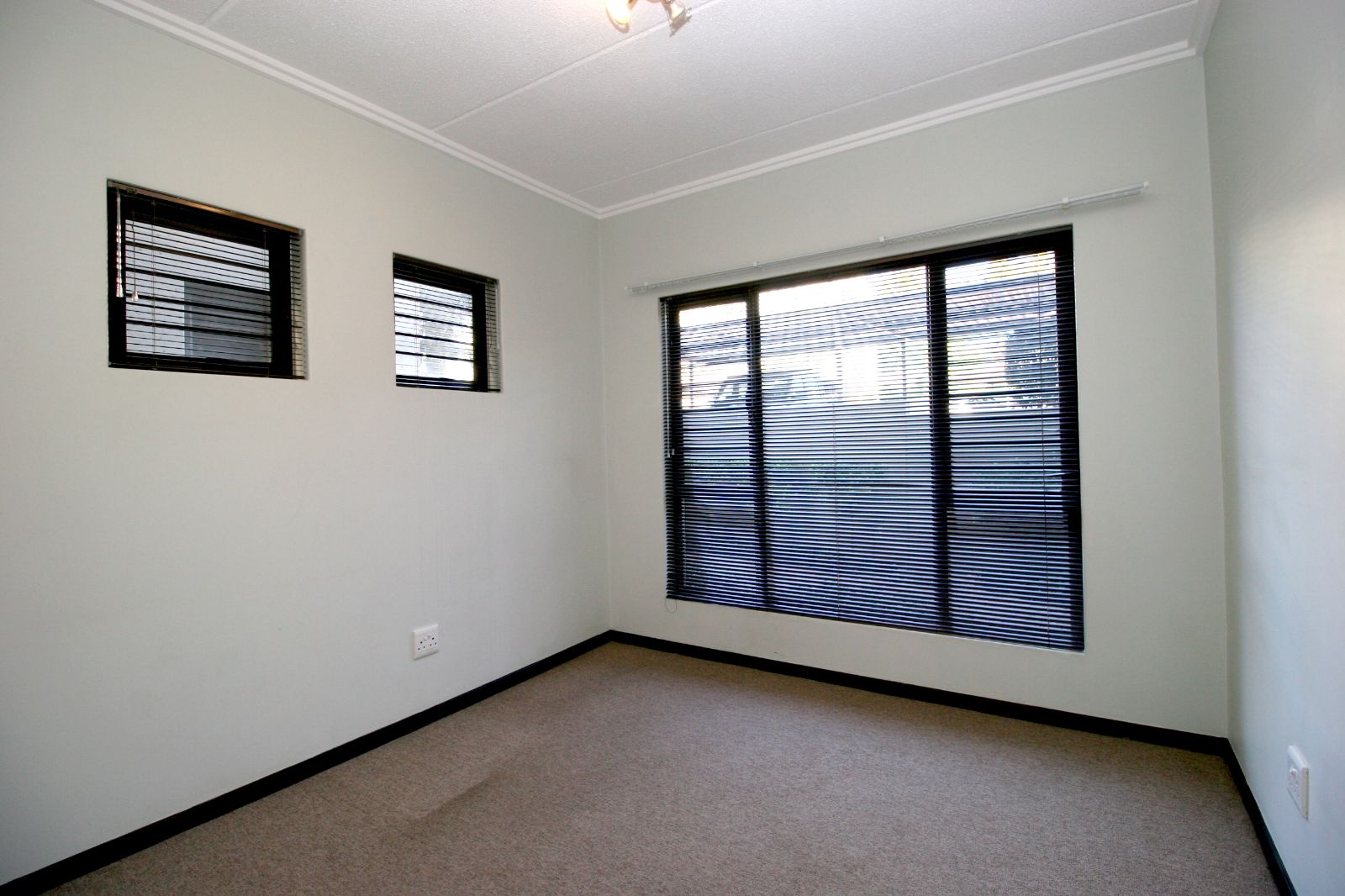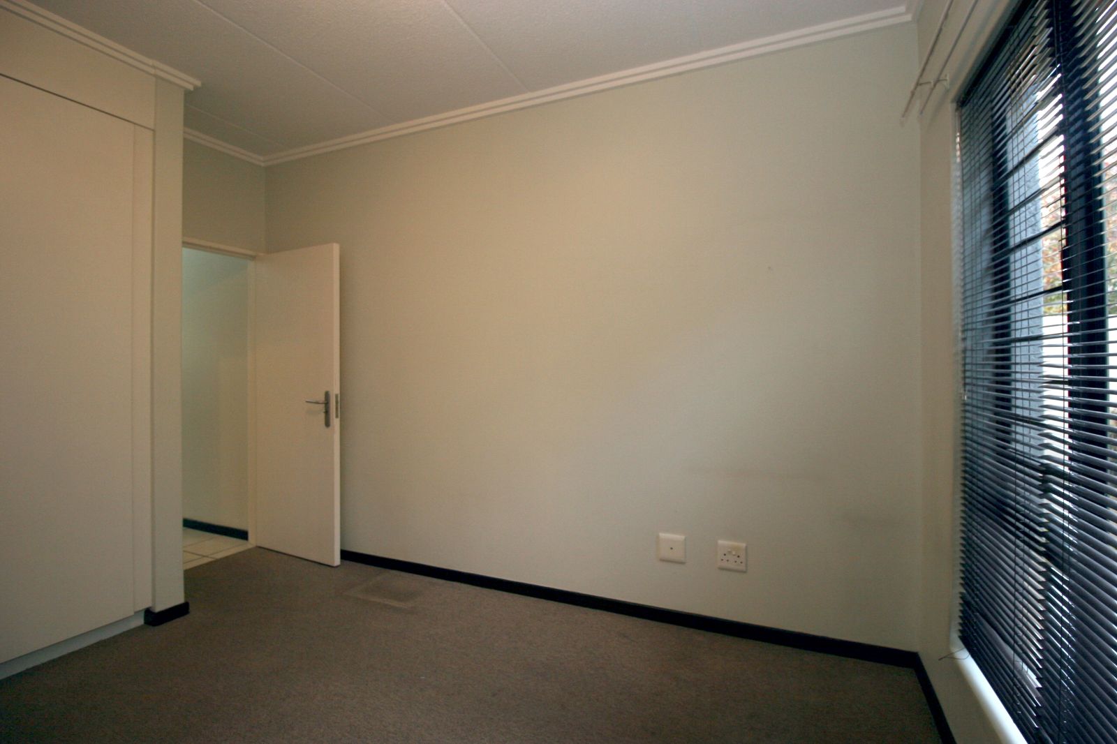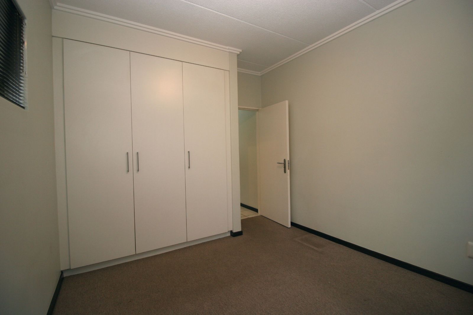 The bedrooms are spacious, fitted with carpets, and both offer ample cupboard space.