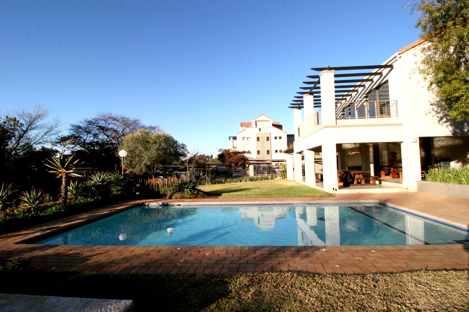 The complex also features a communal clubhouse with a swimming pool and braai facilities, perfect for socializing with friends and family.