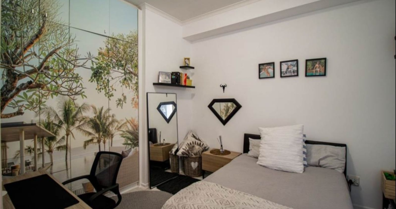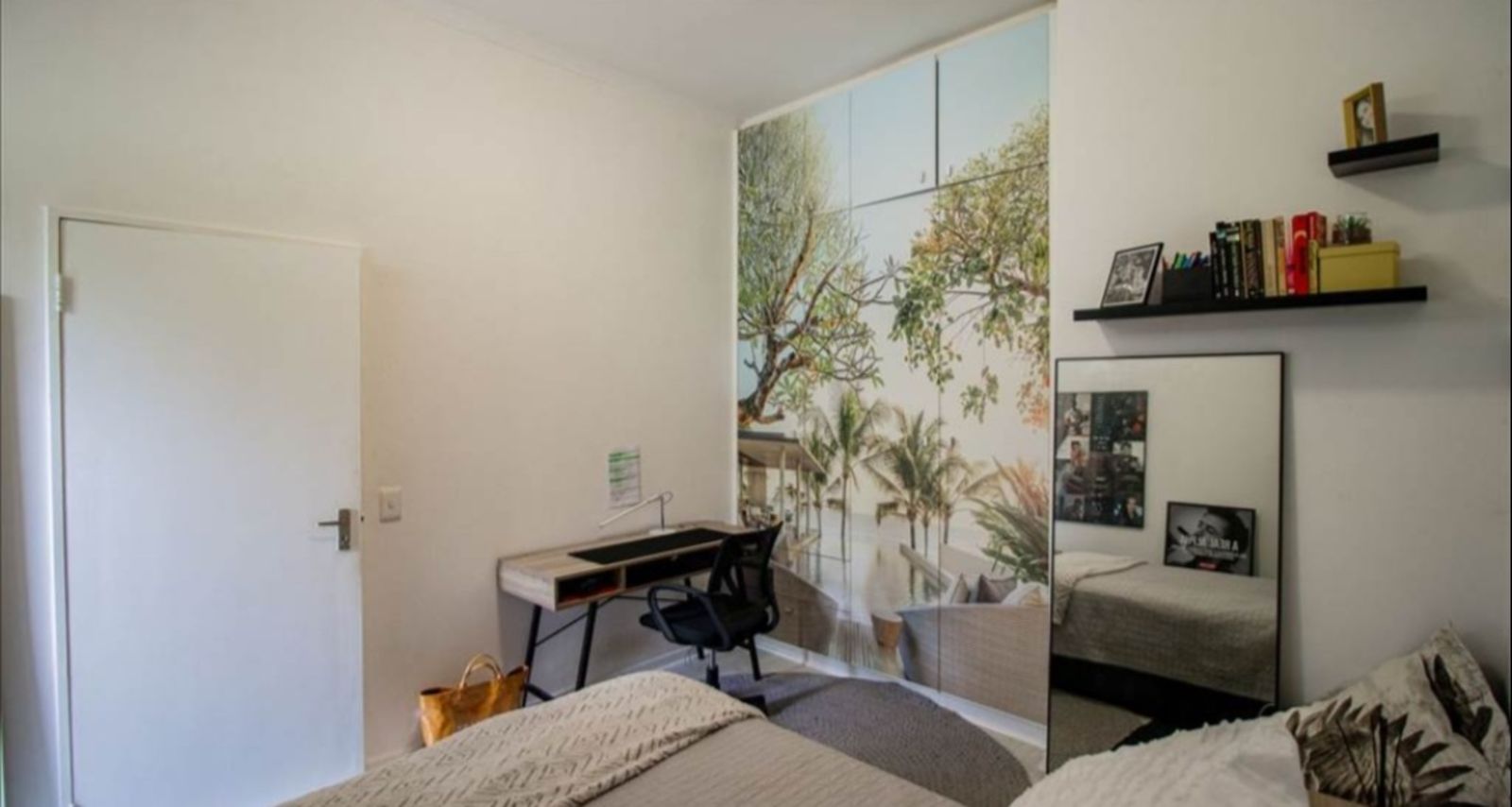 The complex offers a charming clubhouse with reading nook, pool table, outside seating area, communal braai space, large sparkling pool with deck chairs and umbrellas and well equipped gym.