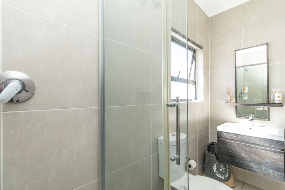 The spacious bedroom includes generous cupboard space and leads into a sleek ensuite bathroom with a convenient walk-in shower.