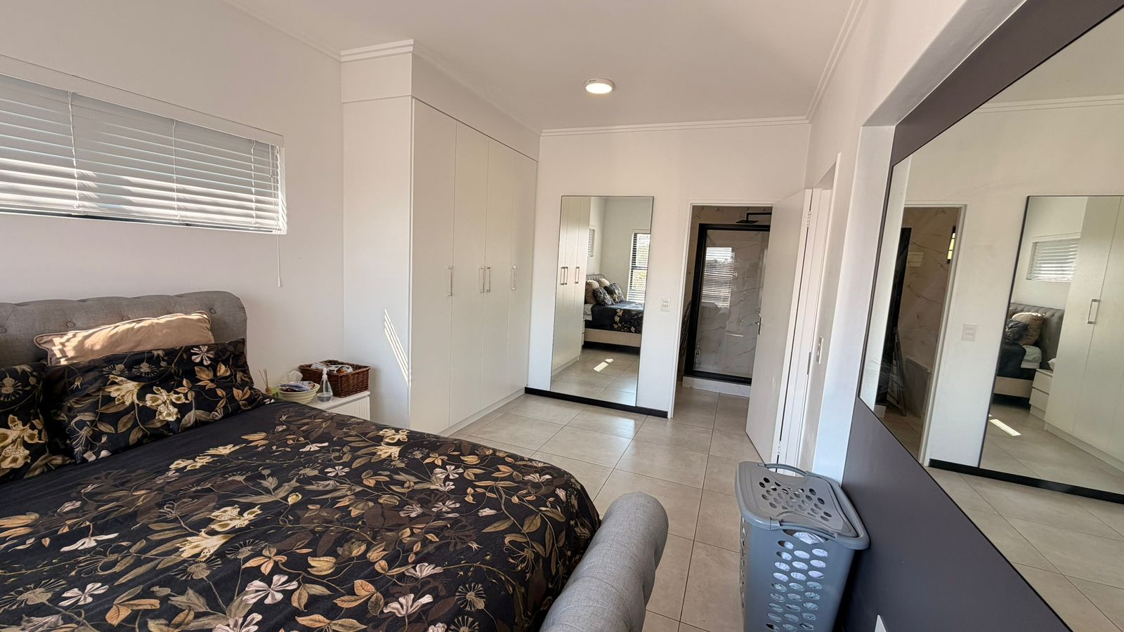 All three bedrooms are well-sized with ample built-in cupboards, while the main bedroom features an en-suite bathroom for added privacy and comfort. The second bathroom services the remaining bedrooms and guests.
