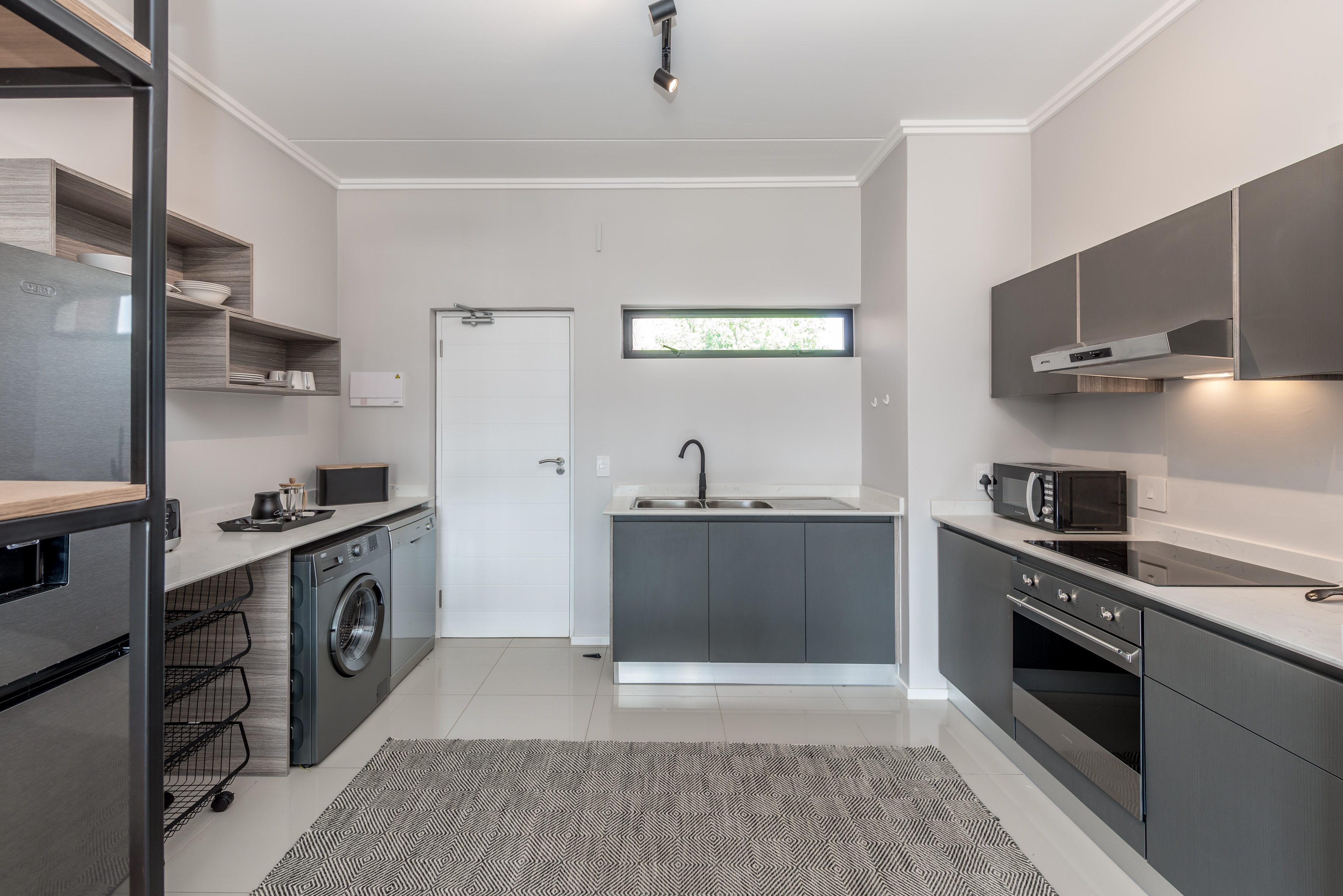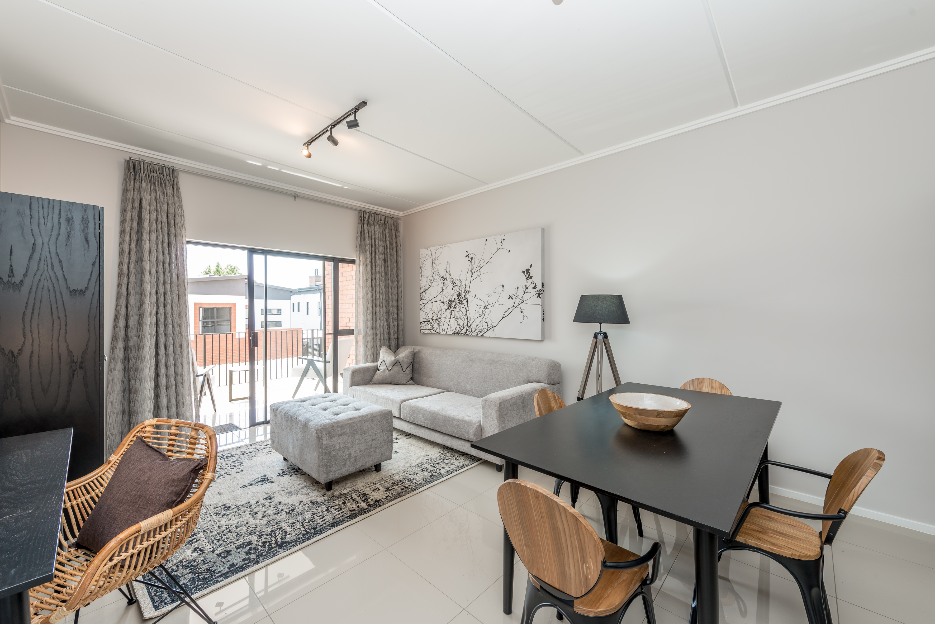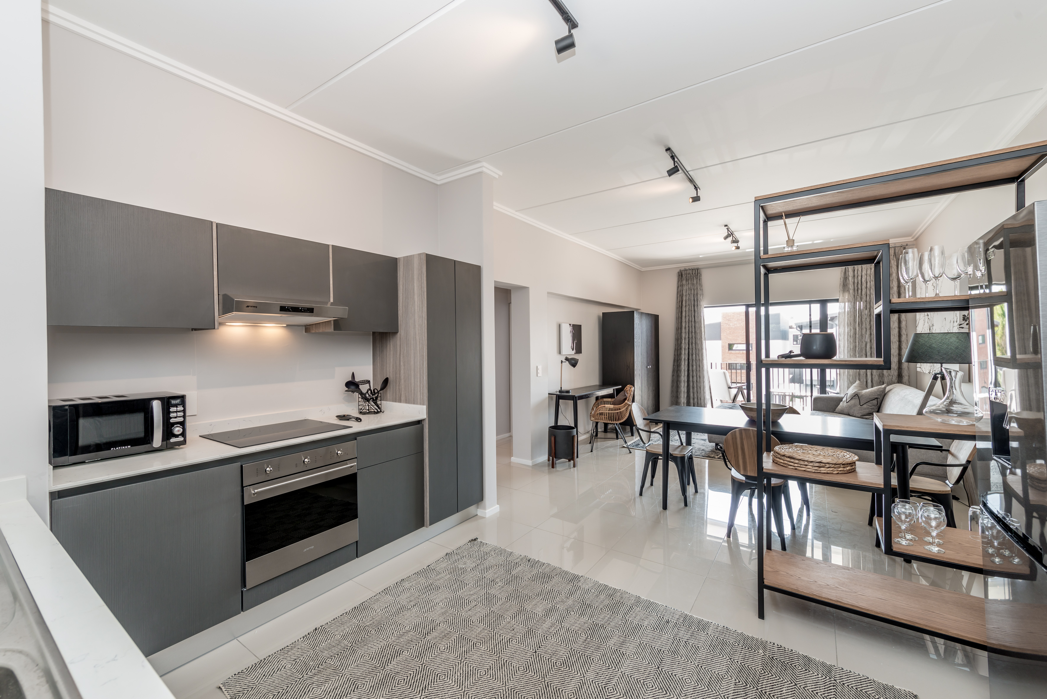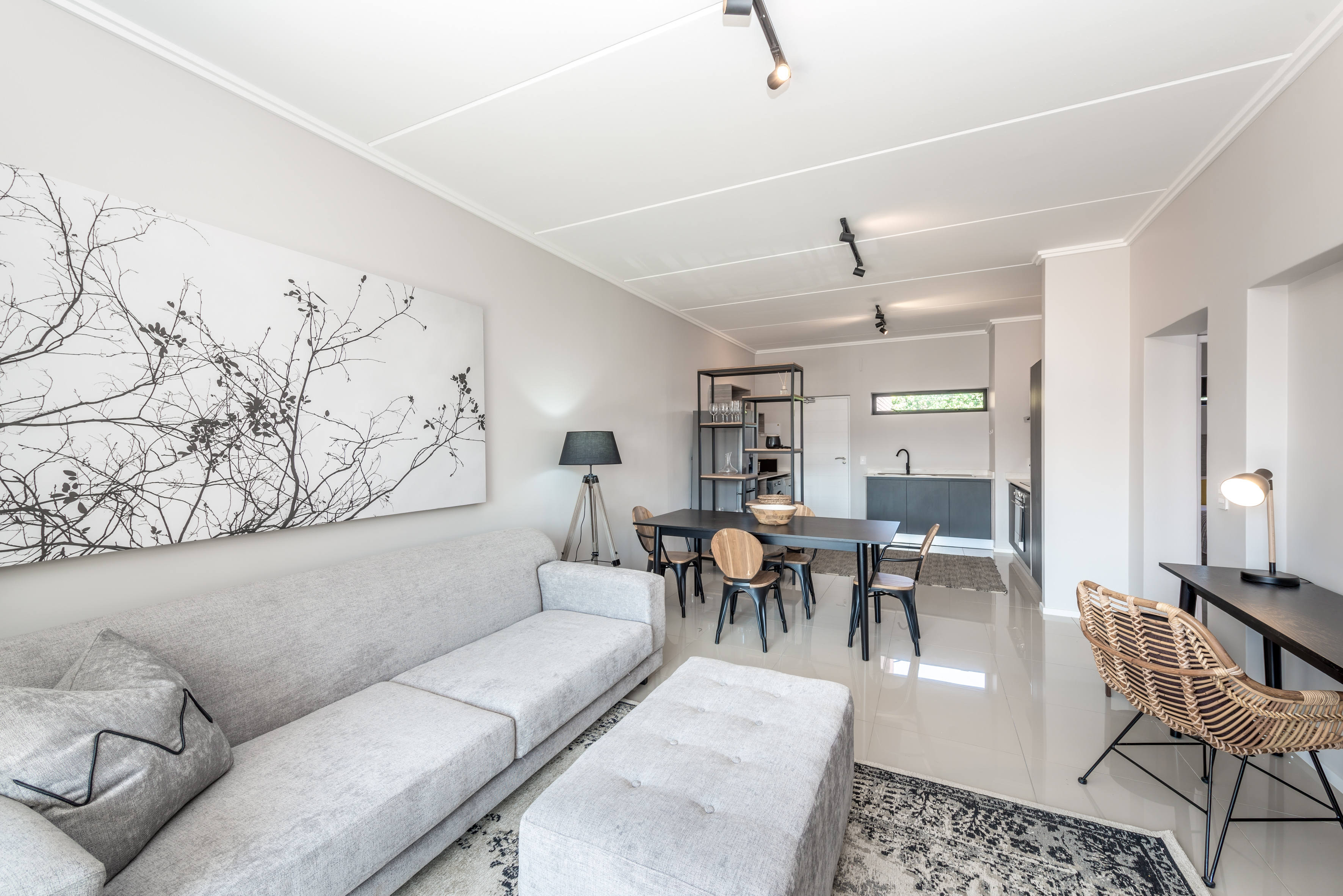 Perfectly styled open-plan living from the front door through to the kitchen,lounge,dining area plus a work station onto anlovely terrace with blinds for privacy.