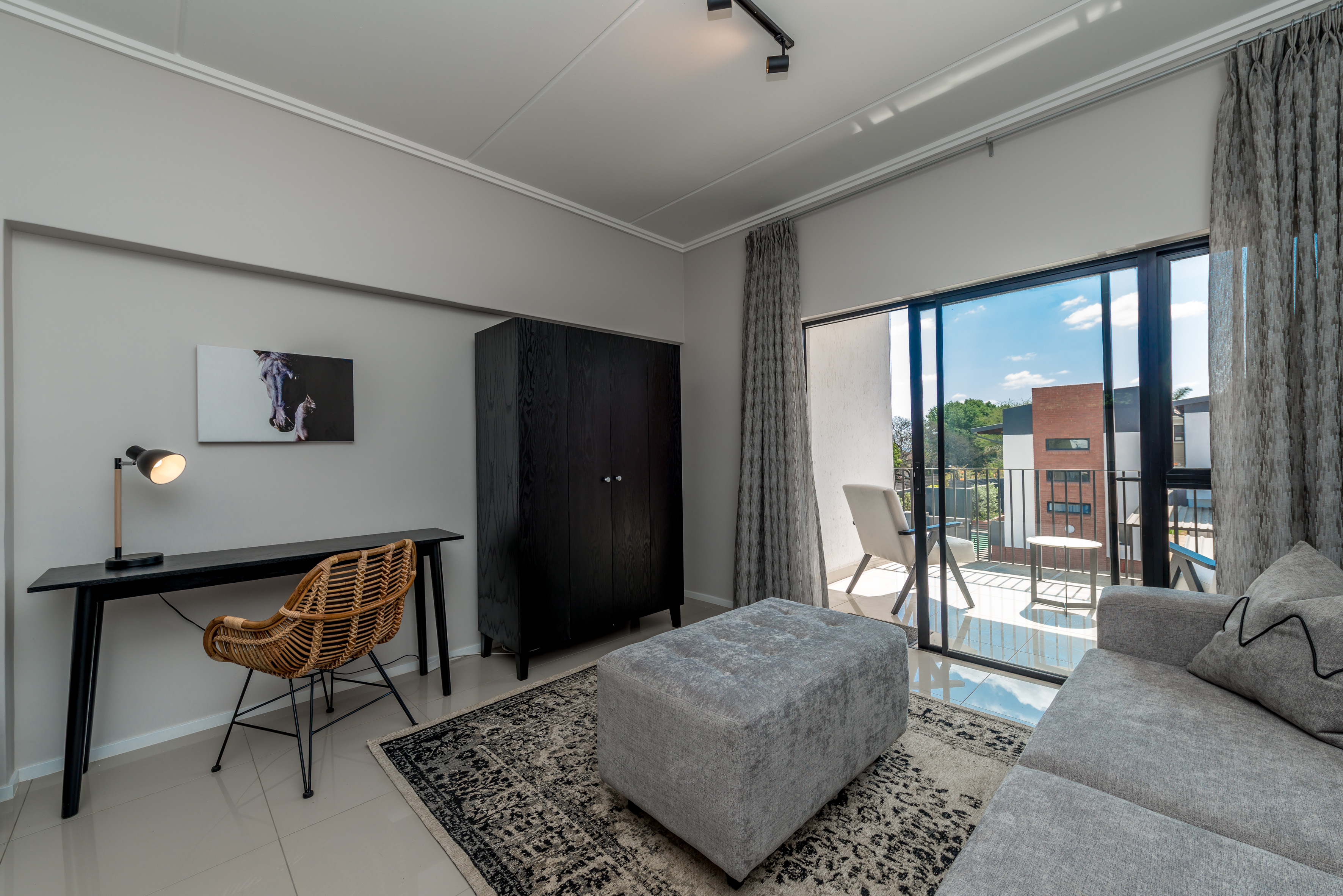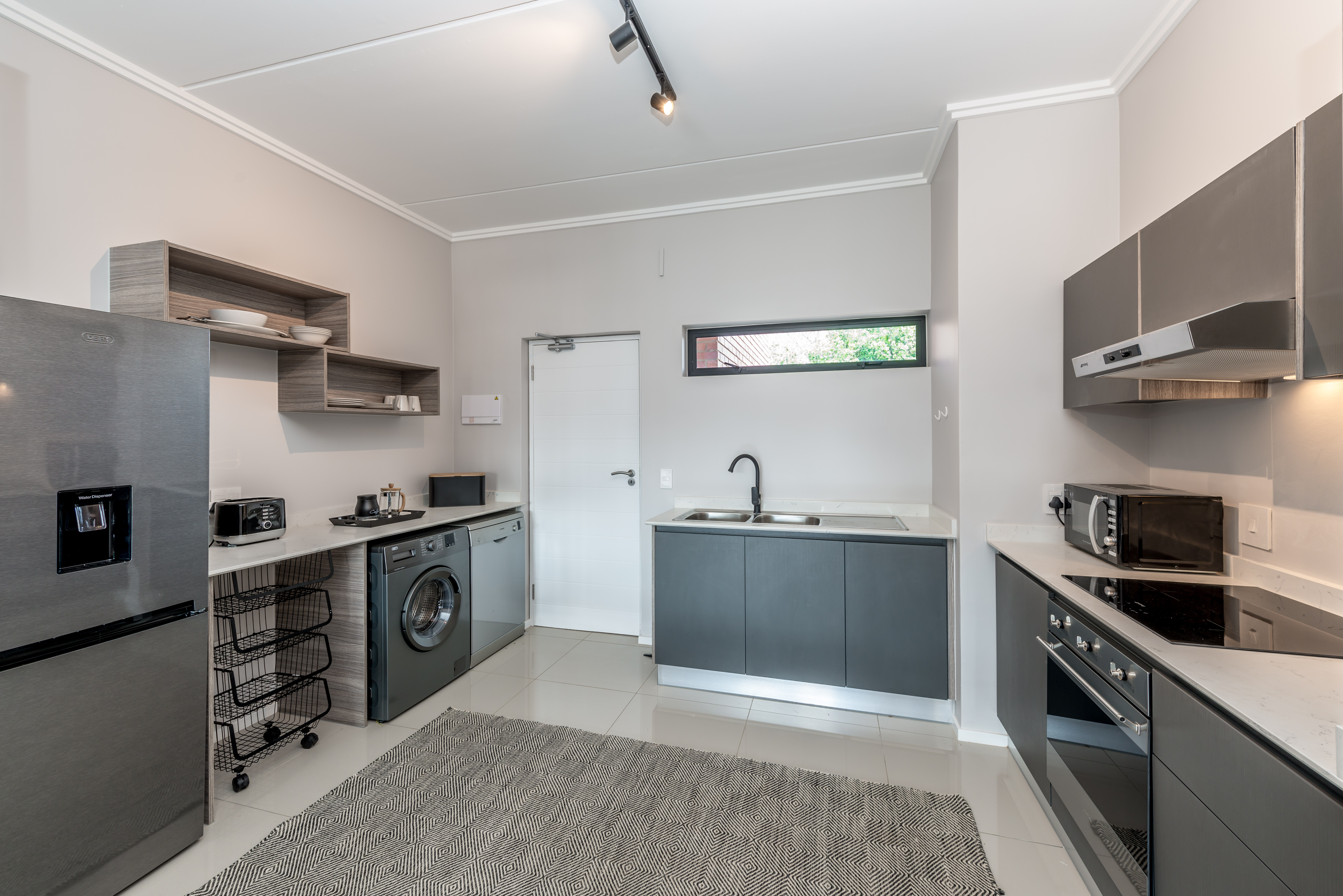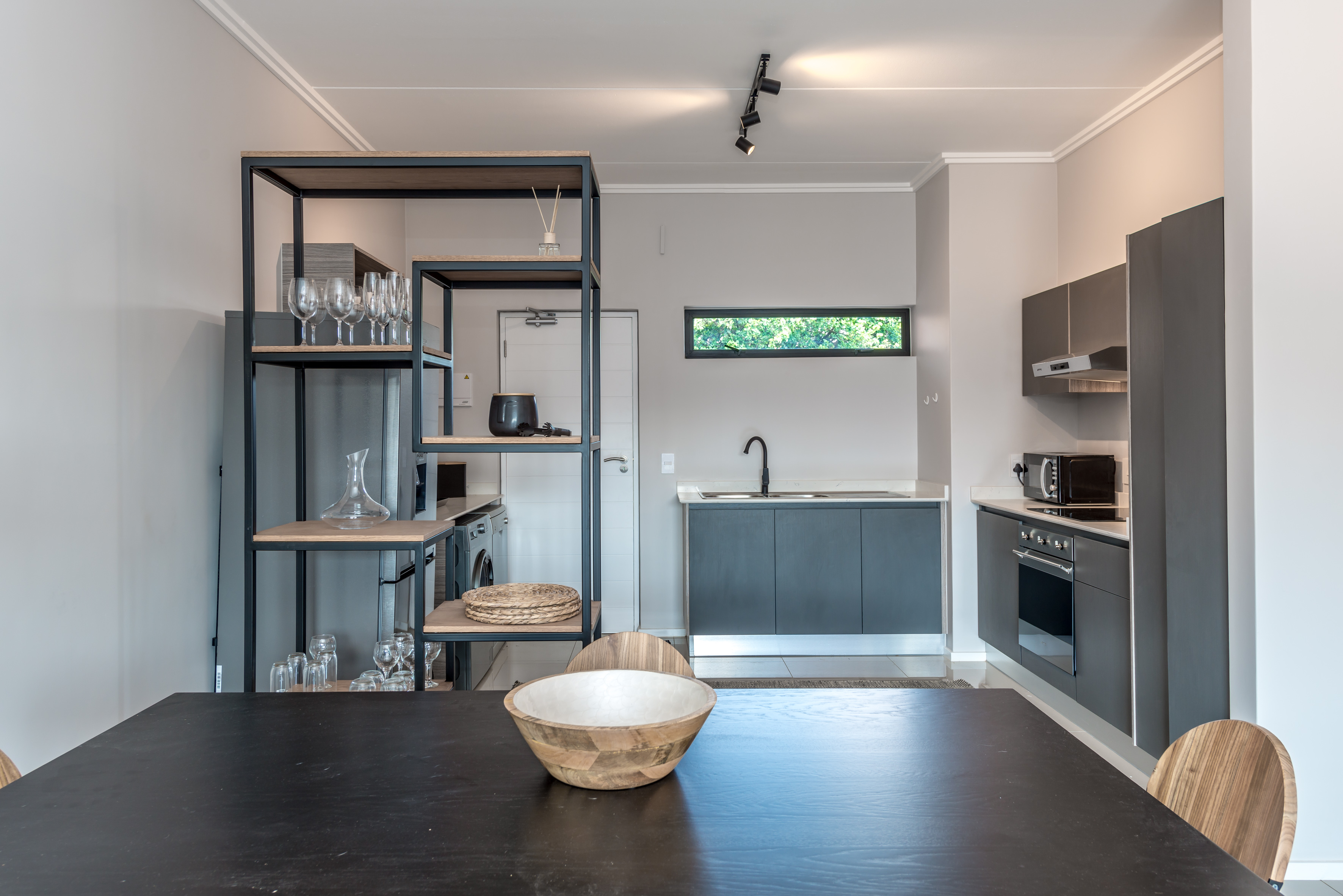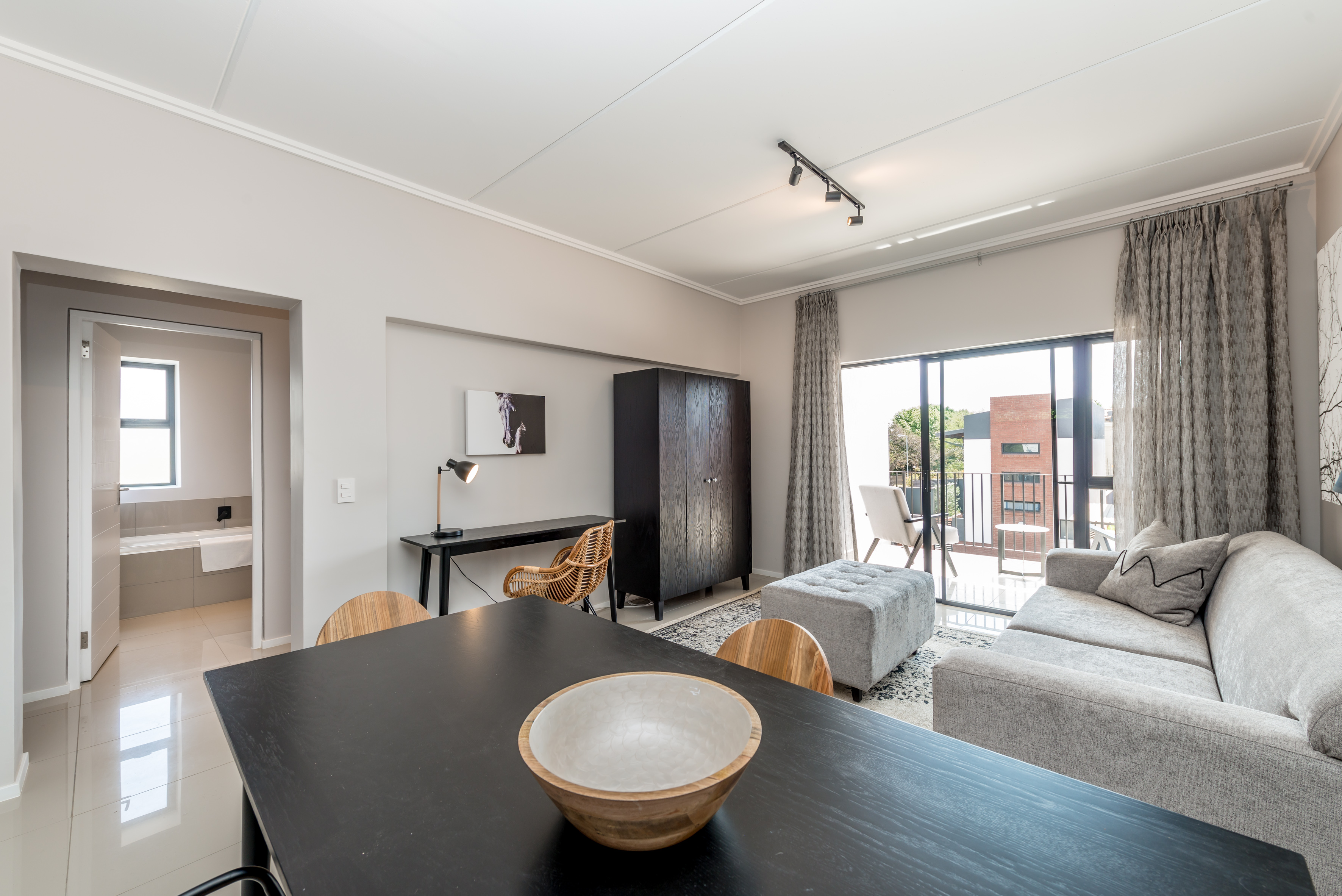 Perfectly styled open-plan living from the front door through to the kitchen,lounge,dining area plus a work station onto anlovely terrace with blinds for privacy.