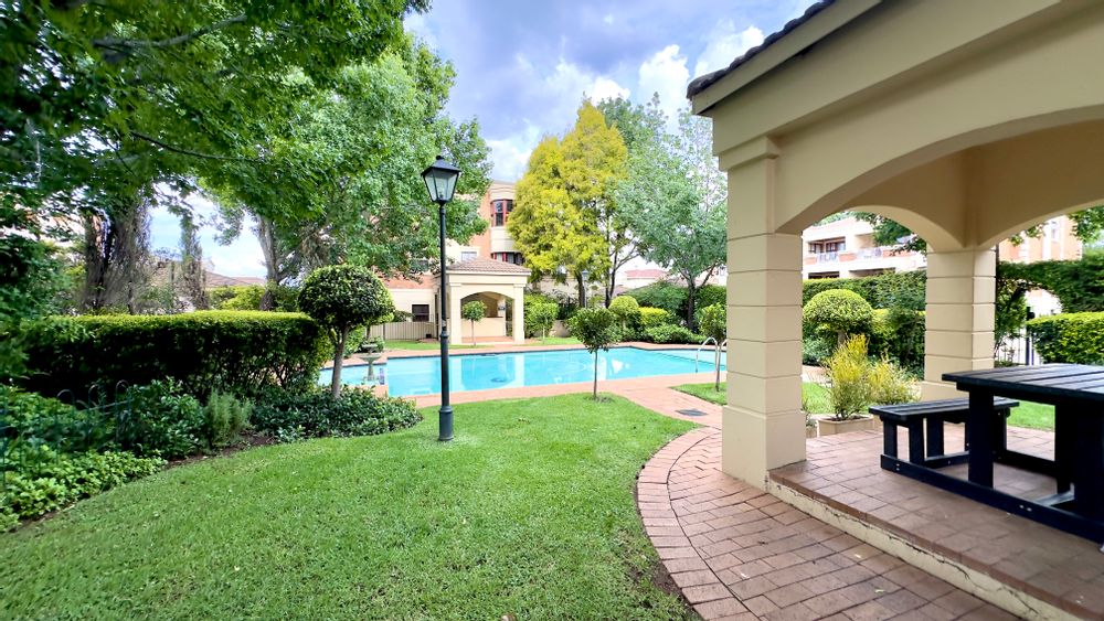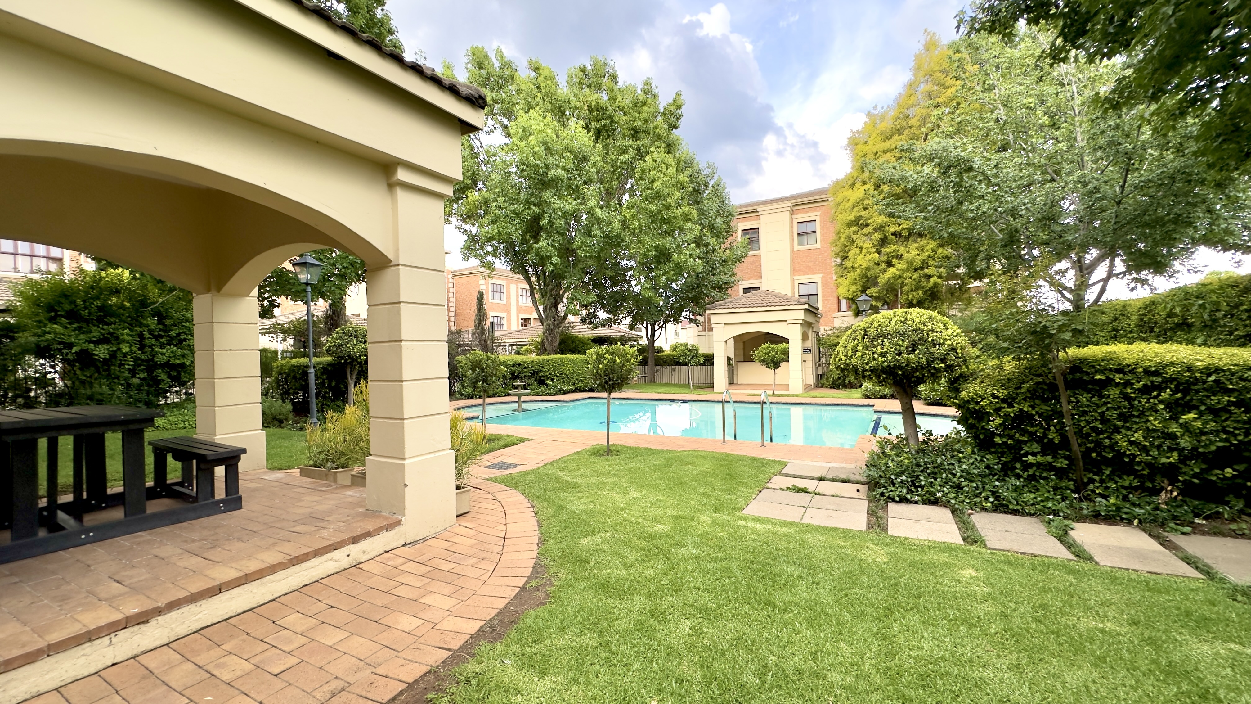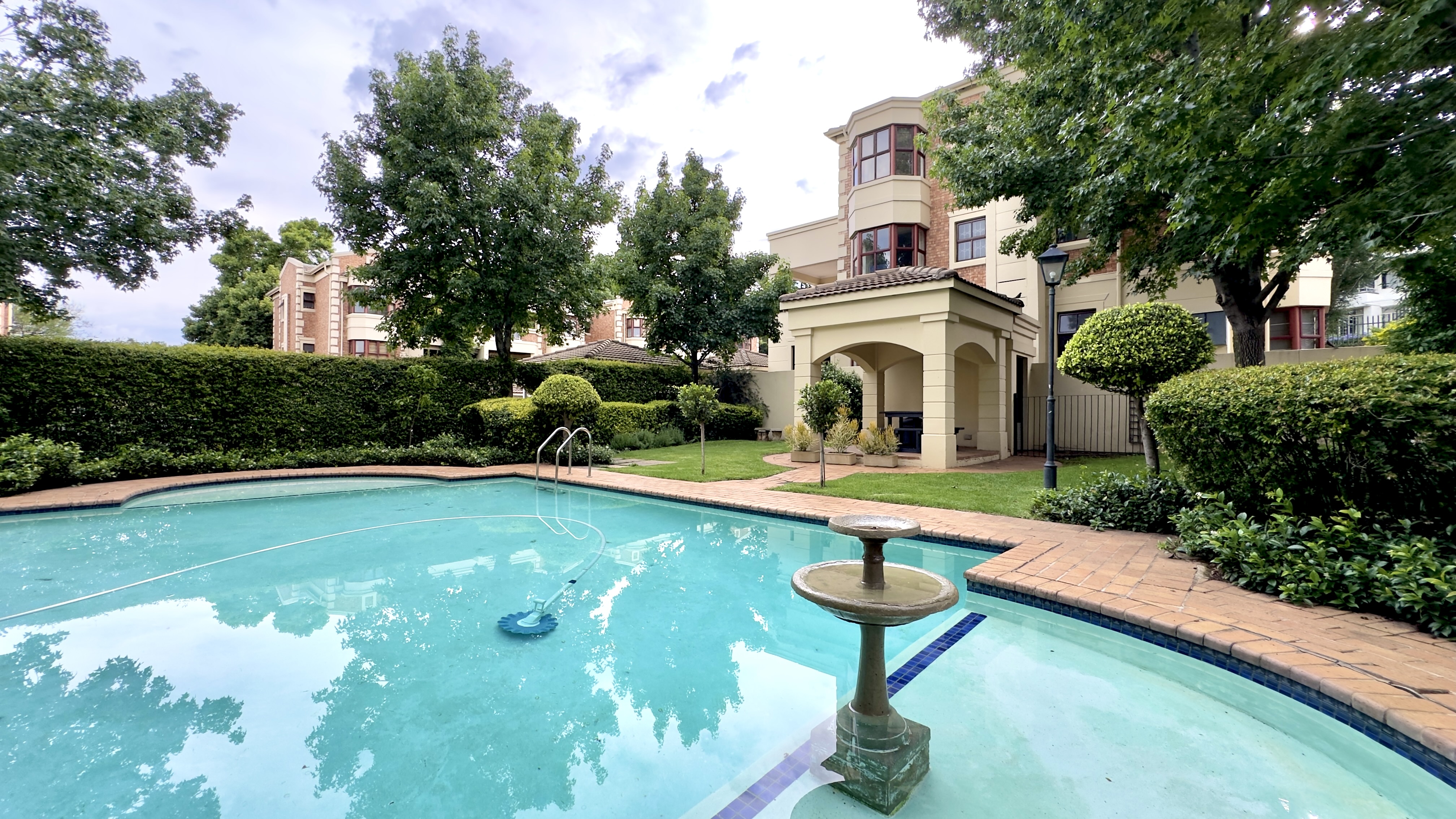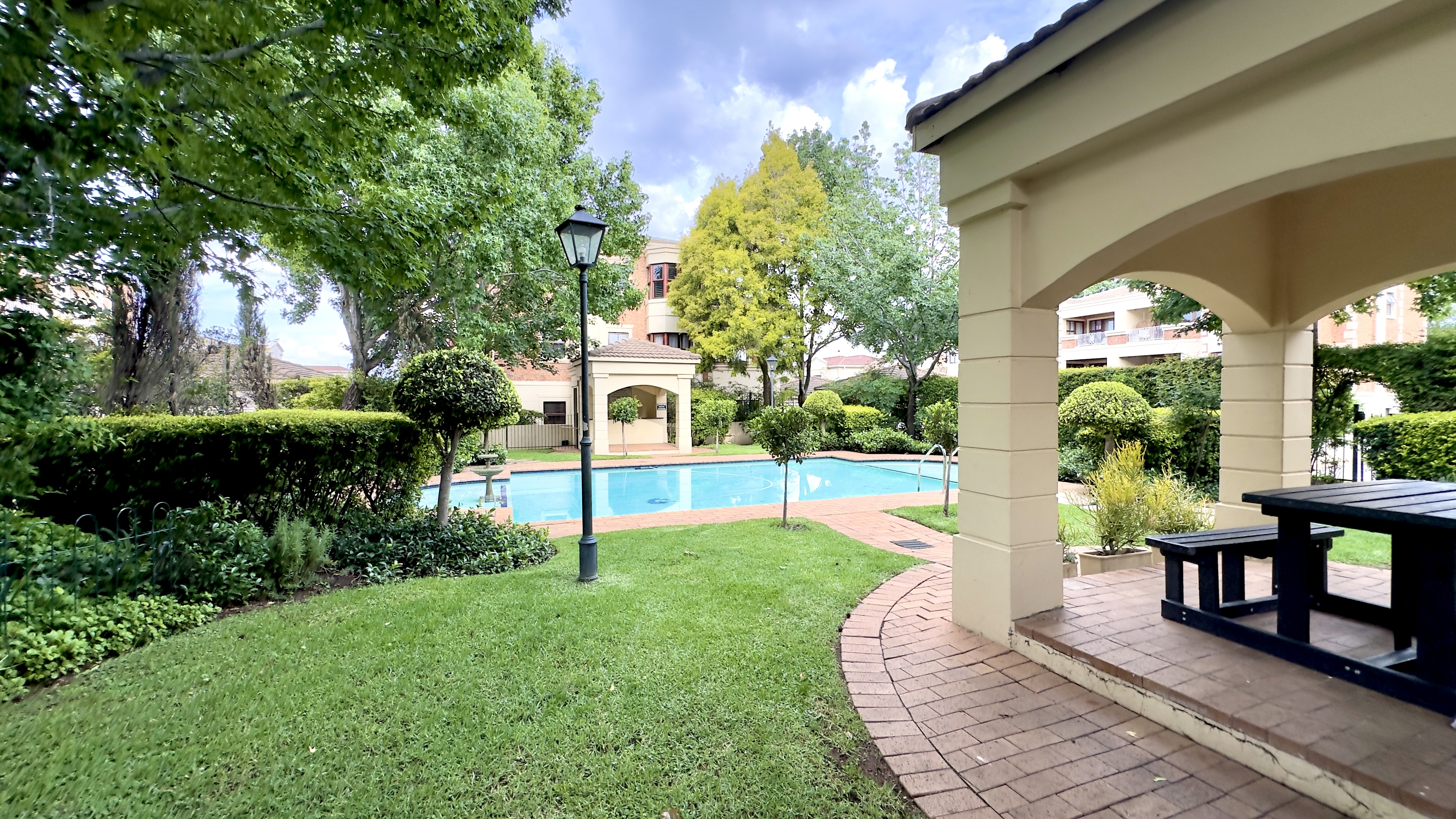 Communal fenced swimming pool & gardens