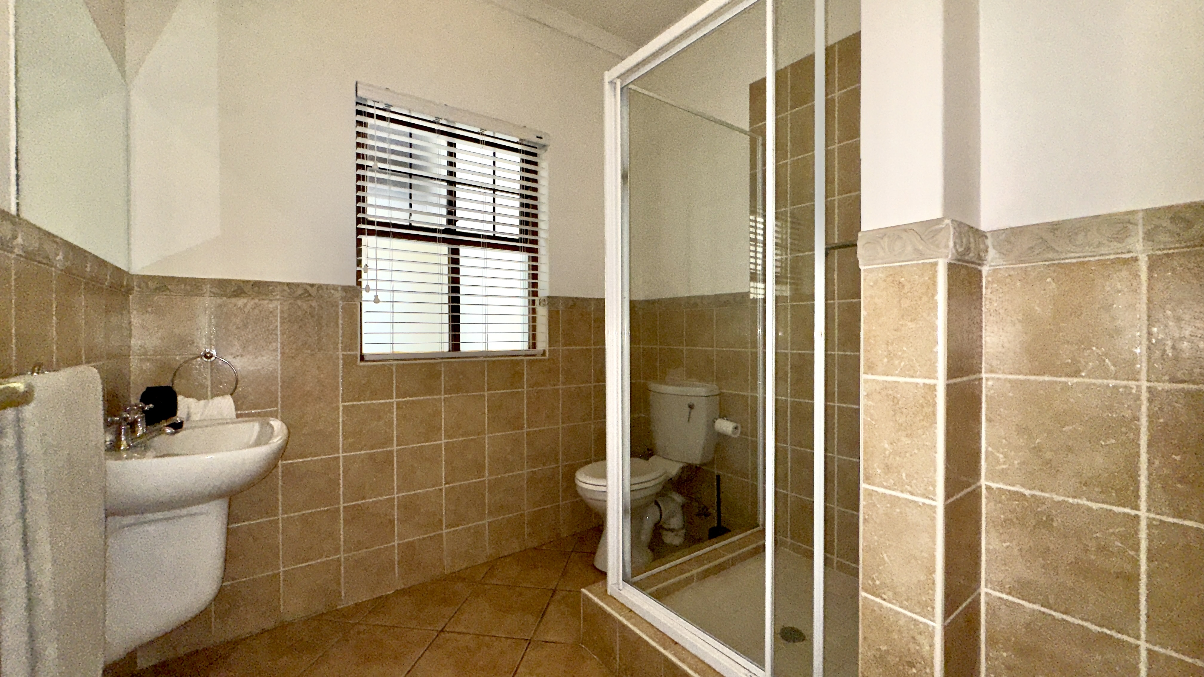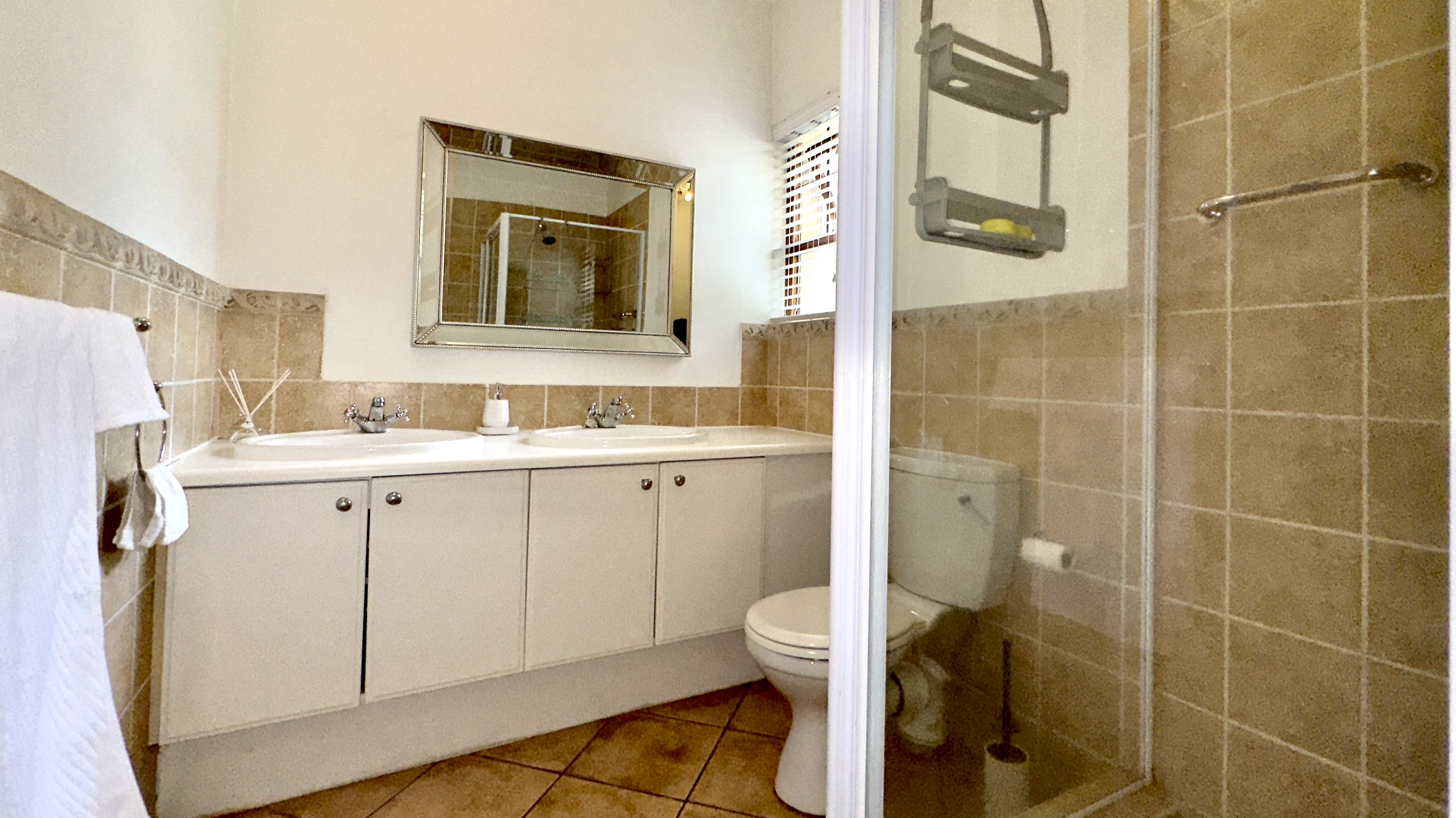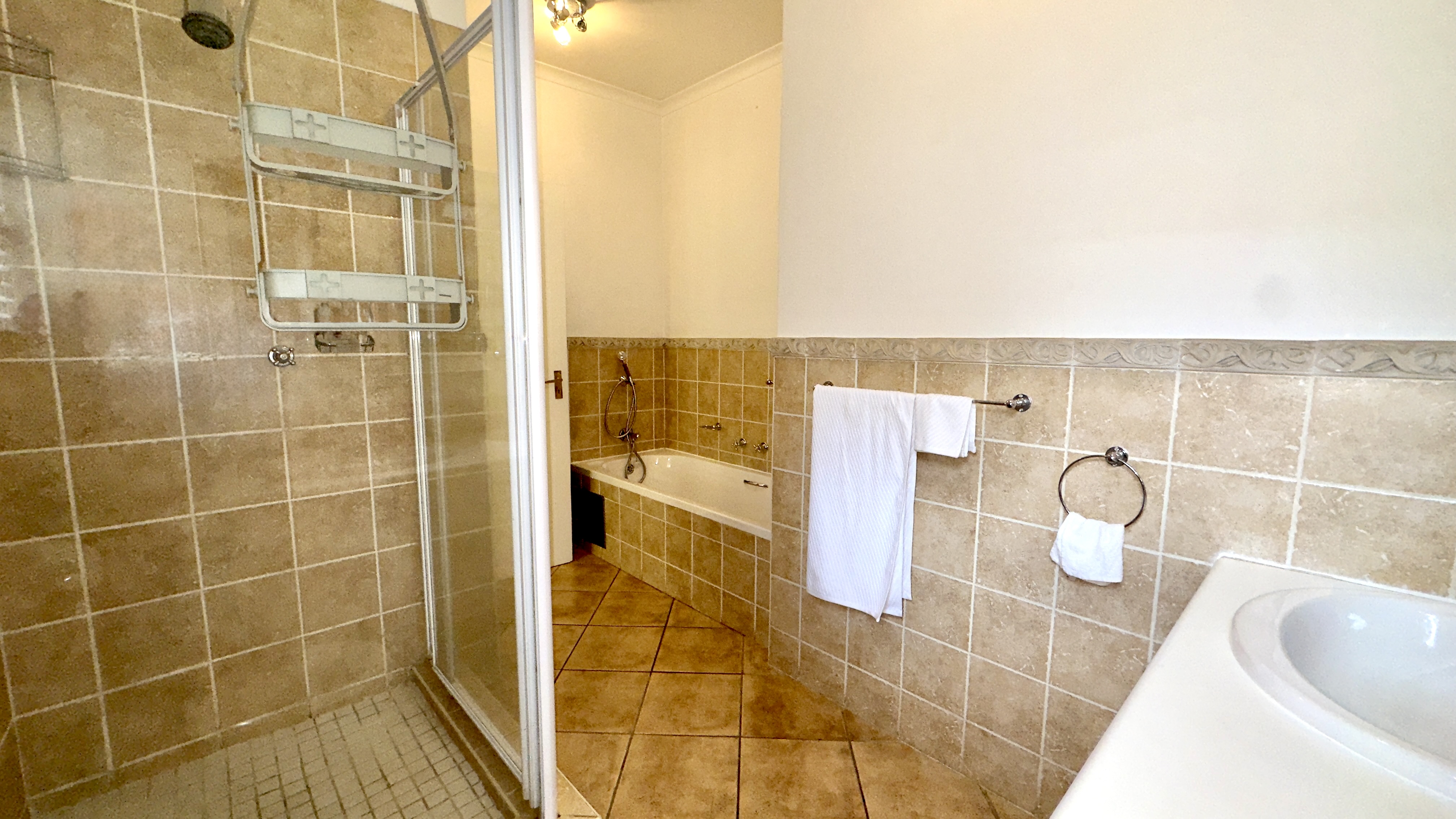 Main Ensuite: Full bathroom (bath + shower) with towels