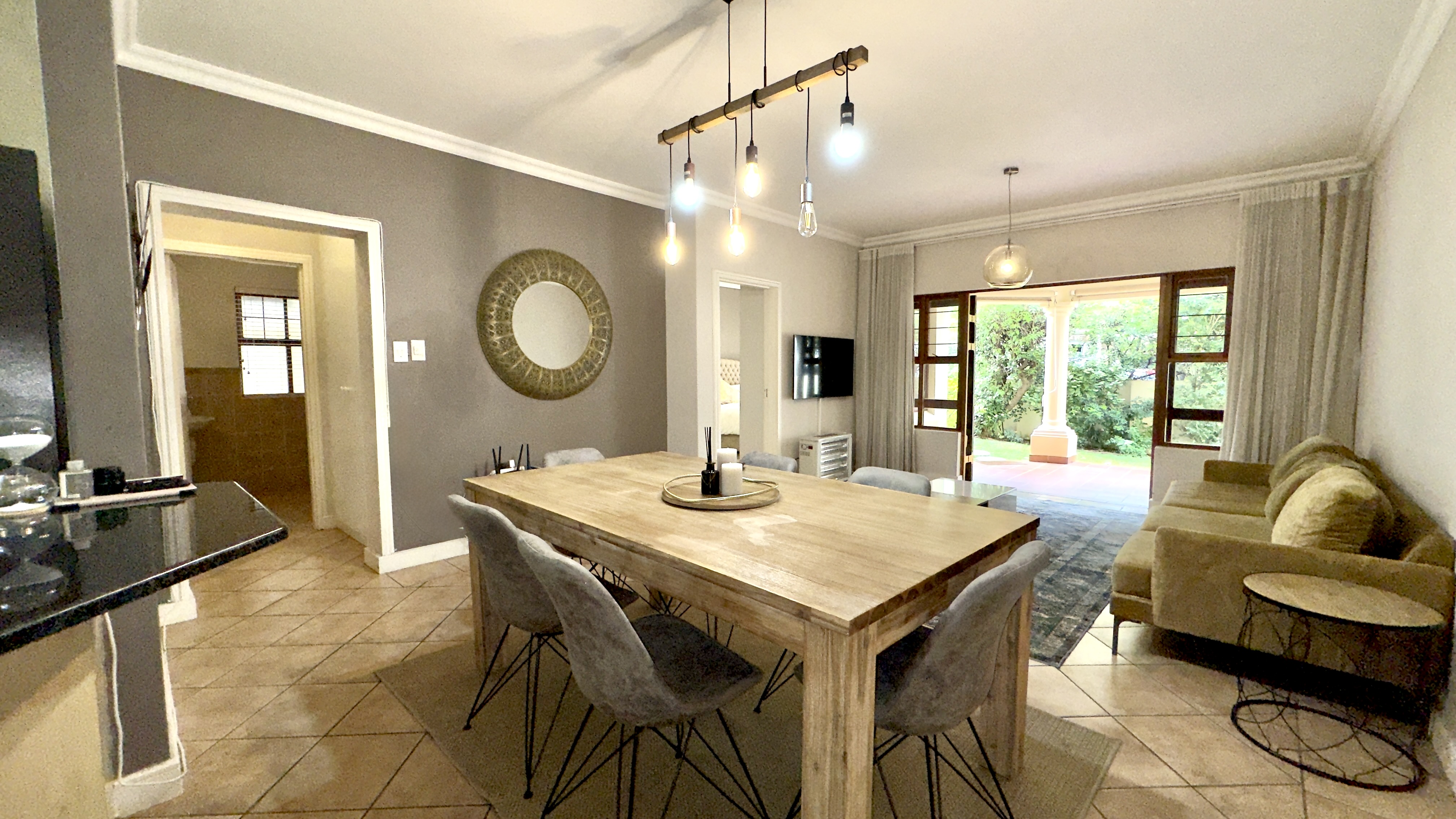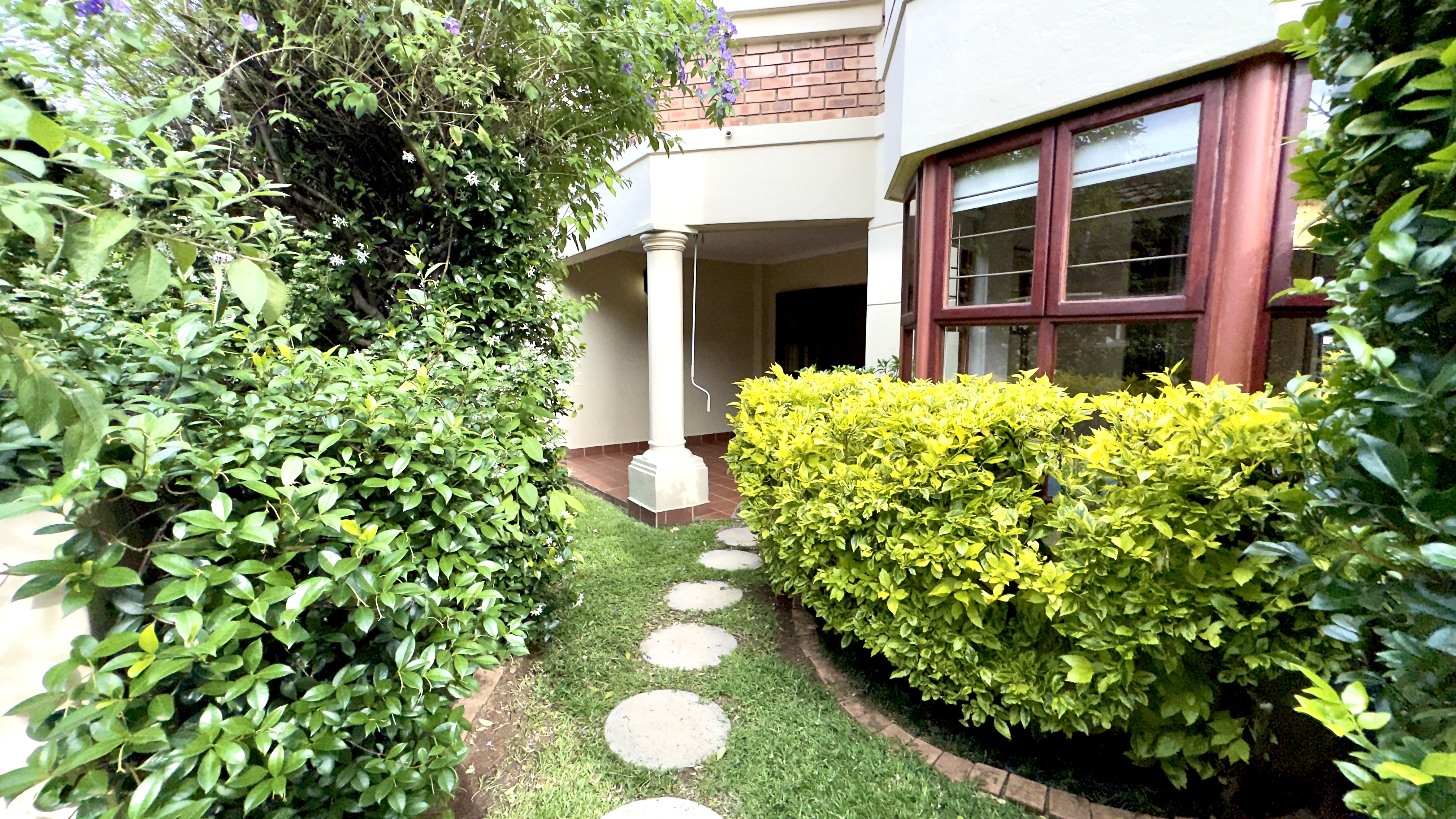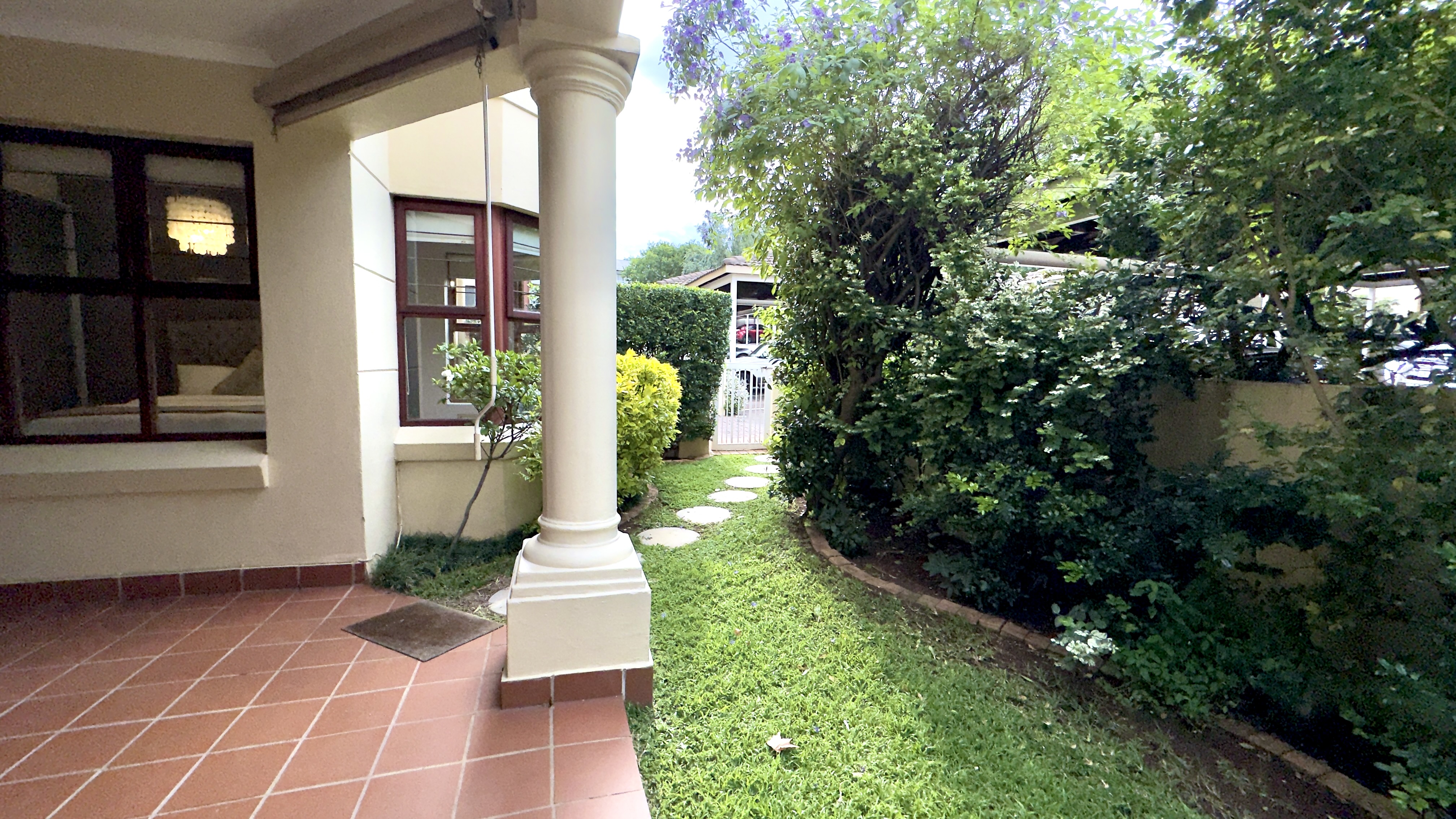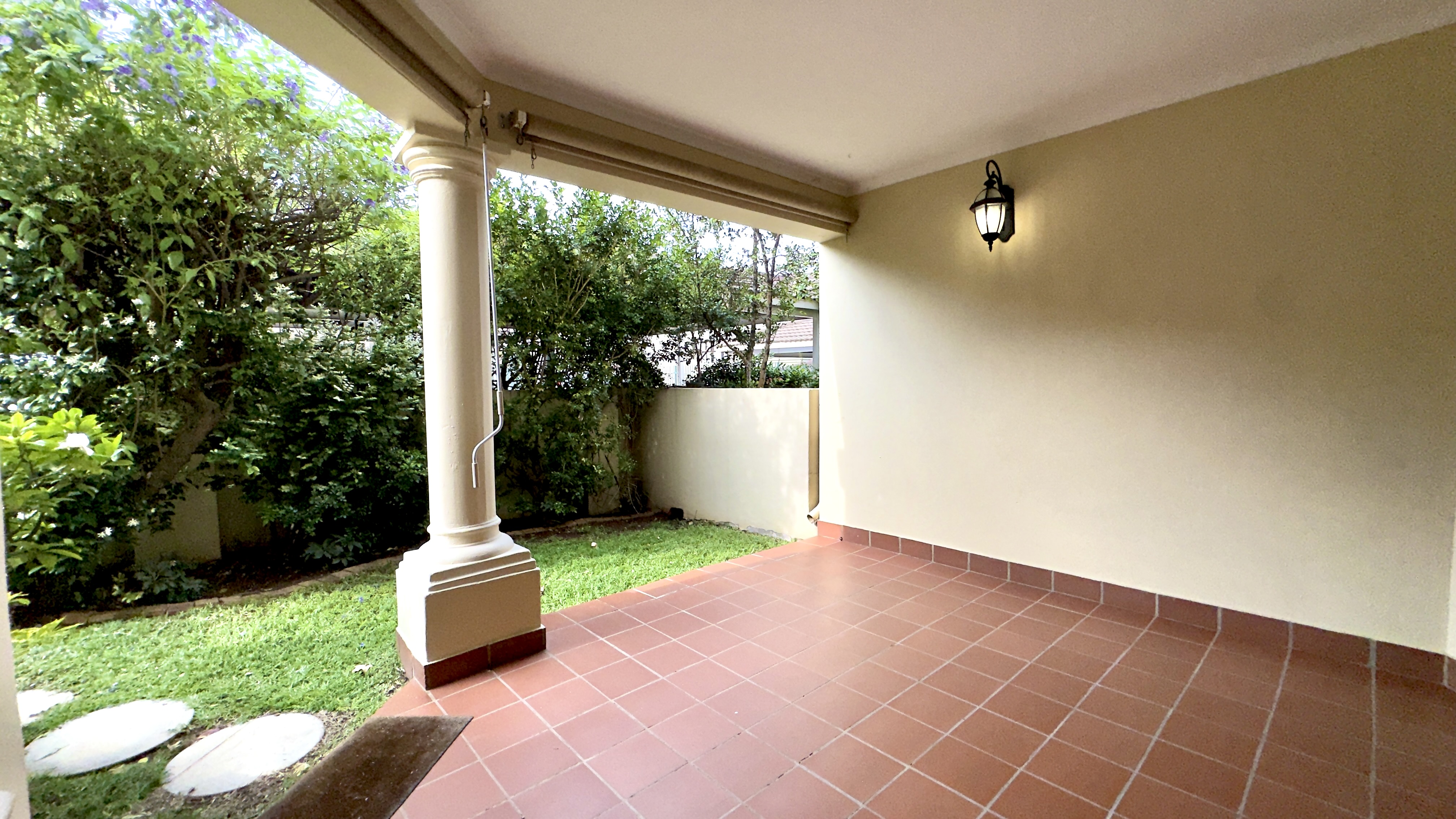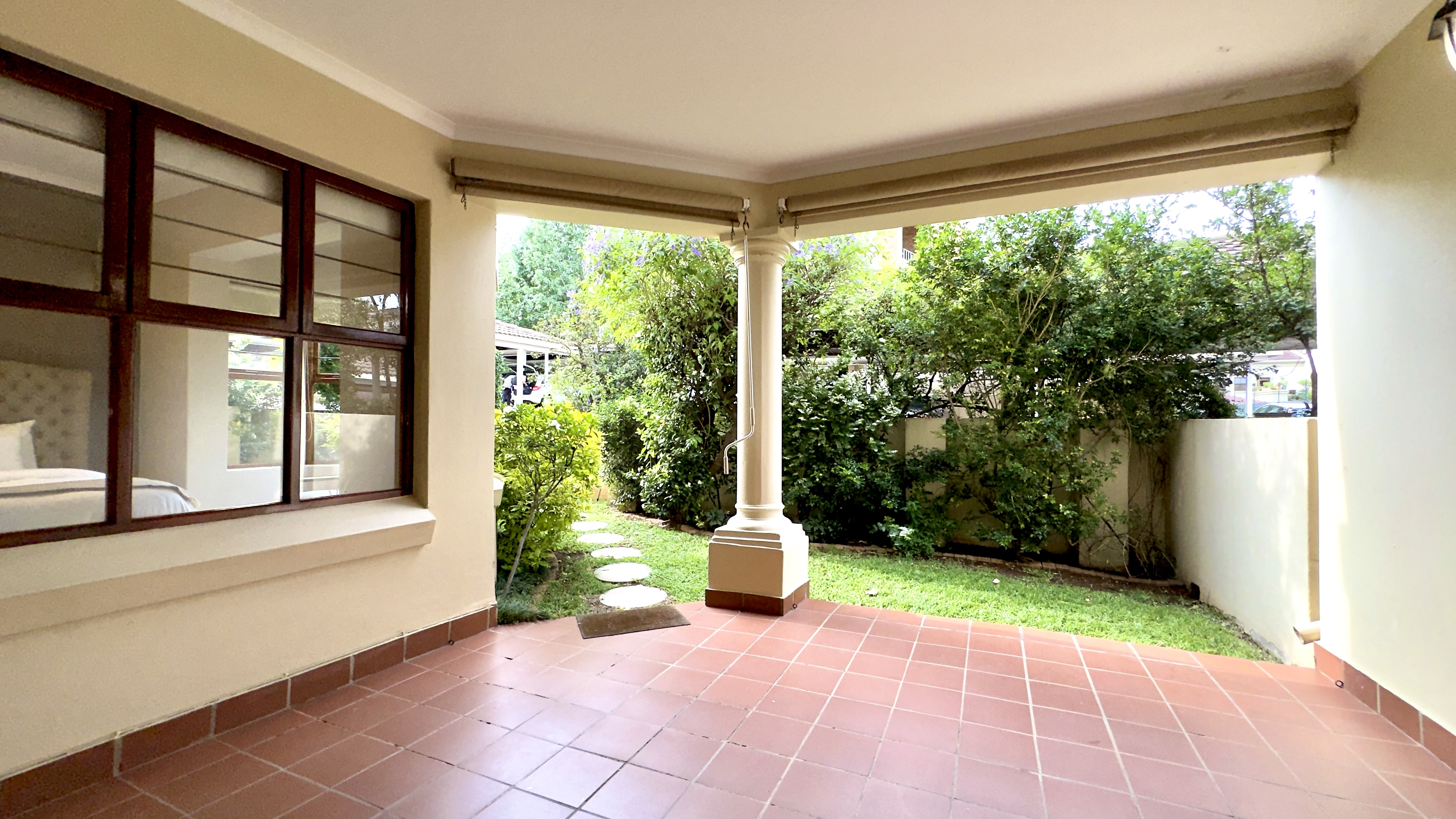 Covered patio leading to garden