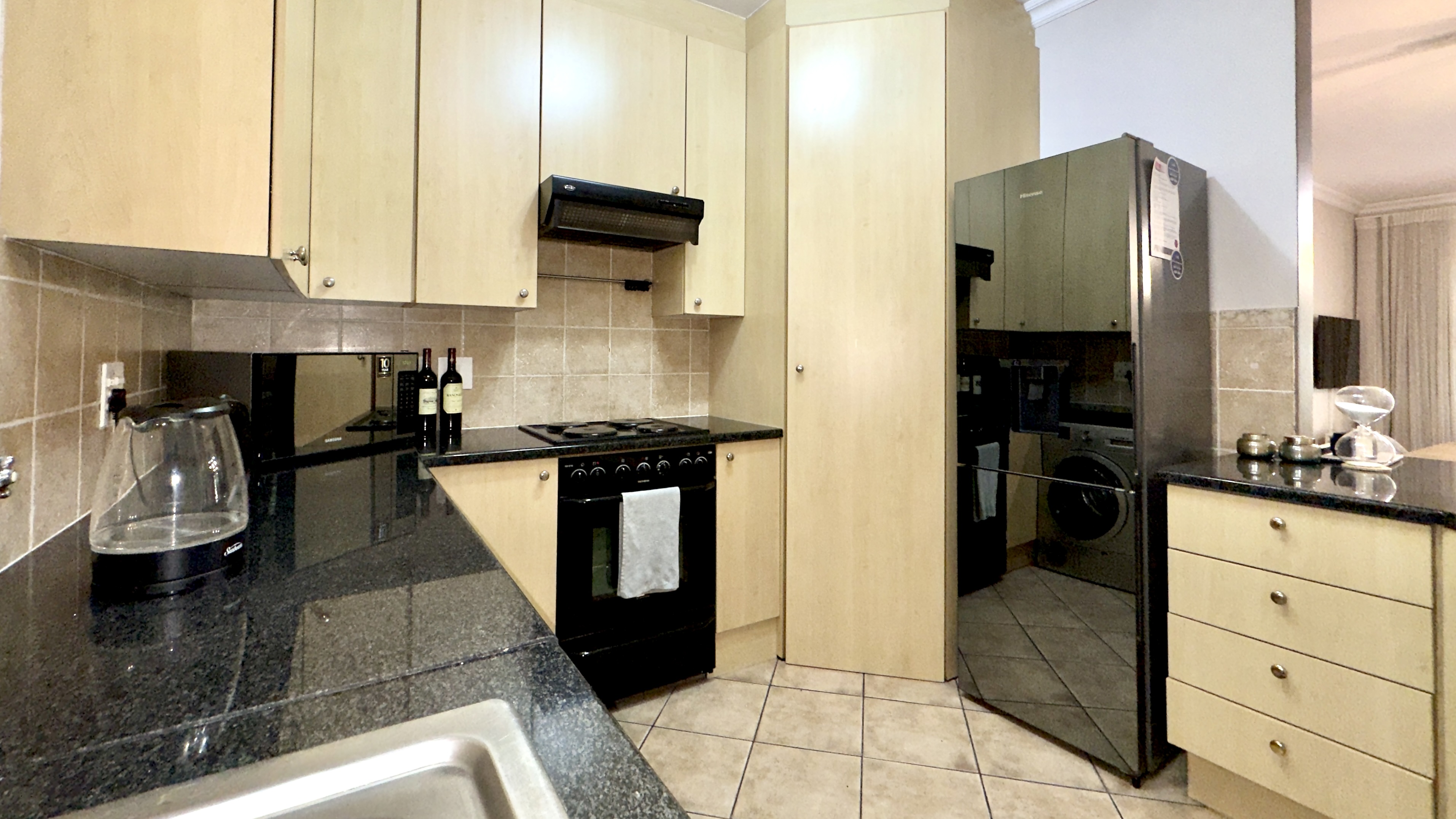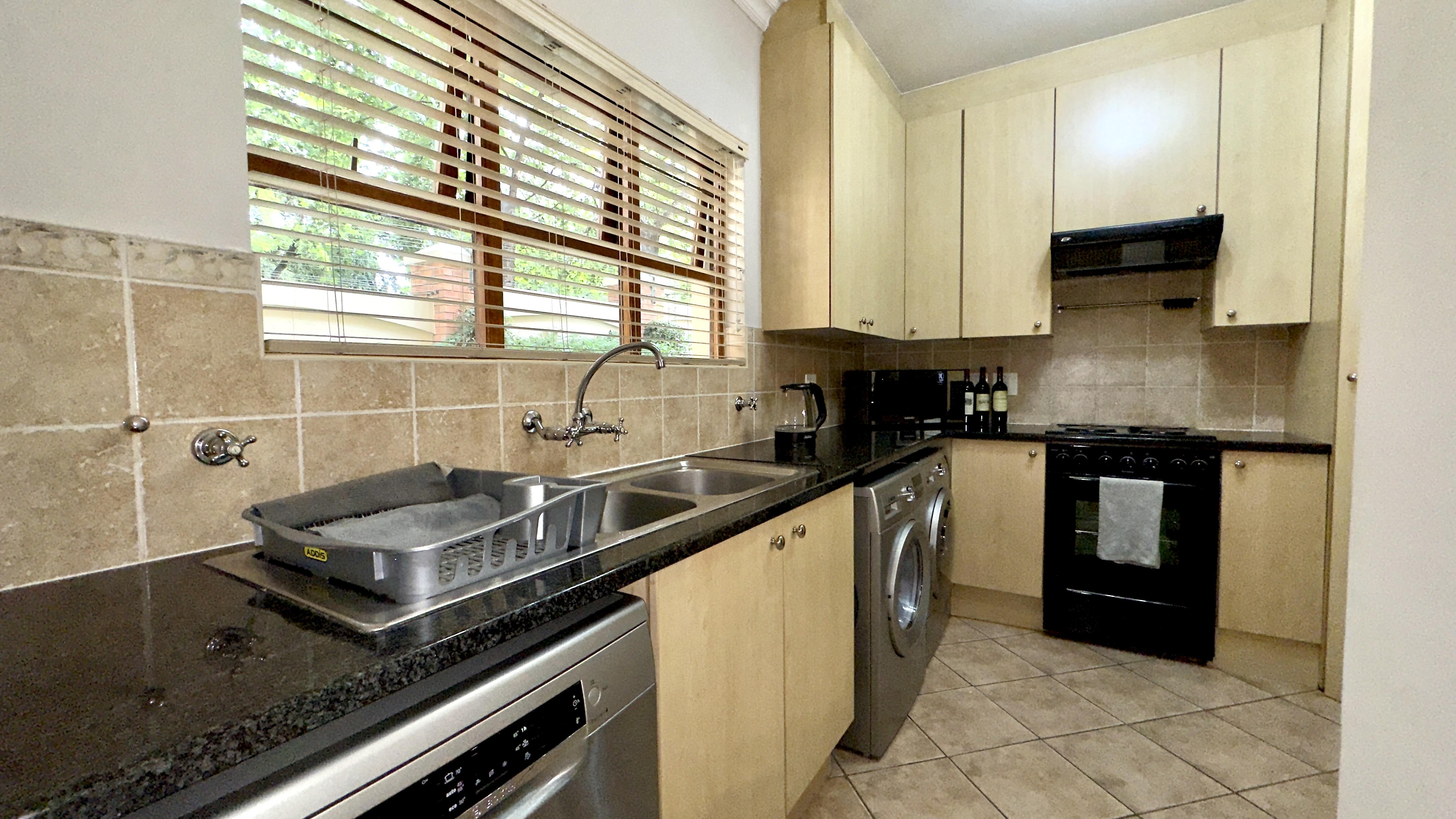 Kitchen fully stocked (crockery, cutlery, pots, pans)