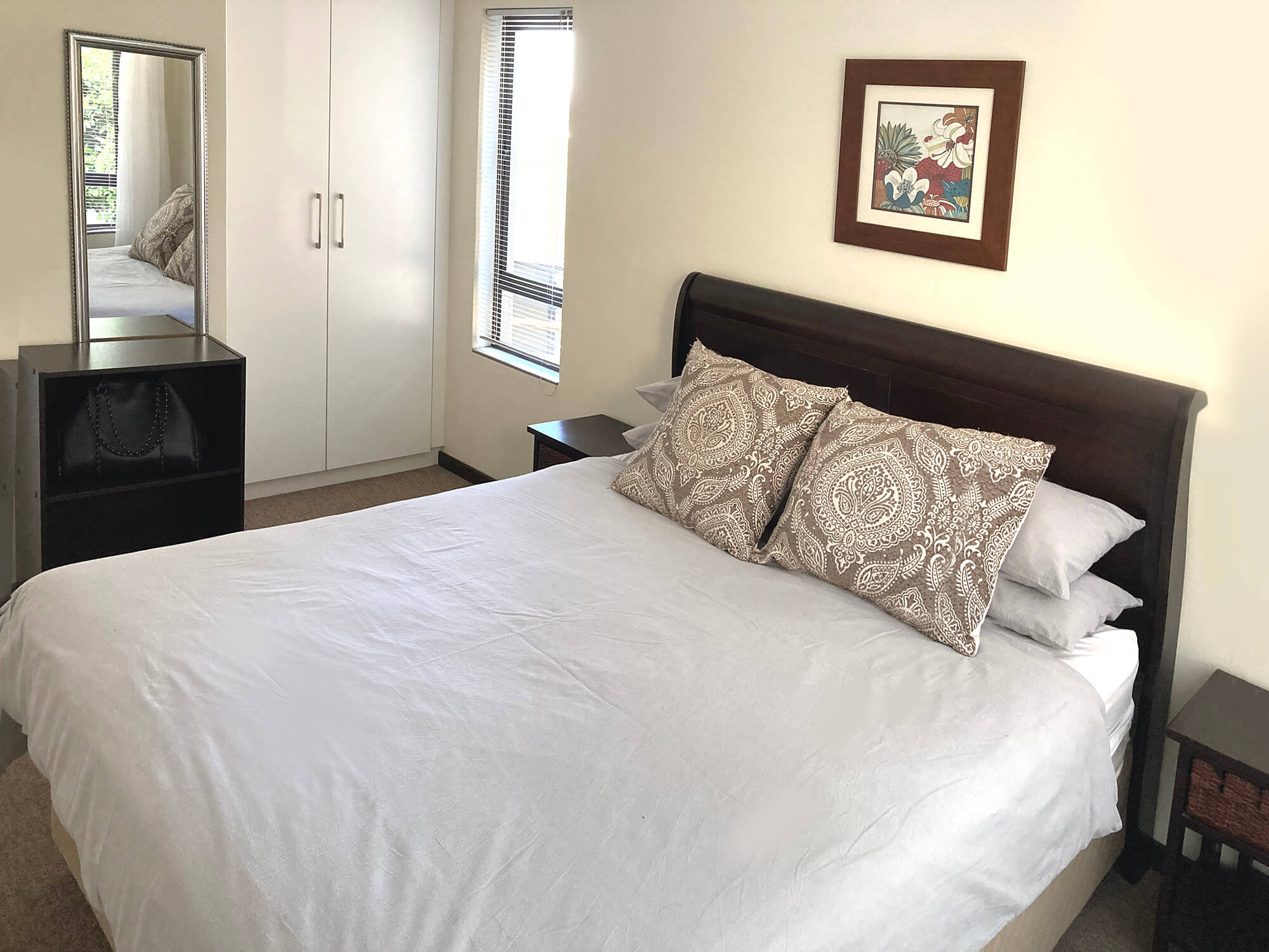 This stunning fully furnished 1 bedroom apartment in the best part of Bryanston, walking distance to Hobart Shopping Centre, minutes to Sandton CBD and major routes. Well kept and maintained complex. offers the following: