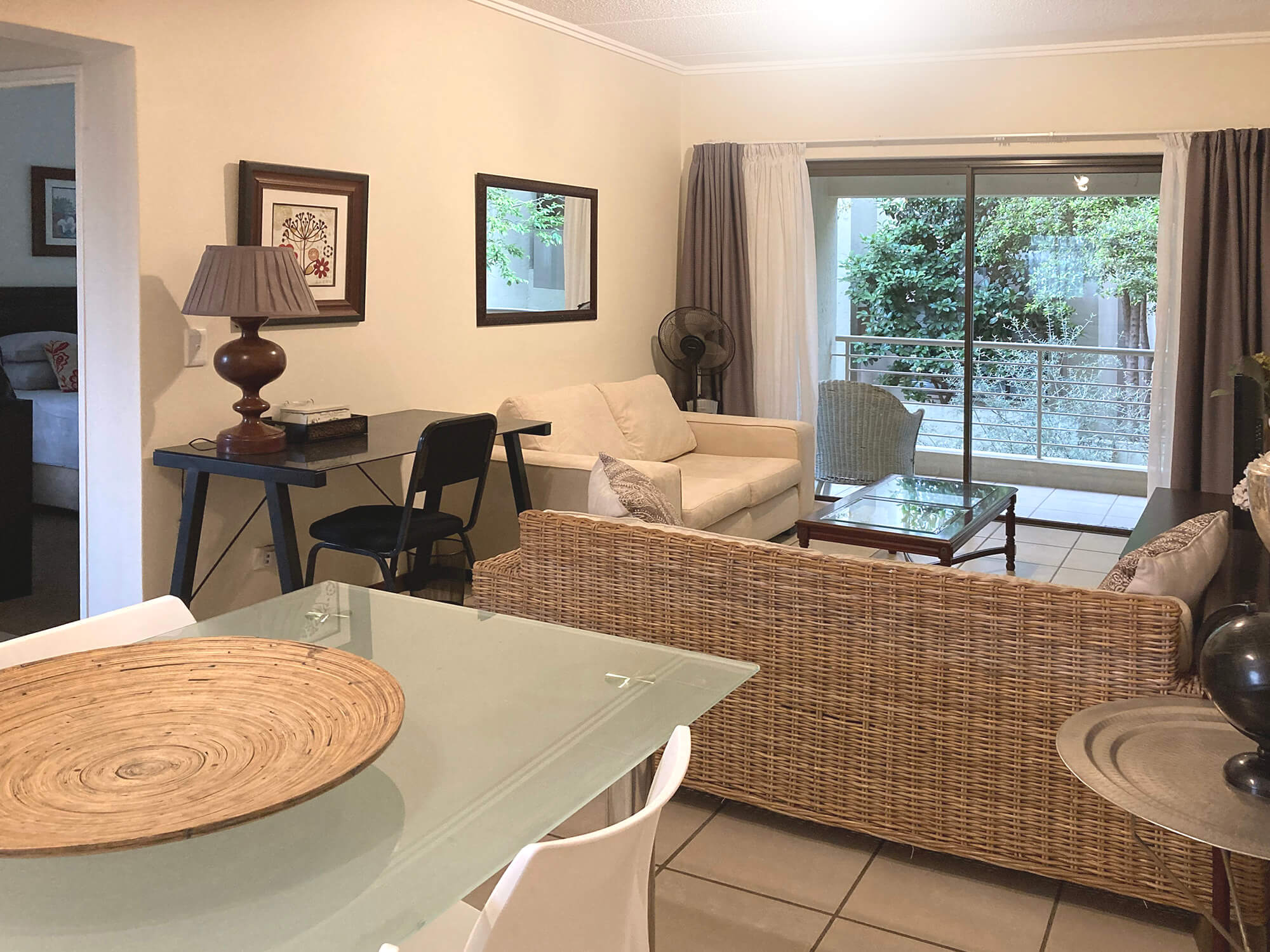 - Lounge area that leads to the balcony
