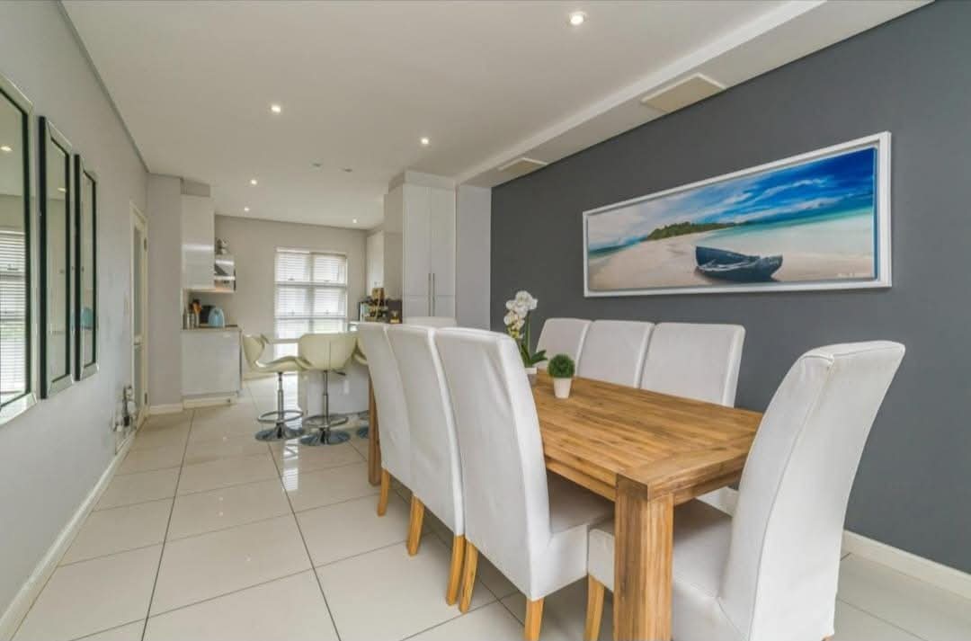 From the moment you step inside, you’re welcomed by an abundance of natural light flowing through the expansive open-plan living and dining areas, creating a warm and inviting atmosphere. The gourmet kitchen takes centre stage, offering sleek modern cabinetry, a gas hob, space for a double-door fridge, room for two under-counter appliances, and a well-positioned breakfast nook that’s perfect for casual meals, morning coffees, or keeping family connected while cooking. Designed for both effortless entertaining and everyday living, the kitchen flows seamlessly into the lounge, which opens out to a private garden sanctuary ideal for weekend braais or tranquil morning coffees.