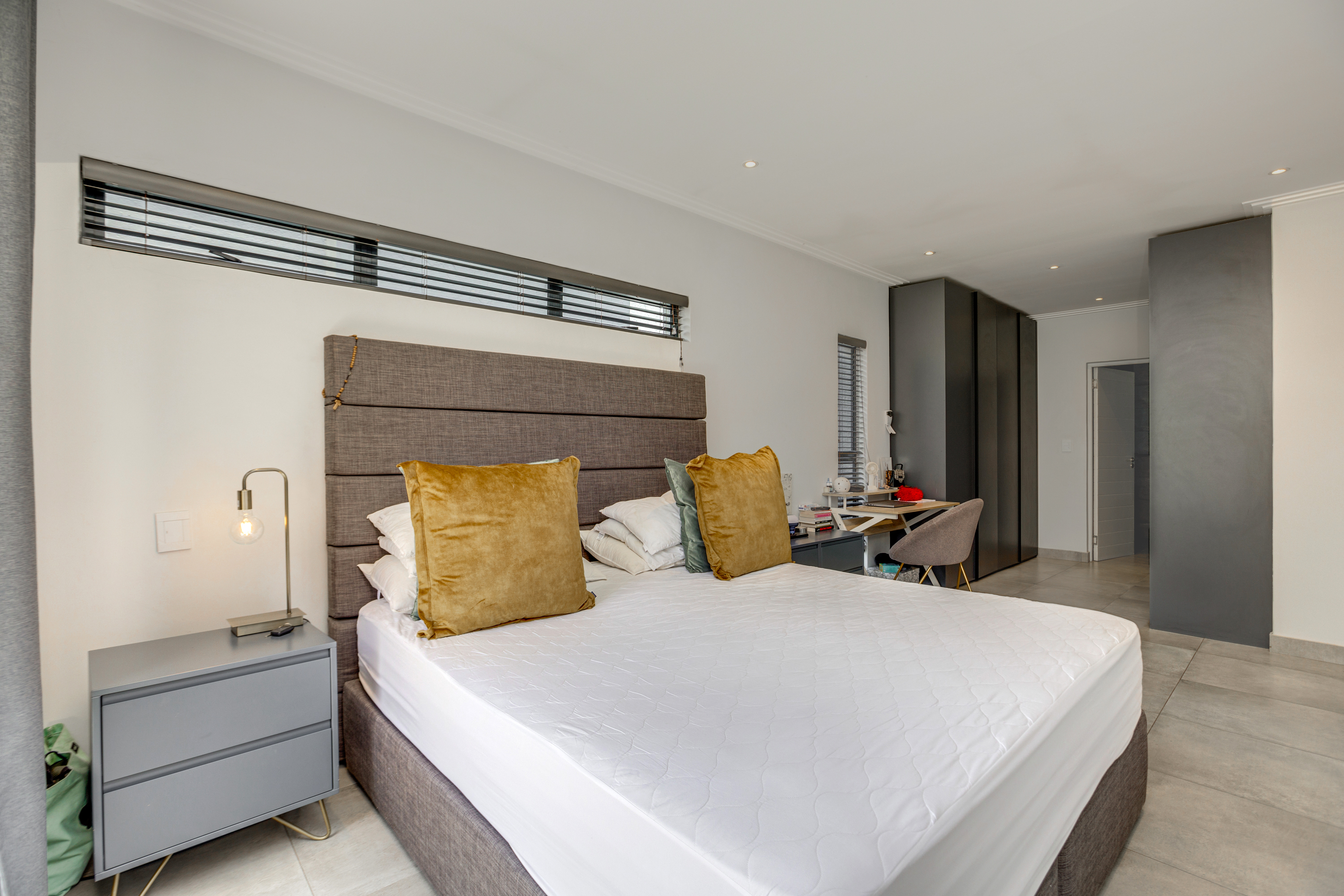 The home features three generously sized bedrooms, each with its own full en-suite bathroom, offering exceptional comfort and privacy. The main suite is a luxurious retreat with walk-in wardrobes and a beautifully finished full bathroom. All three bedrooms open onto private balconies, allowing for an abundance of natural light and a seamless connection to the outdoors. Upstairs, a stylish pyjama lounge provides an additional, relaxed living space—ideal for family downtime, a TV room, or a private retreat.