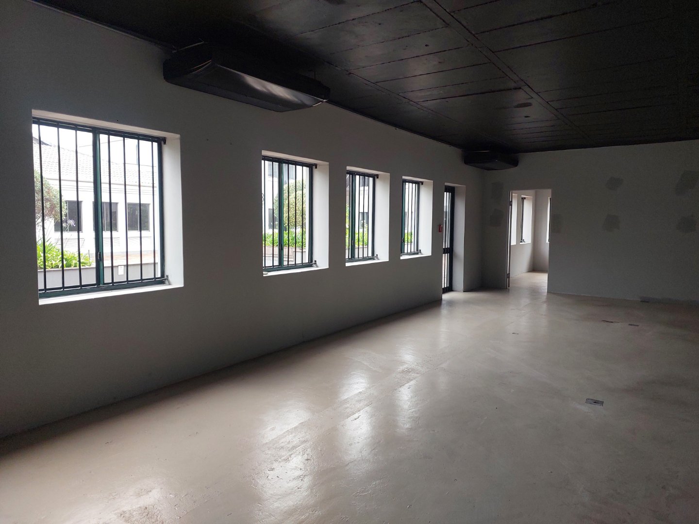 The office itself is light and bright, with large windows overlooking a beautifully maintained courtyard featuring attractive plant displays. The layout includes a spacious open-plan area along with a private office or meeting room, complete with its own kitchenette. This versatile space can be customised to suit your specific business requirements.