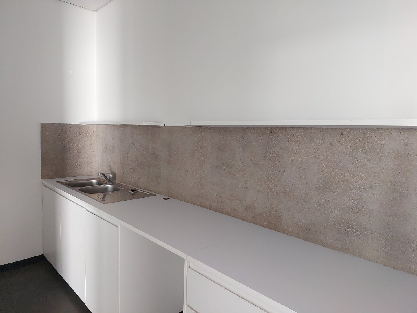 A modern, A-grade fitted office suite ideal for a small business that values a professional yet social workspace. The suite includes a bar area and outdoor patio, perfect for client entertainment or team functions.