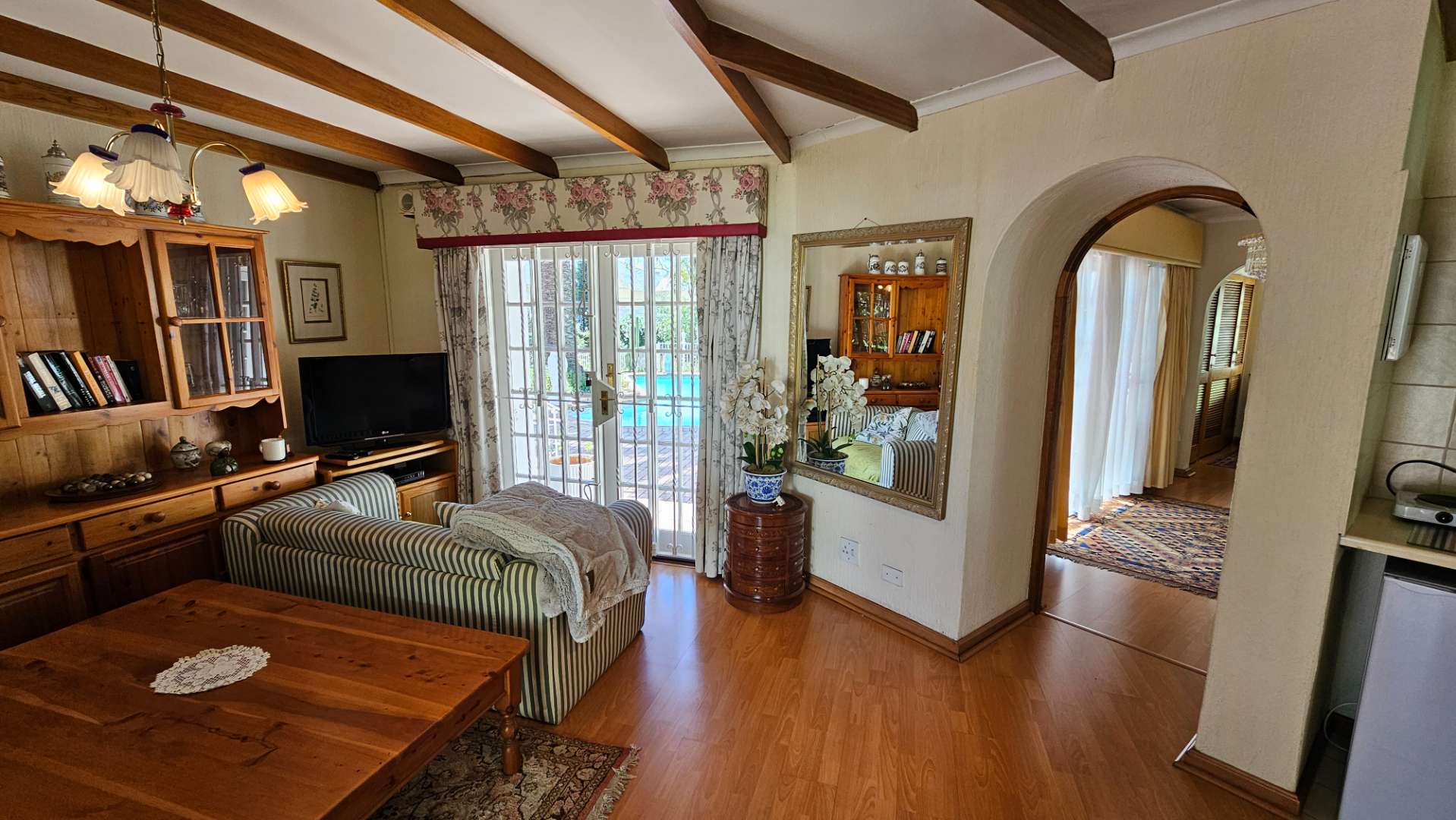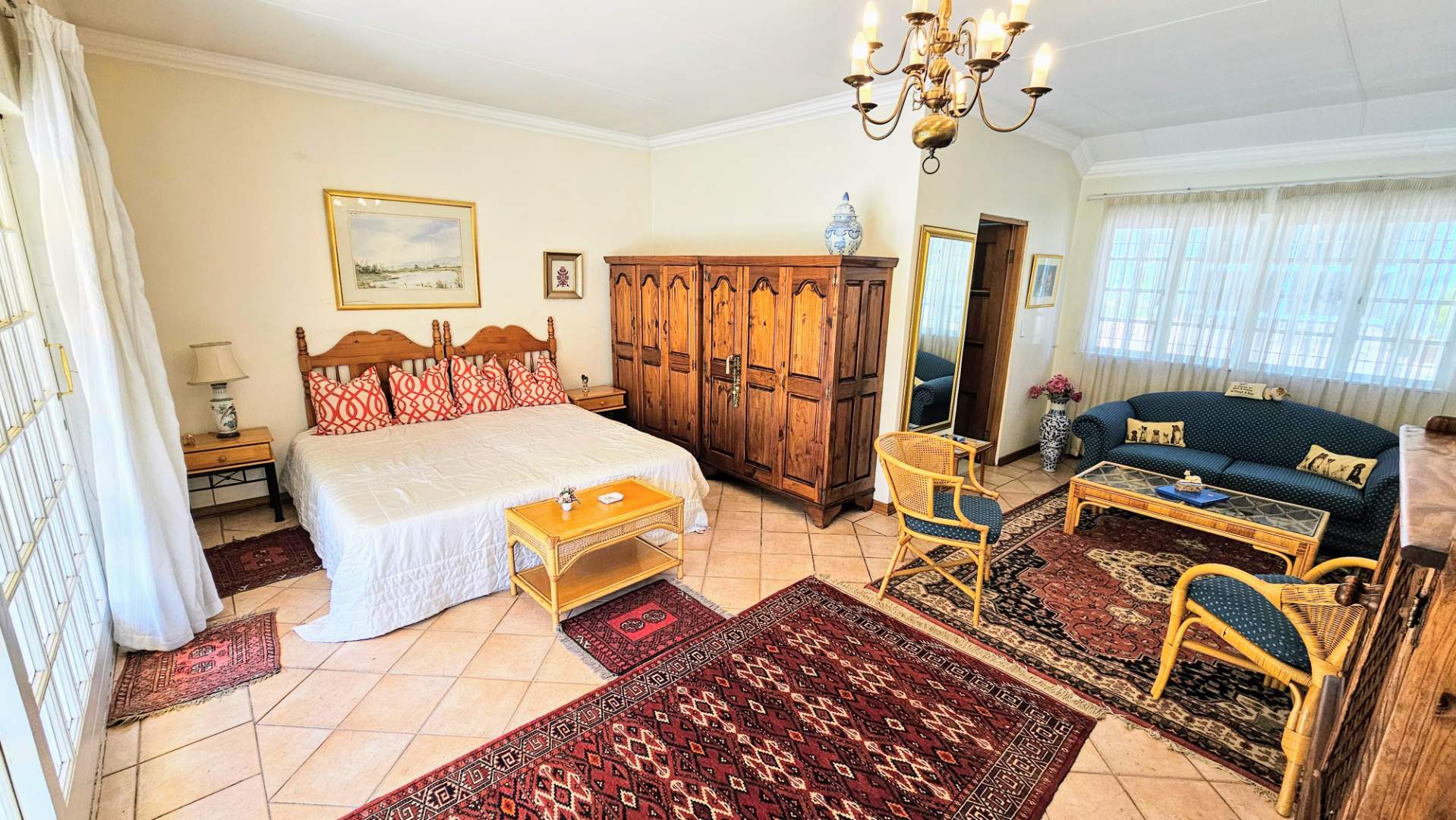 The bedroom wing includes three spacious bedrooms and three bathrooms (two en-suite), with the main suite offering a fabulously large walk-in dressing area. A separate guest suite with a lounge and en-suite bathroom creates a private retreat for visitors or extended family.