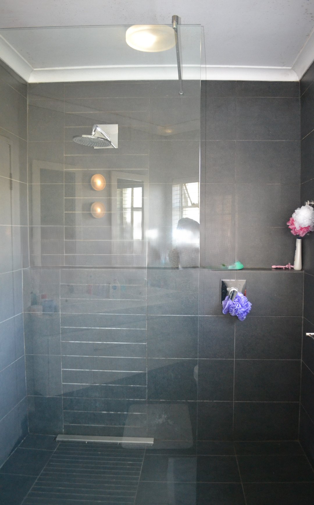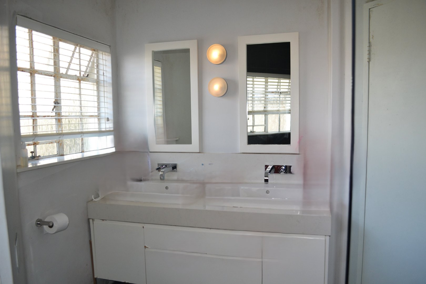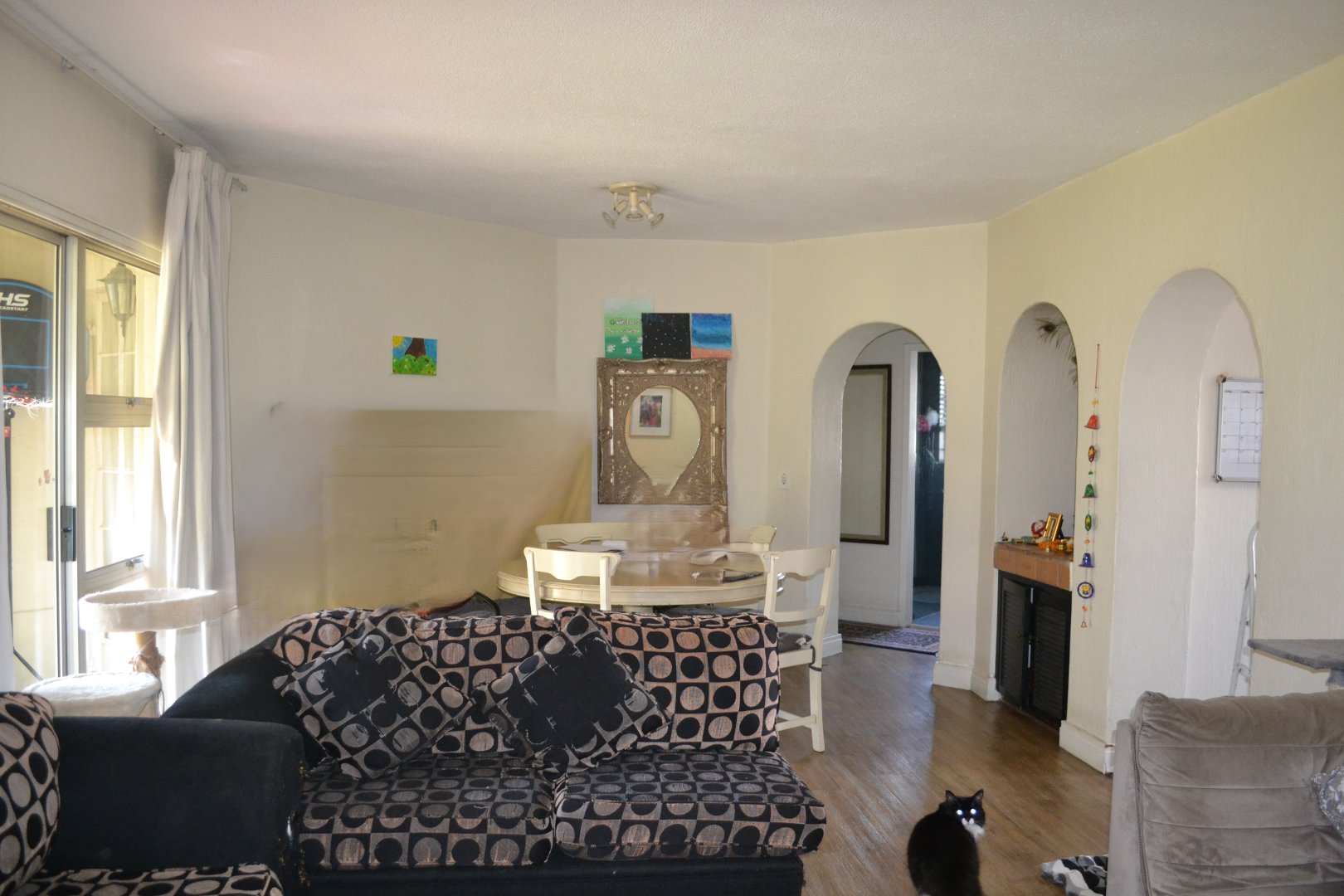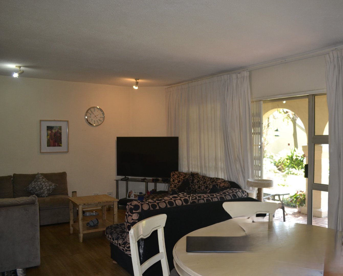 Open plan lounge / dining room leading out onto undercover patio with Trellis door
