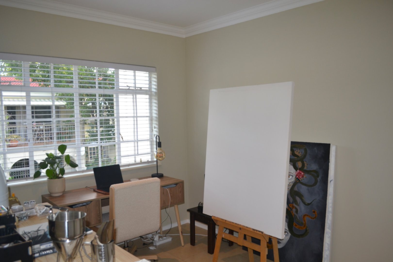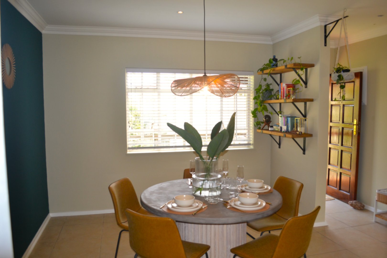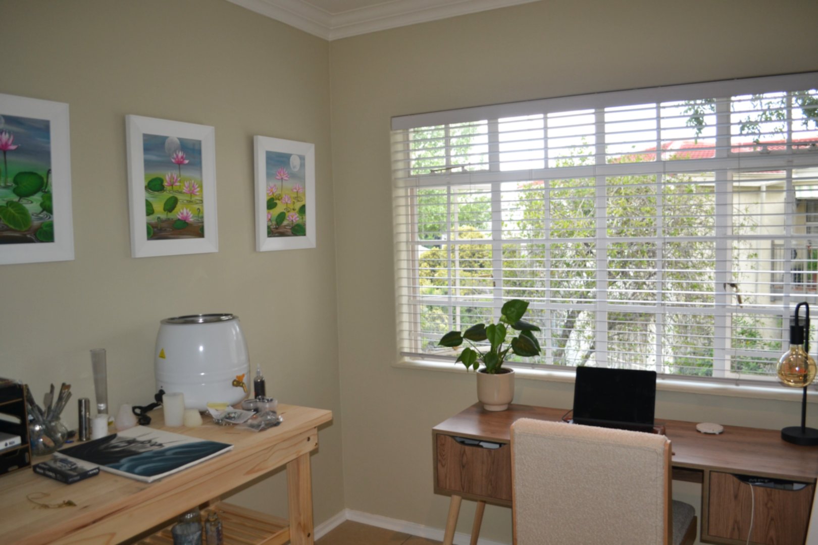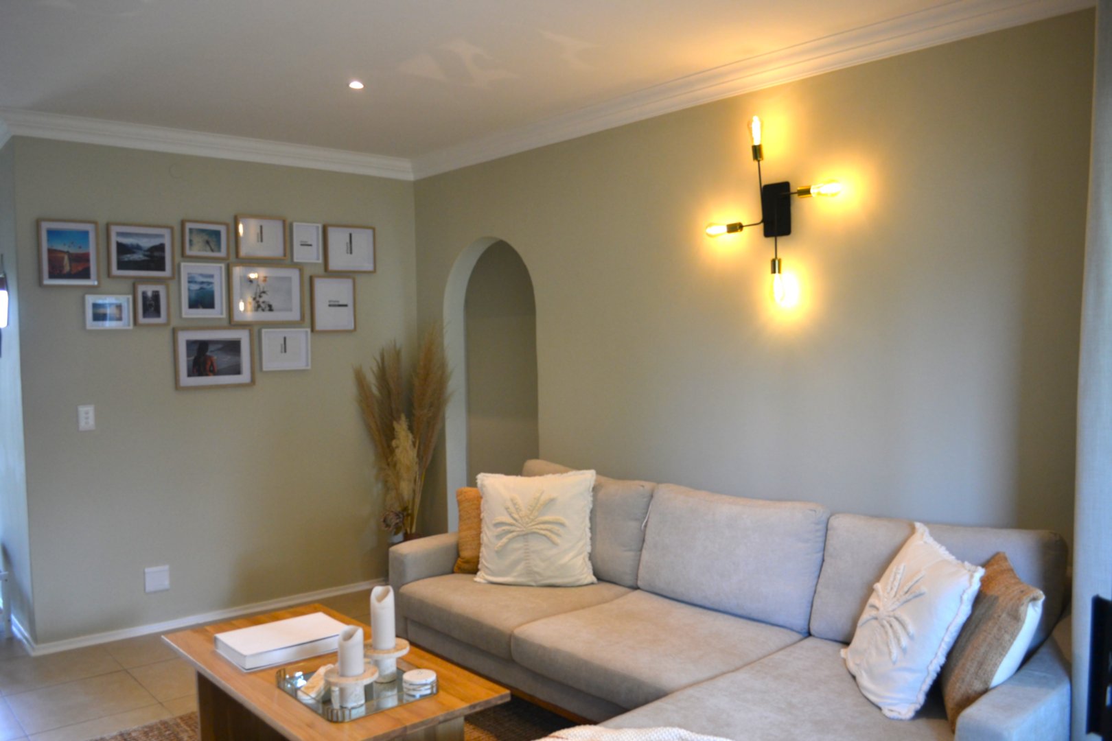 - Lovely wall tones and light fittings