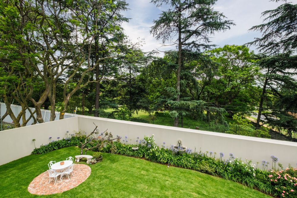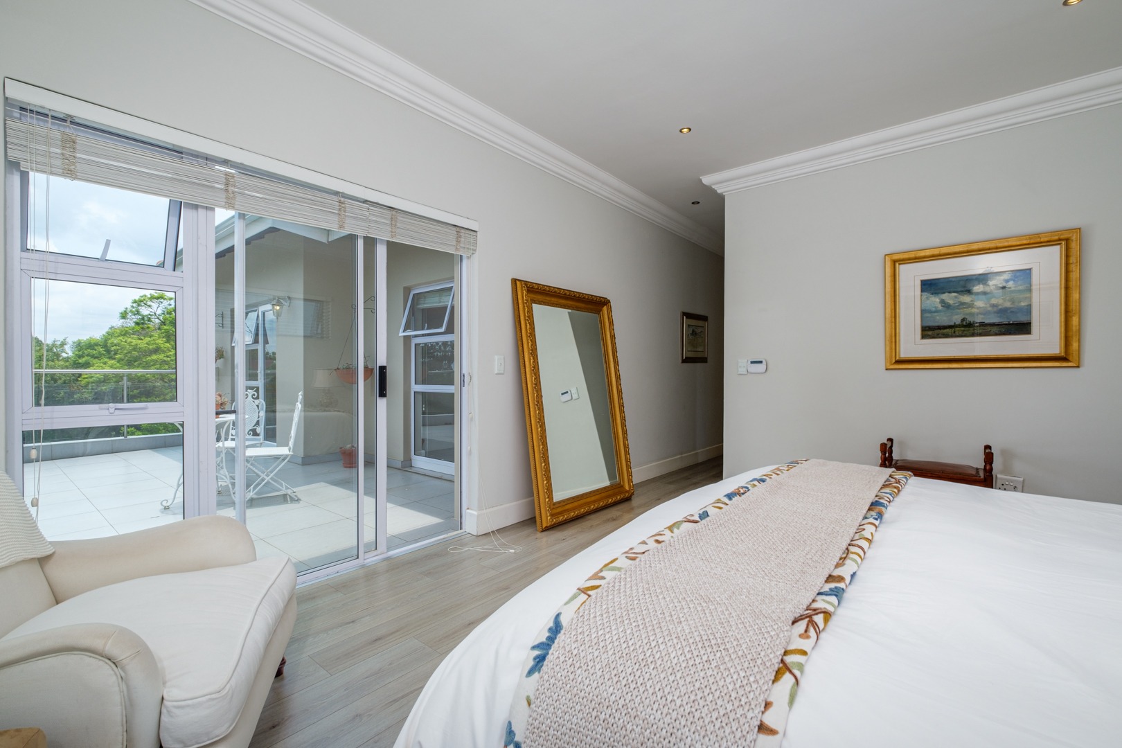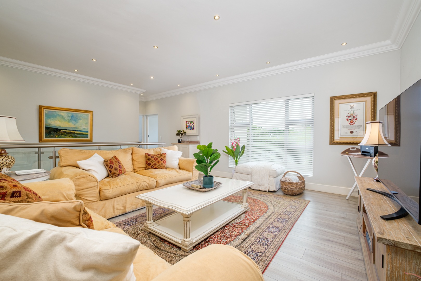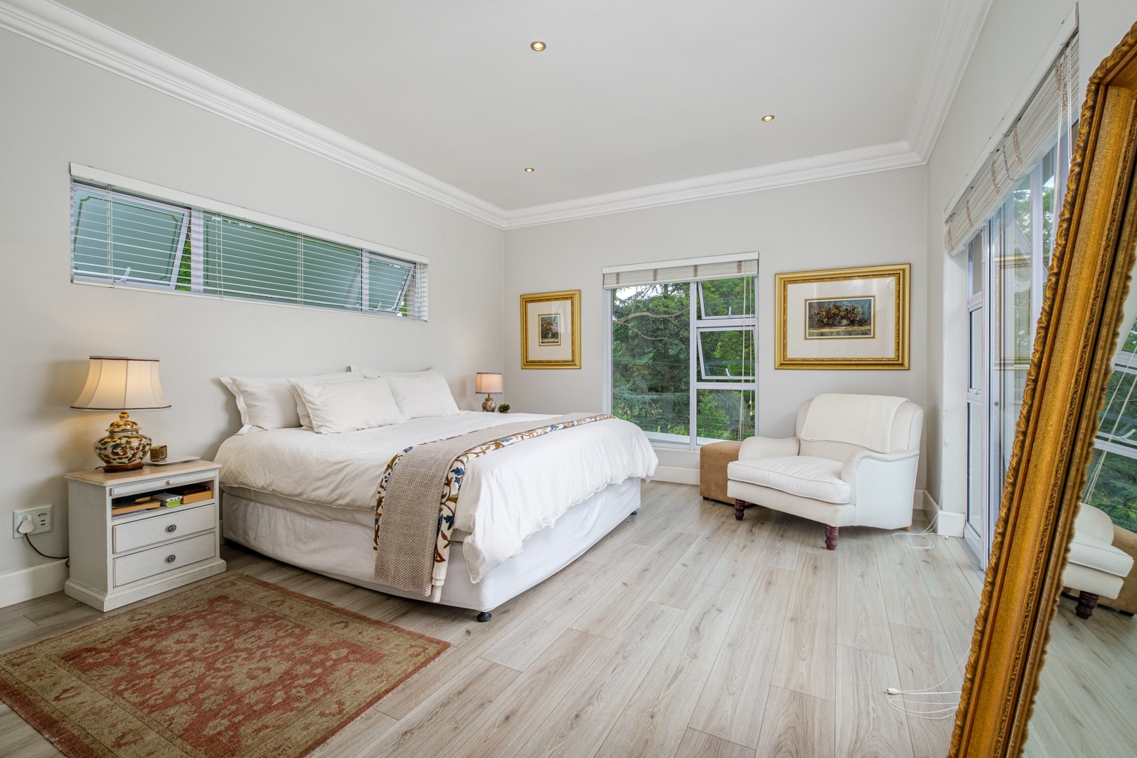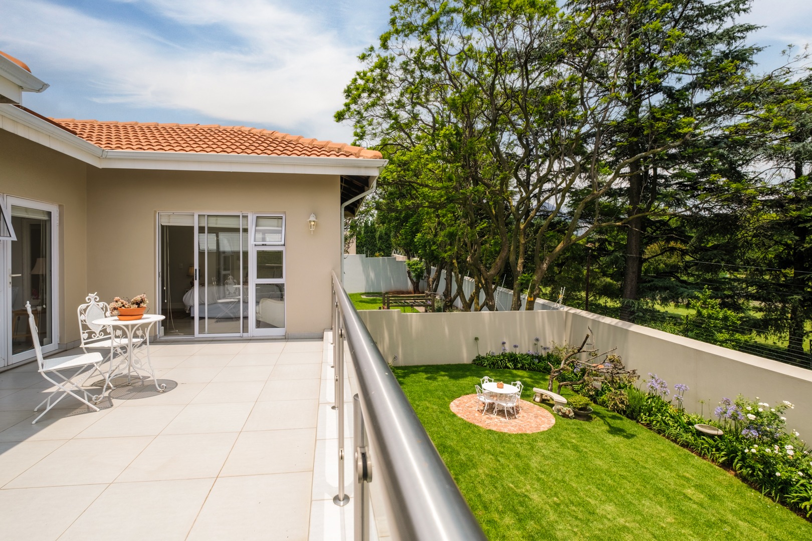 Each of the four bedrooms features a private, tiled spacious balcony, which optimizes the picturesque views while ensuring that you can wake up every day surrounded by natural beauty. All bedrooms come complete with spacious built-in cupboards, with one having the added bonus of a built-in study. The en-suite bathrooms all offer bath and shower facilities, ensuring optimum luxury living. The separate, chic cottage with its modern design and separate entrance is perfect for guests or as luxury domestic quarters.