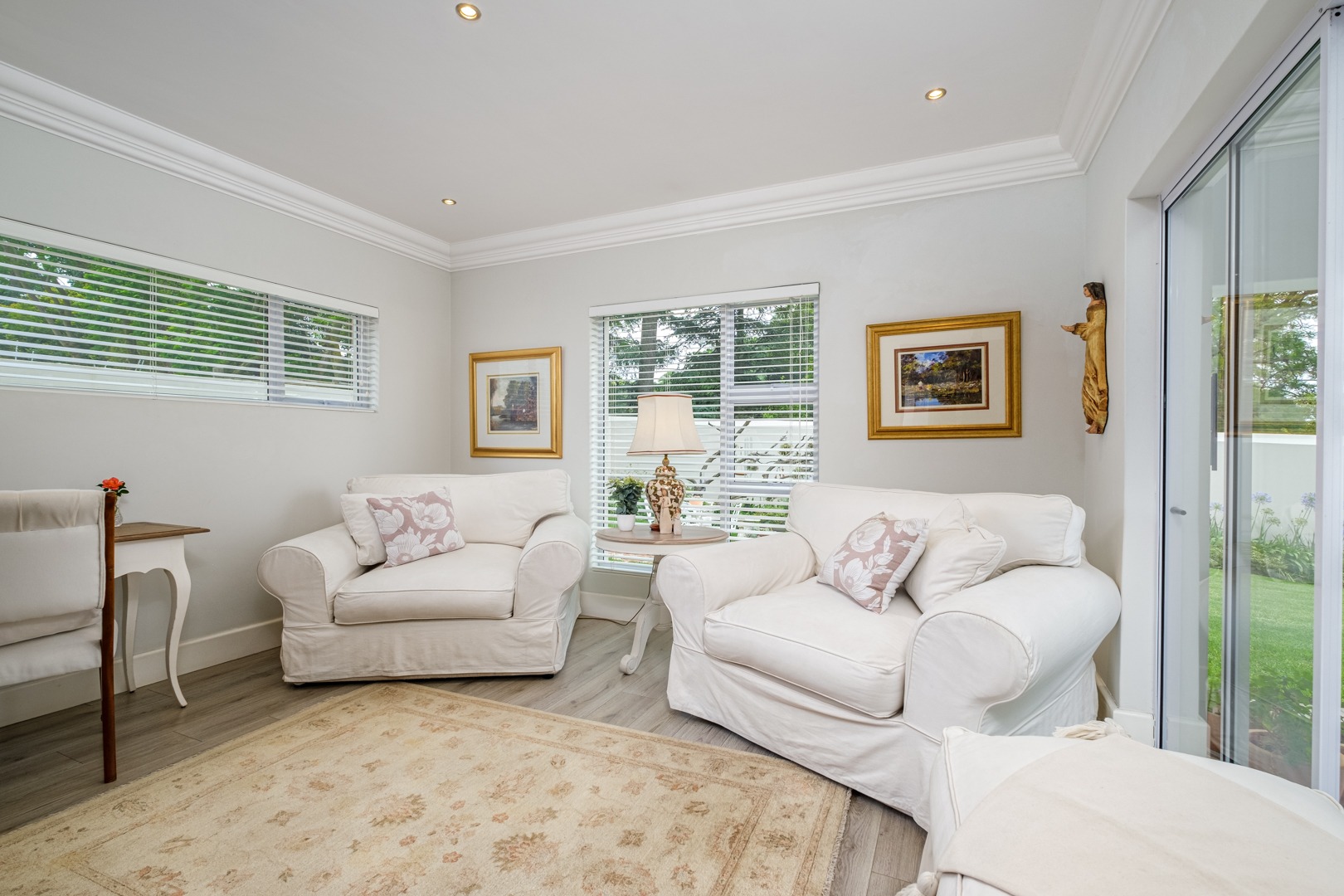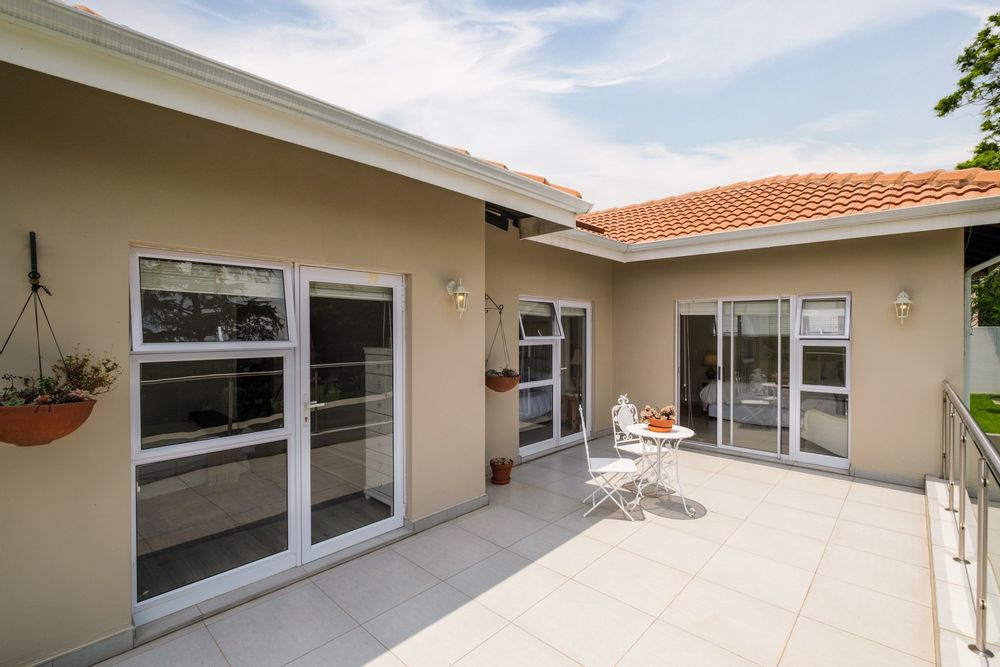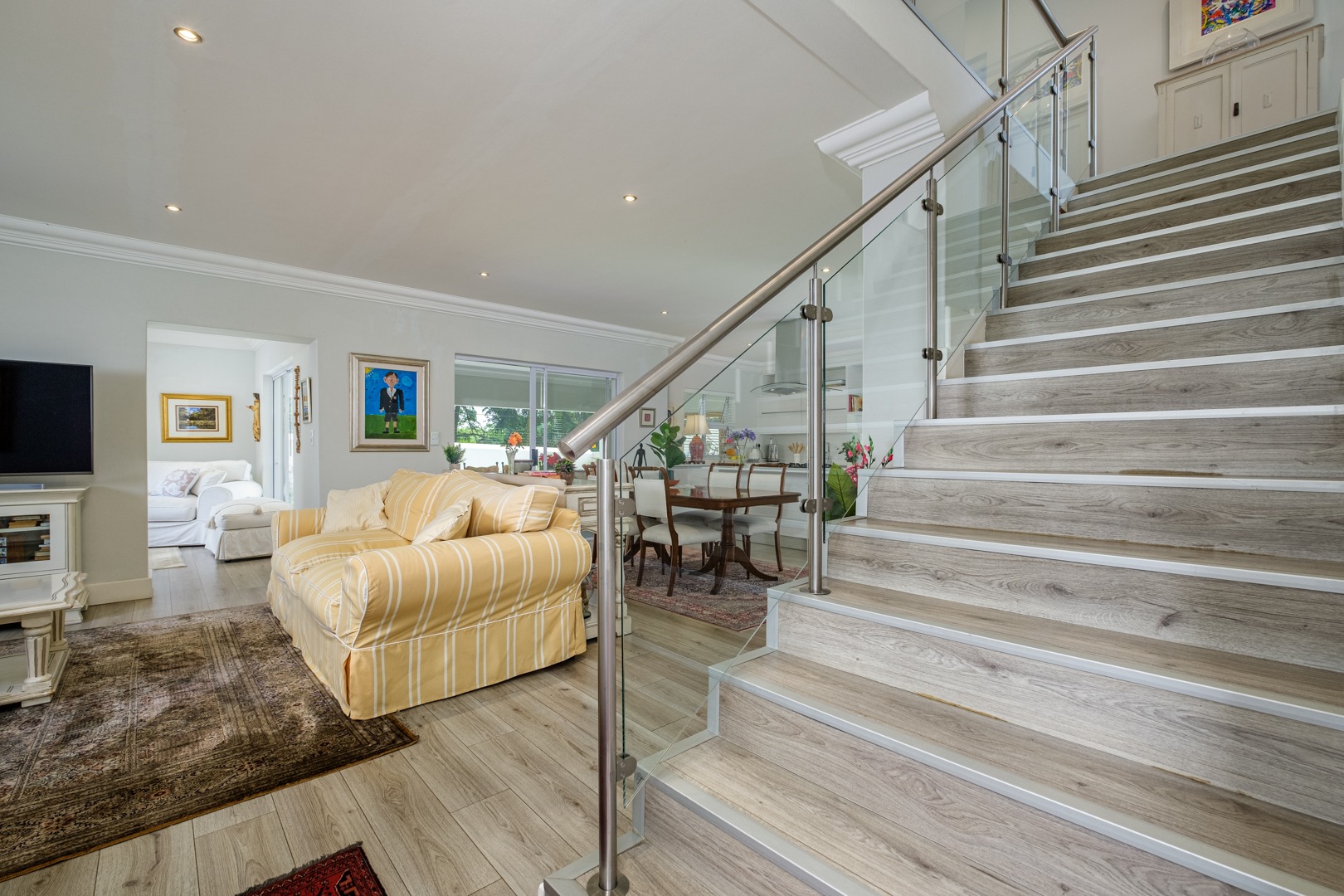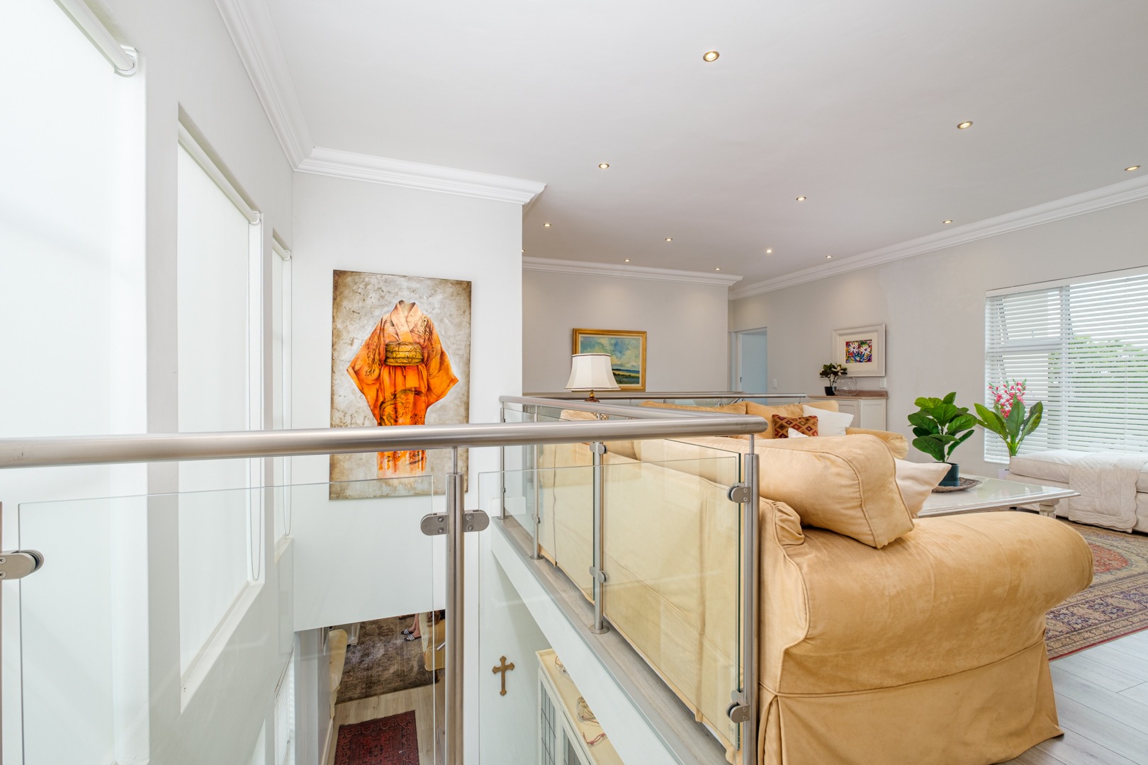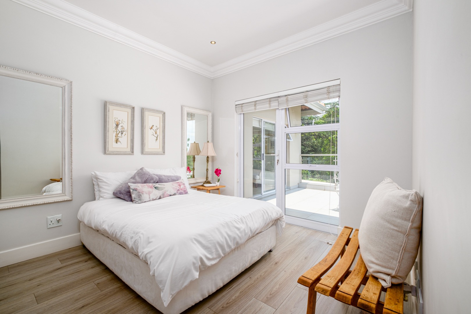 Each of the four bedrooms features a private, tiled spacious balcony, which optimizes the picturesque views while ensuring that you can wake up every day surrounded by natural beauty. All bedrooms come complete with spacious built-in cupboards, with one having the added bonus of a built-in study. The en-suite bathrooms all offer bath and shower facilities, ensuring optimum luxury living. The separate, chic cottage with its modern design and separate entrance is perfect for guests or as luxury domestic quarters.