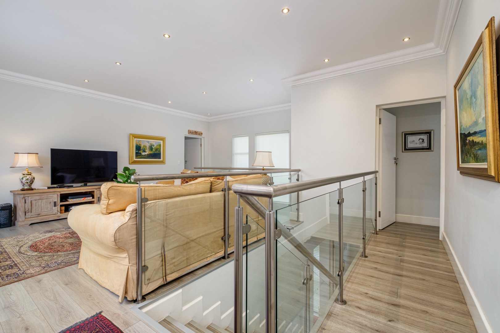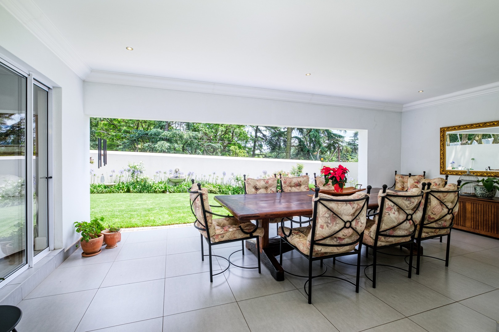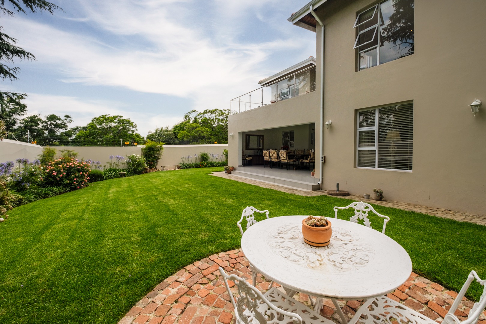 This home has been constructed with every detail in mind. With electric fence, beams, and a diesel backup generator, you can rest assured that you are both protected and fully equipped during load shedding. The small, quiet, and peaceful estate is the perfect location, offering easy access to amazing restaurants, shops and some of the best schools in the area.