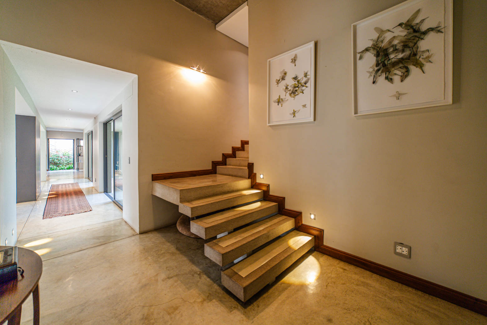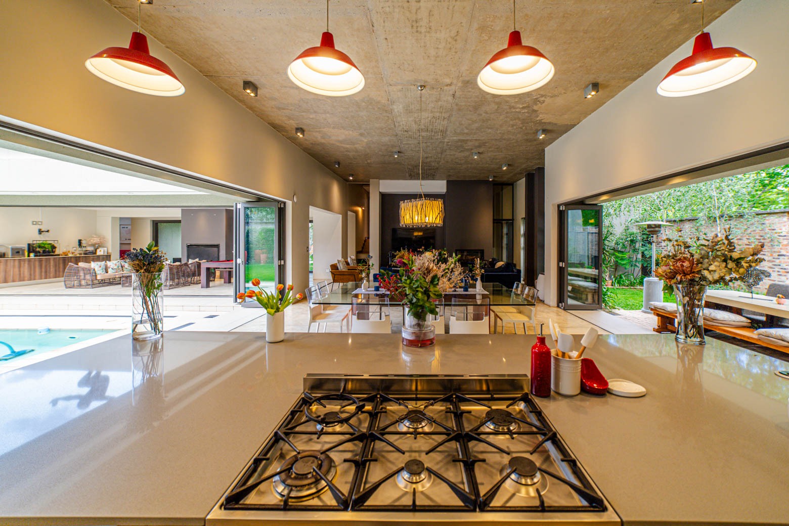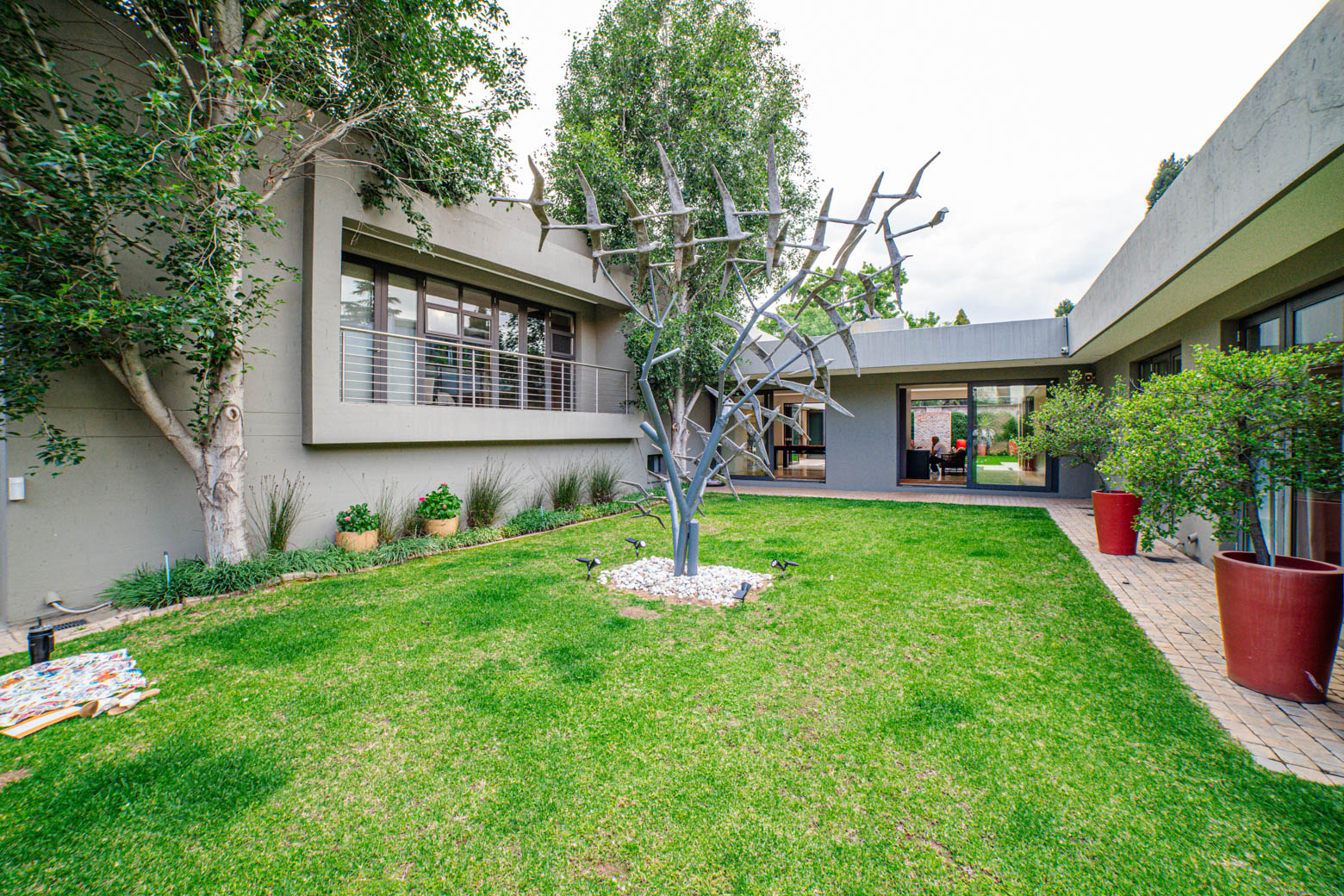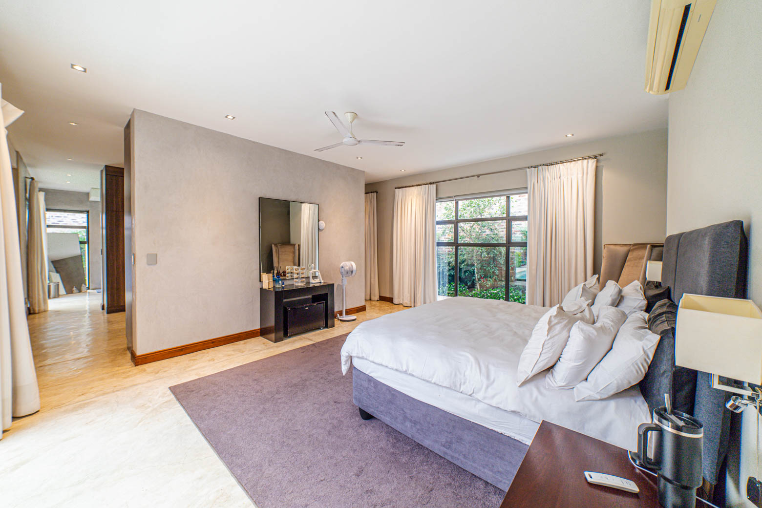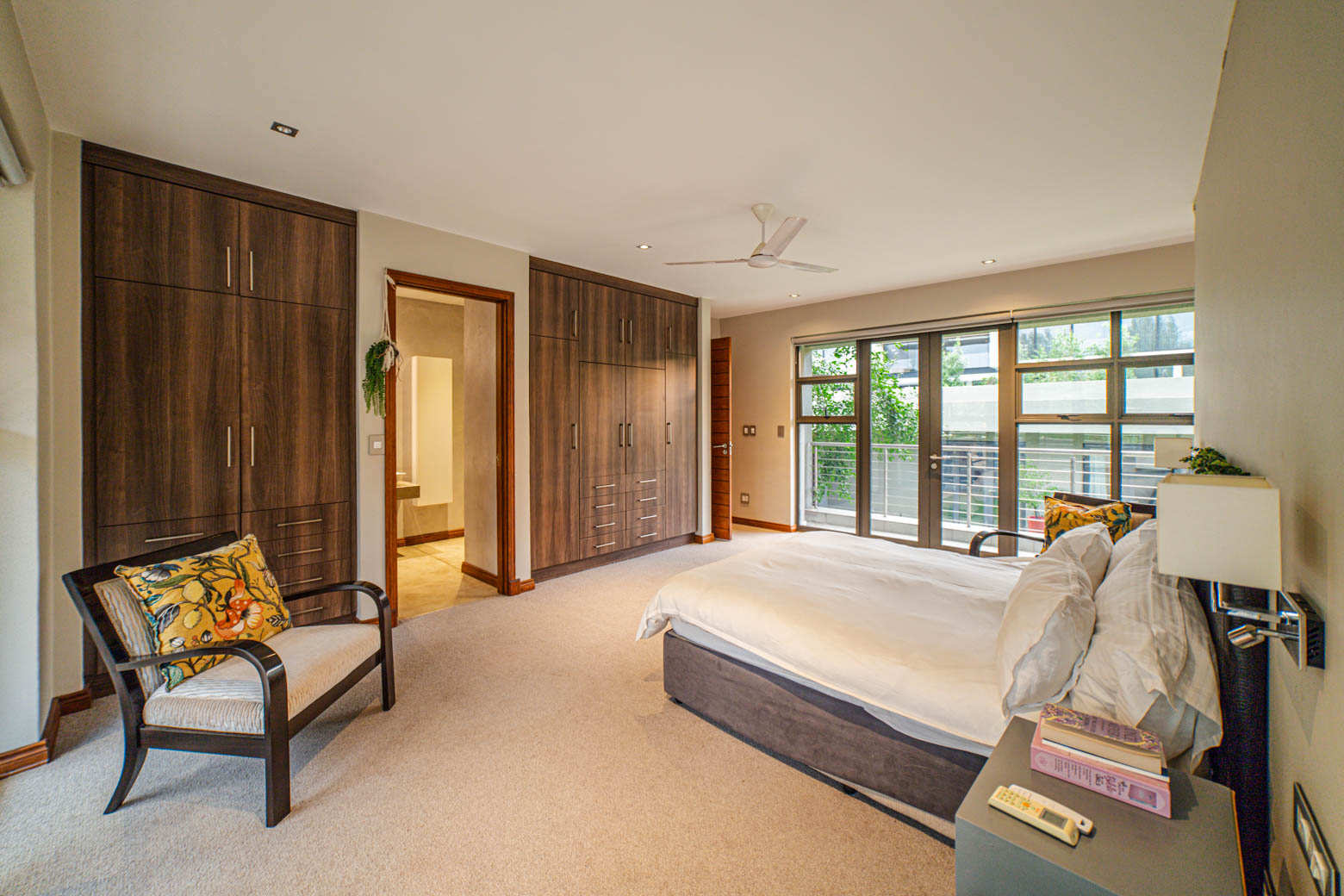 There are Bryanston addresses—and then there’s this one. Set on 1,500m2 in one of Bryanston’s most exclusive pockets, this home offers a rare blend of architectural excellence, luxury finishes, and effortless indoor-outdoor living. High-volume ceilings, sunlit spaces, seamless screeded floors, and full-height aluminium stack doors create a modern, gallery-like atmosphere that leaves a lasting impression. The layout includes a private guest suite with dual balconies, an expansive open-plan living and dining area with fireplace, and a designer kitchen with Caesarstone surfaces, integrated appliances, and a concealed scullery and pantry. The central pool forms the heart of the entertainment spaces, connecting the lounge, dining area, and a dedicated pool room complete with fitted bar and fireplace. The main suite features a generous dressing room, en-suite bathroom, and ample storage. Two additional bedrooms open to the garden and include built-in study spaces, sharing a bright, modern bathroom. Practical features include an 8KVA solar system (two batteries, UPS, 16 panels), whole-home water filtration, CCTV, beams, electric fencing, and triple automated garages. Perfectly located near Nicolway, Hobart Grove, top restaurants, the Bryanston Organic Market, Bryanston Country Club, and leading schools such as St Stithians, Brescia House, and BIC, this home delivers the lifestyle buyers most want in Bryanston. A property of this calibre is seldom available and quickly secured. Arrange your private viewing today.