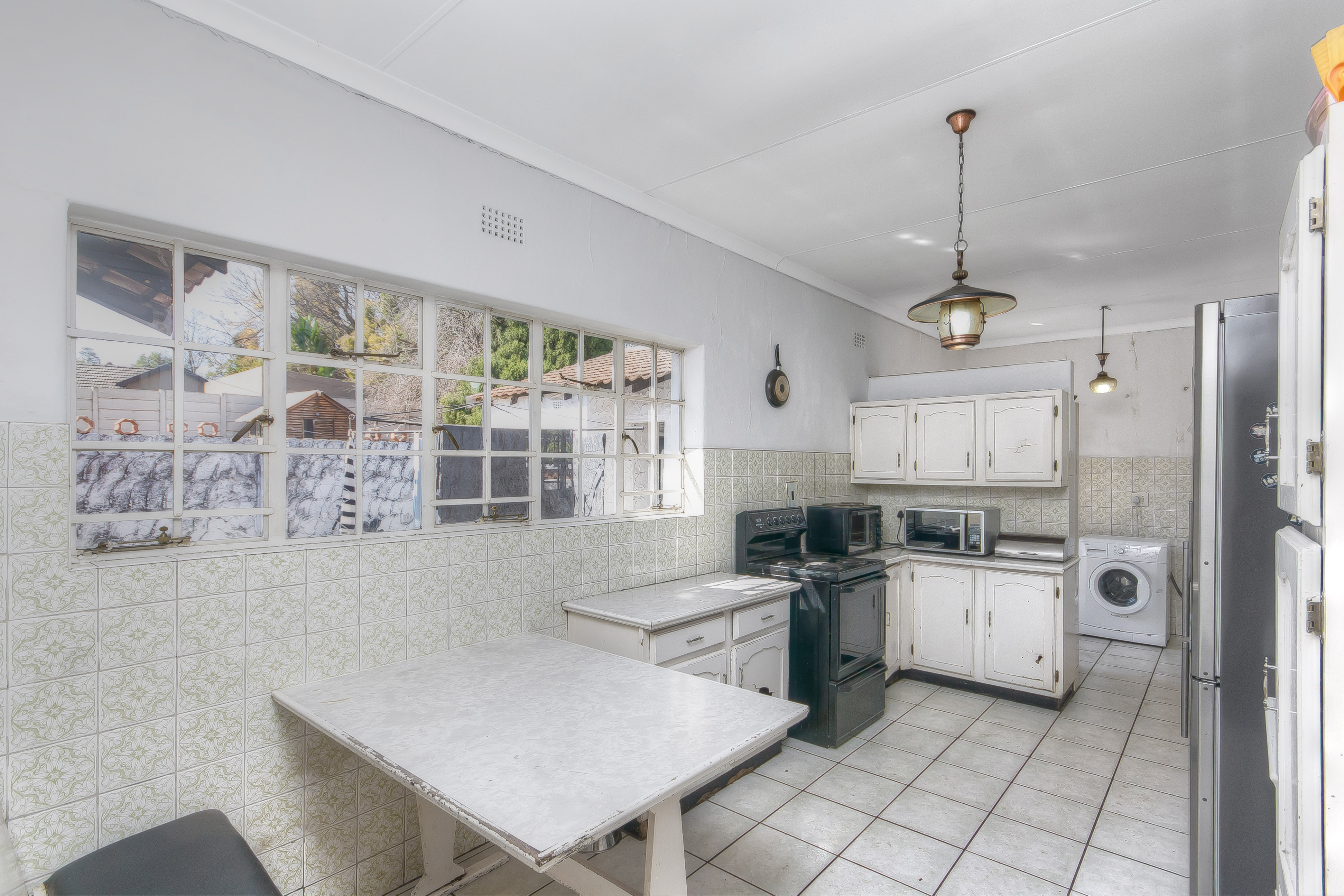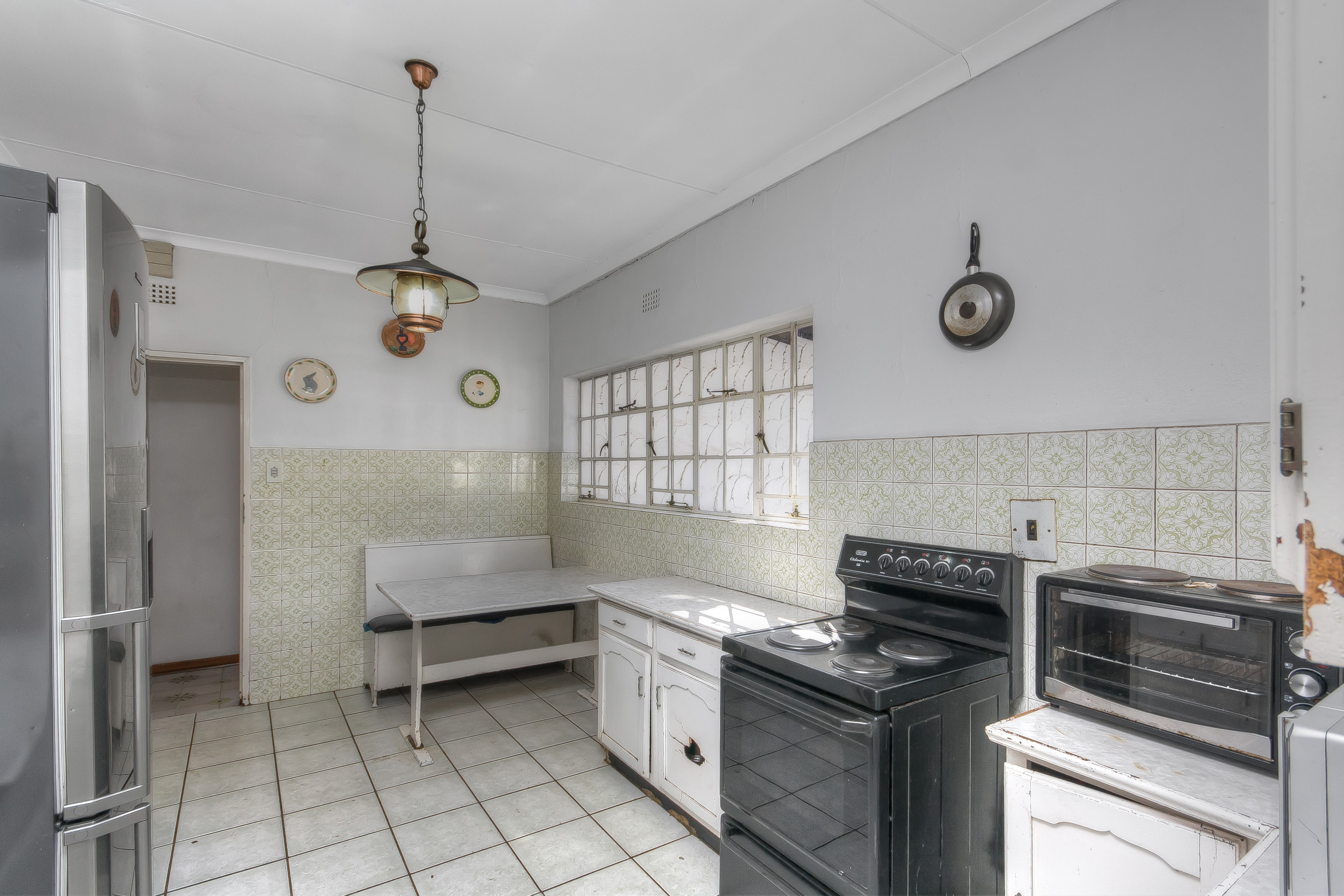 Spacious kitchen ready for a contemporary makeover, with a separate scullery leading to the back courtyard.