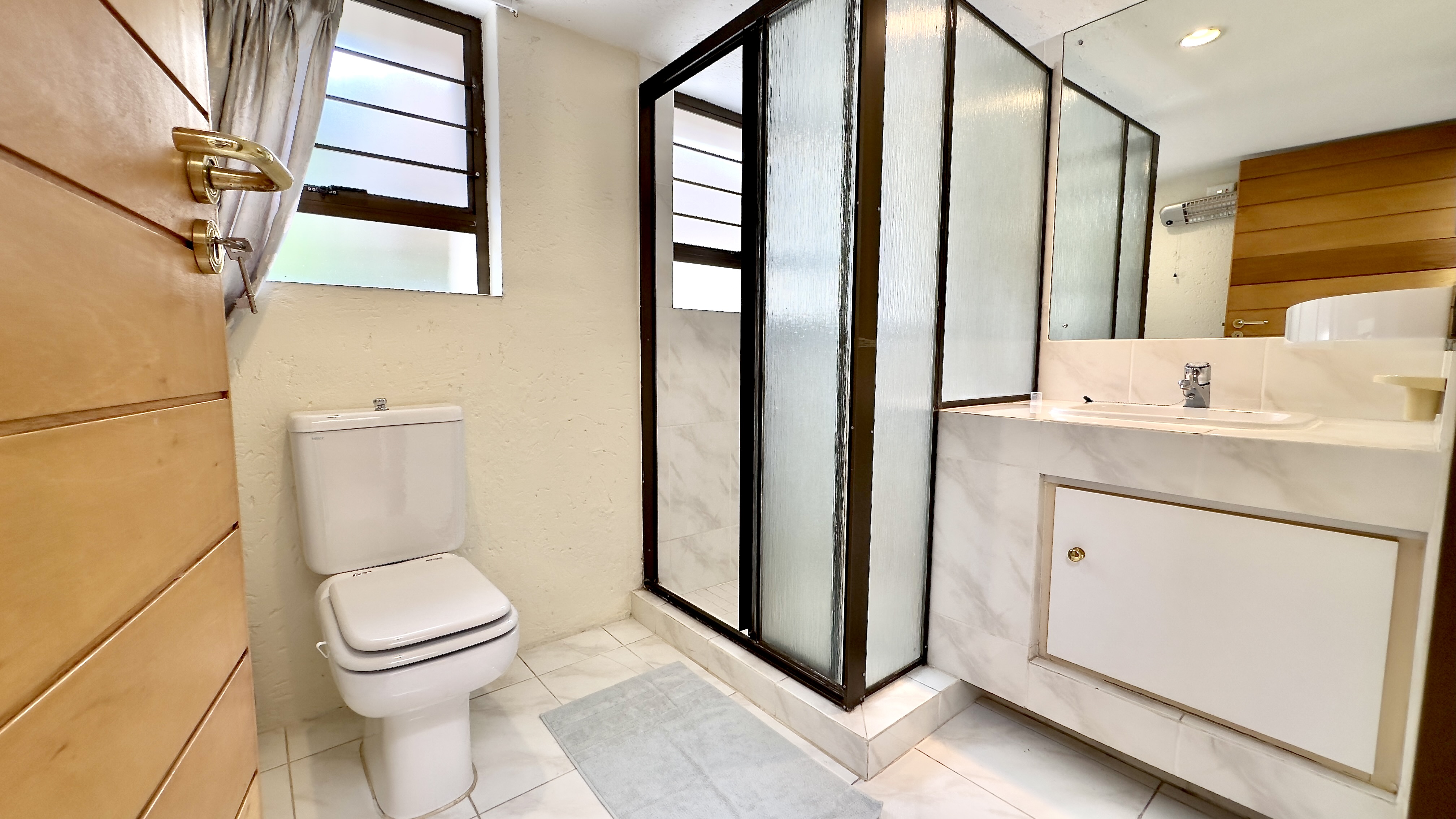 Three spacious bedrooms located in the opposite wing — two with ensuite bathrooms