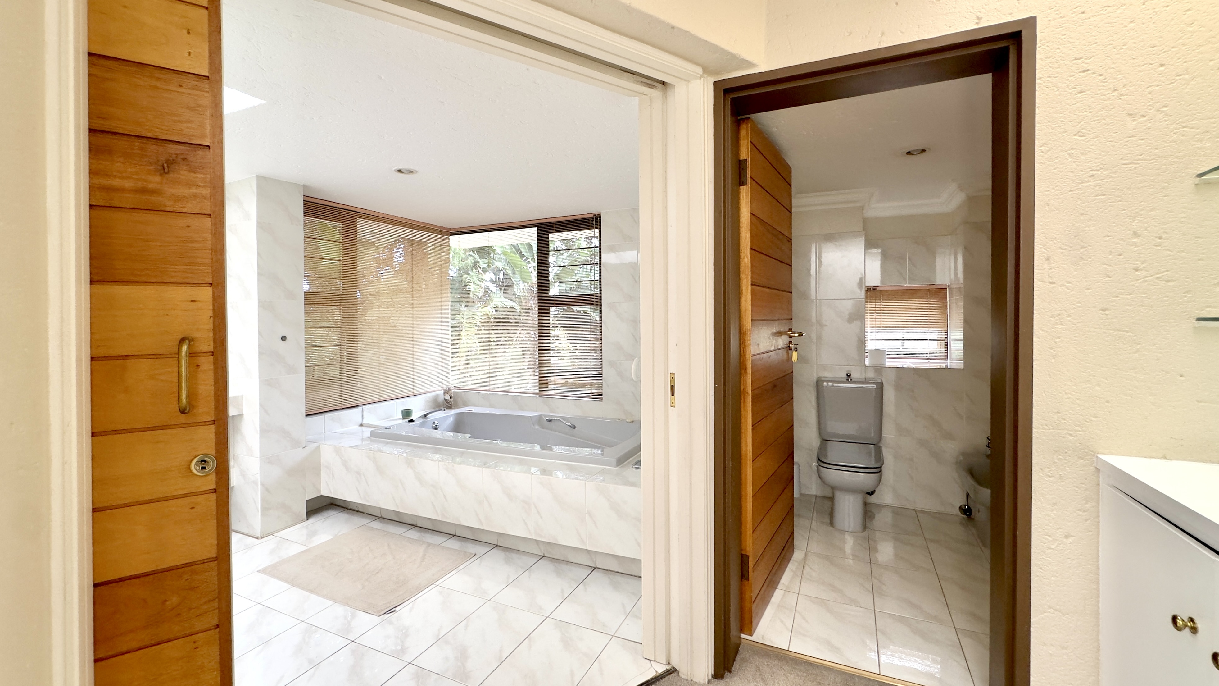 Walk-in Closet and luxurious Ensuite Bathroom with serene garden views from the bath