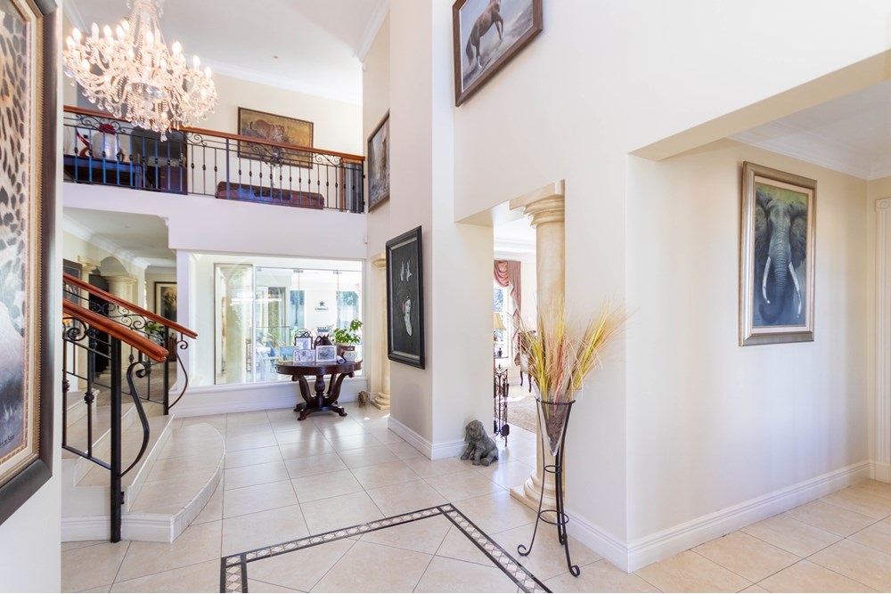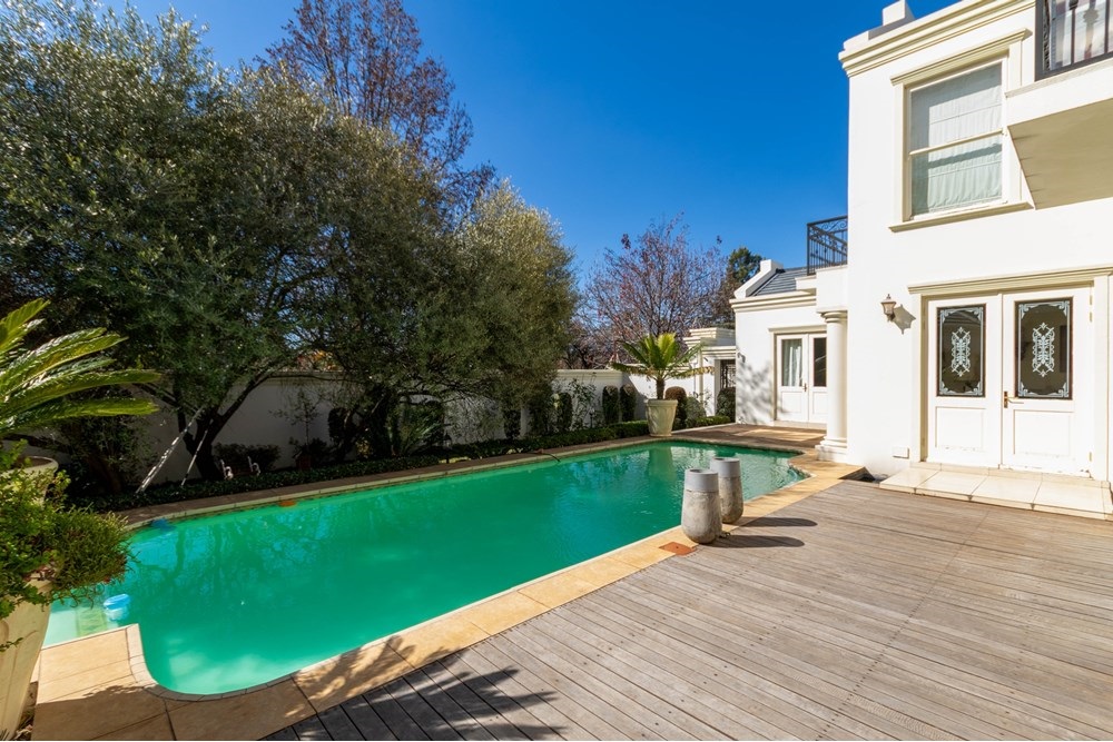 A Home with Endless Possibilities in BryanstonYearning for a home that offers generous space and limitless potential? This architect-designed, 5-bedroom masterpiece is the answer. Set in a prestigious street in Bryanston, this expansive residence blends modern living with light, space, and functionality across a 1500m2 erf. Whether you`re looking for privacy, tranquility, or room to grow — this home has it all.Key Features Include:Grand Entrance:A double entryway with a custom-made front door sets the tone, leading into the heart of the home — a seamless flow of open-plan living spaces, including a stylish dining area, lounge, and enclosed patio perfect for year-round entertaining.Gourmet Kitchen:Designed for the modern chef — enjoy a gas hob, ample workspace, a separate scullery, and a full laundry room. Culinary creativity meets practical design.Spacious Bedrooms:Downstairs: One generously sized en-suite bedroom with built-in cupboards, ideal for guests or extended family.Upstairs: A pyjama lounge and four luxurious en-suite bedrooms, including a private office — perfect for remote working.Staff Quarters:A well-appointed maid’s room with bedroom and bathroom, conveniently located near the laundry area.Garaging Parking:Three automated garages plus ample additional parking space for guests or extra vehicles.Outdoor Oasis:A beautifully landscaped and manicured garden creates a serene retreat, complete with a sparkling swimming pool and a covered entertainment lapa — ideal for relaxing or hosting unforgettable gatherings.