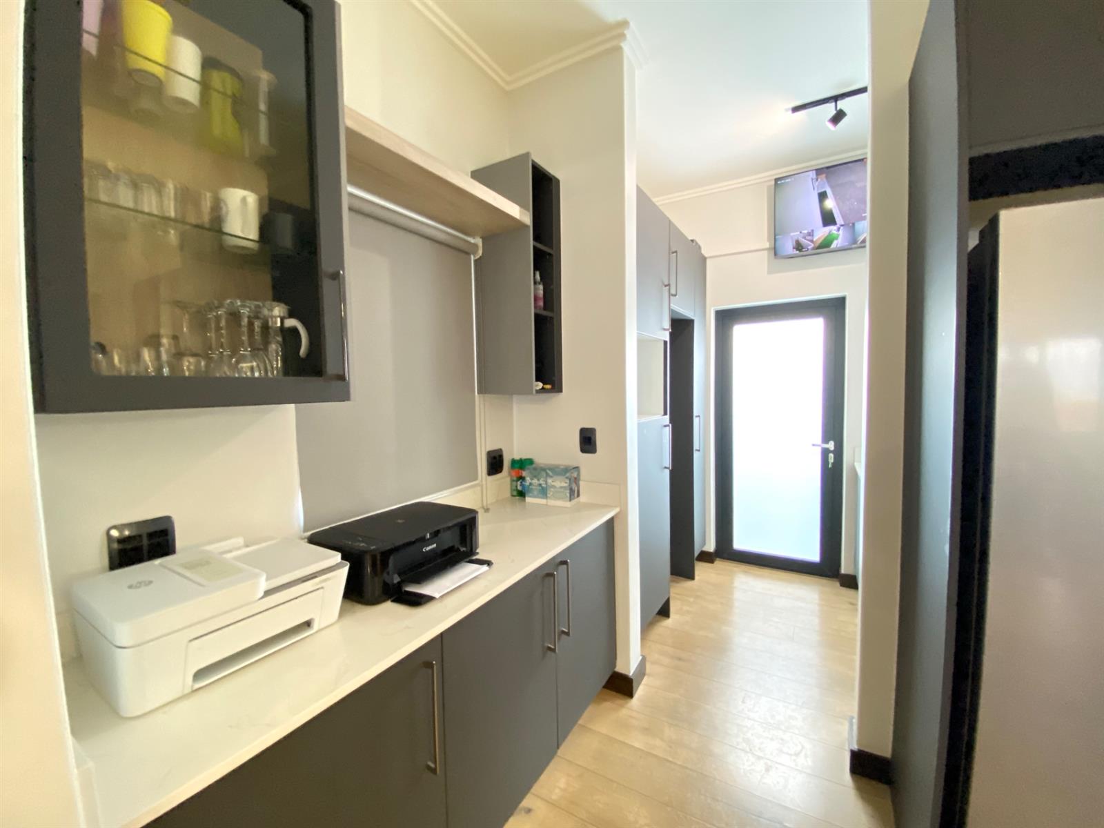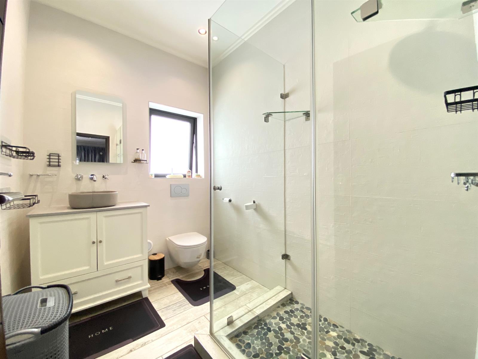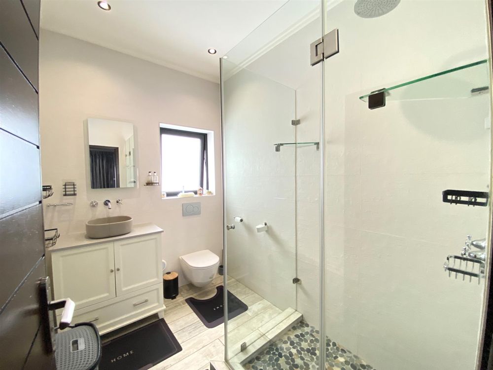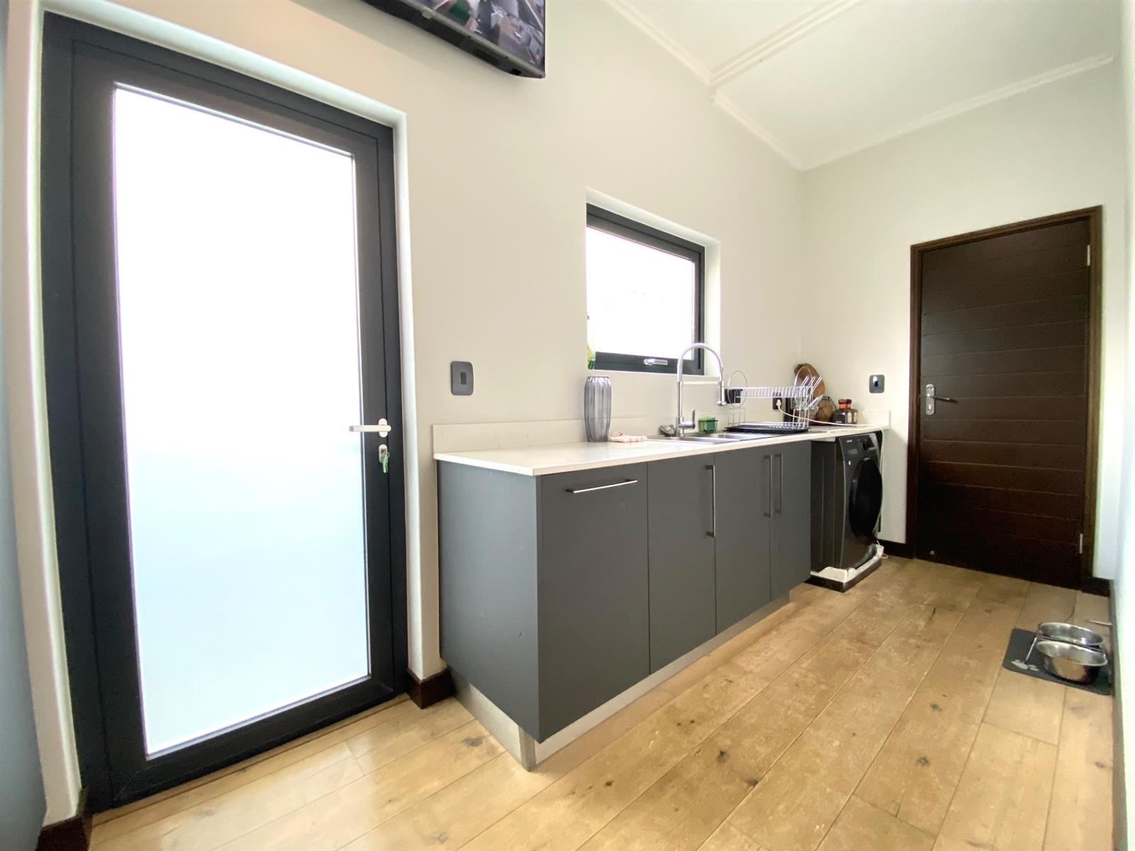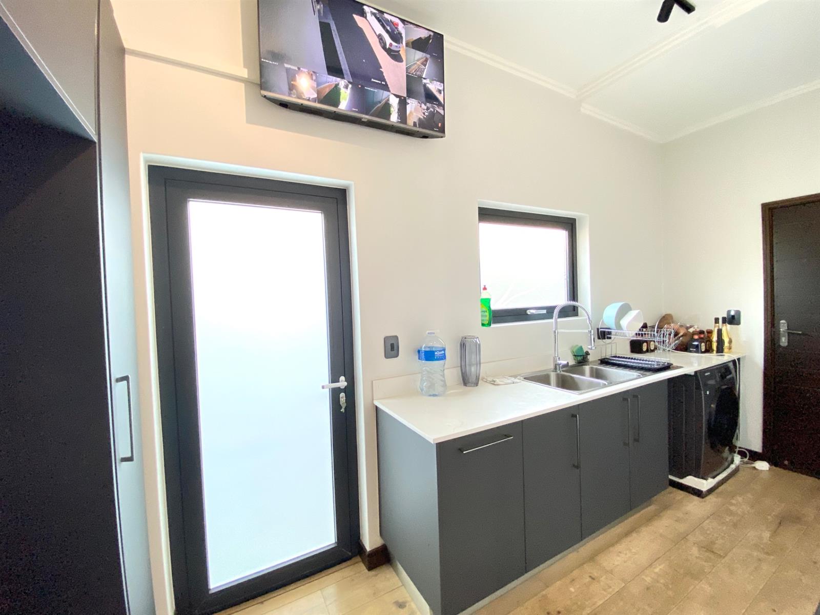 Downstairs : double garaged inter-leading to the kitchen , separated Scullery, 2 bedrooms and 2 bathrooms( Main bedroom with En-suite bathroom), guest toilet , Outside domestic Room with its own bathroom and a nice size storage